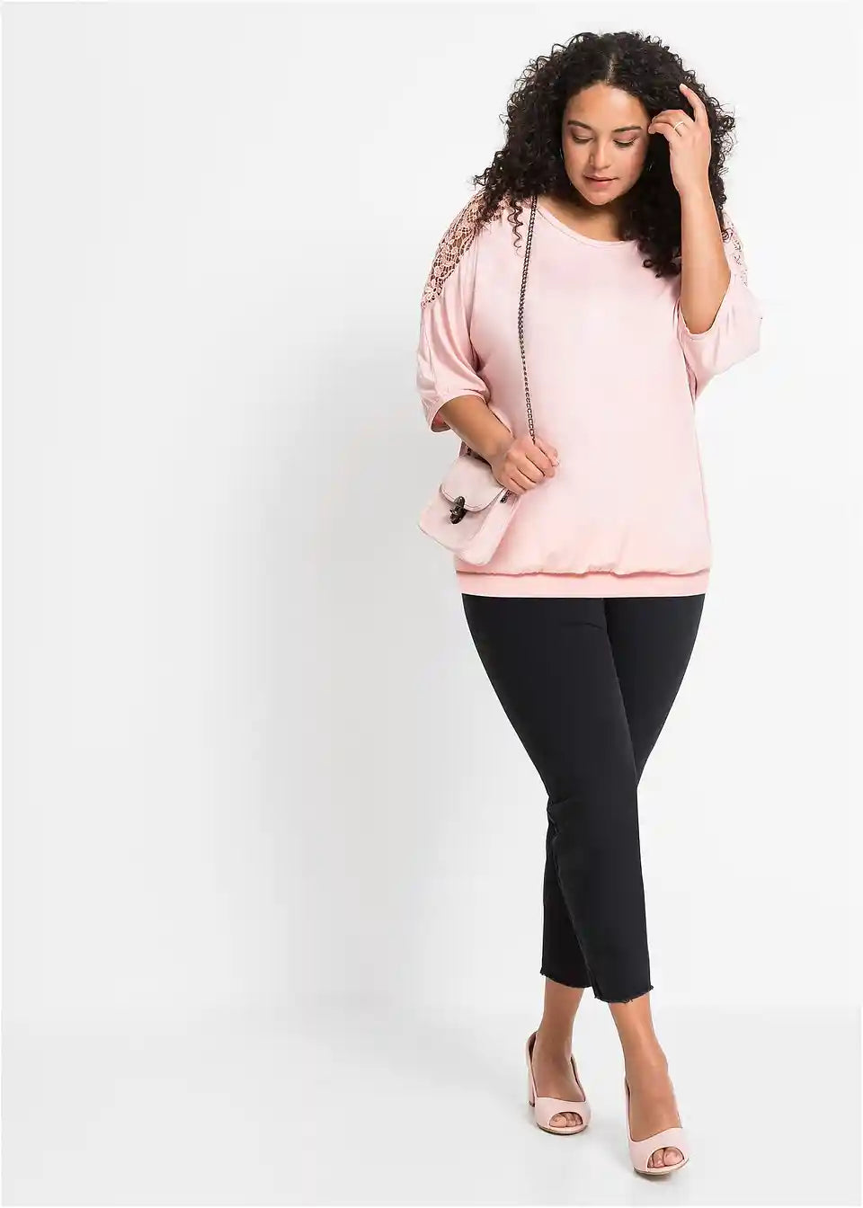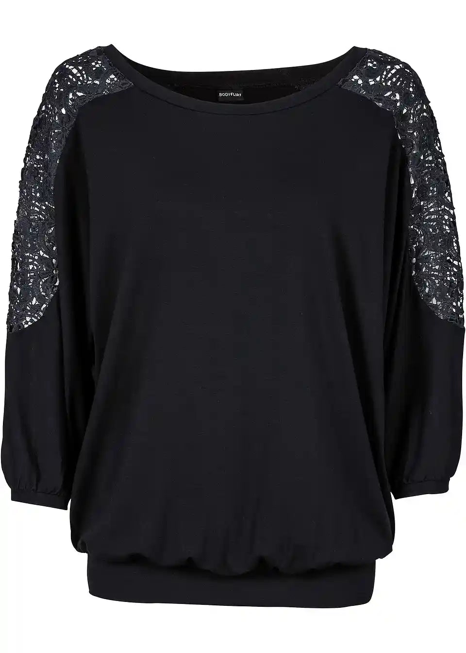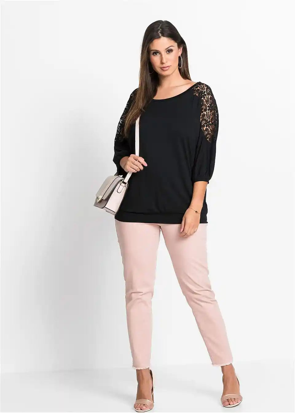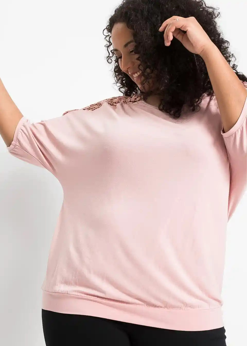 Privlačna majica Oversize z dekorativno čipko na rokavih.