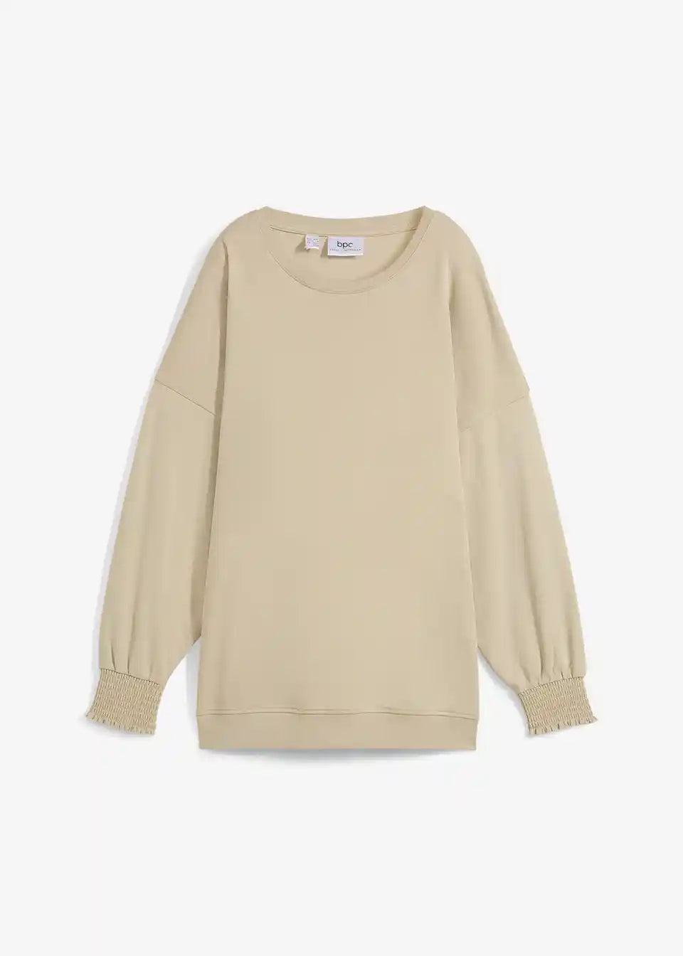 Majica z dolgimi rokavi in balonarastimi rokavi poudari dekolte z okroglim izrezom