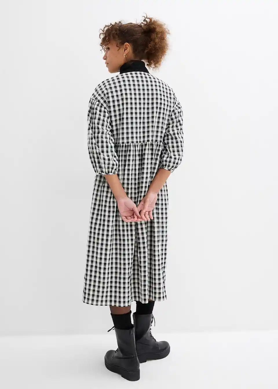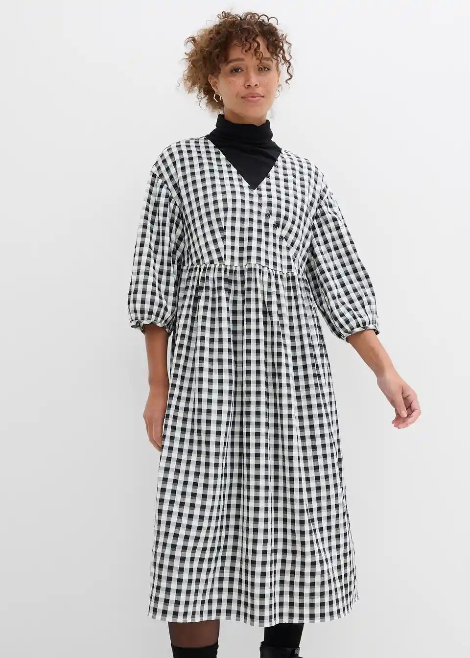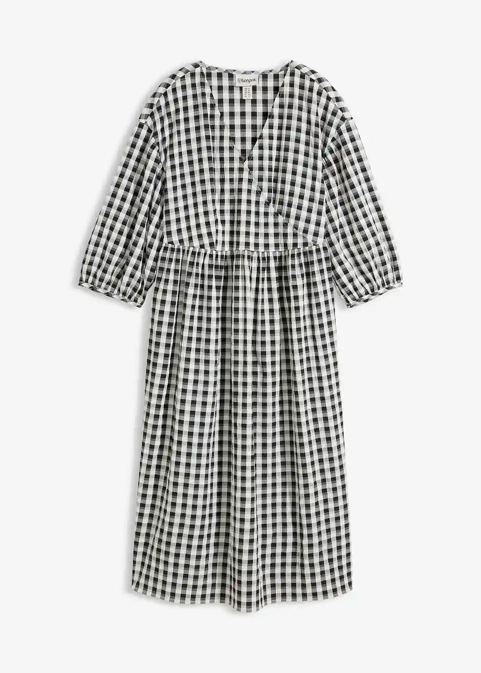 Moderna ohlapna midi obleka s karirastim vzorcem