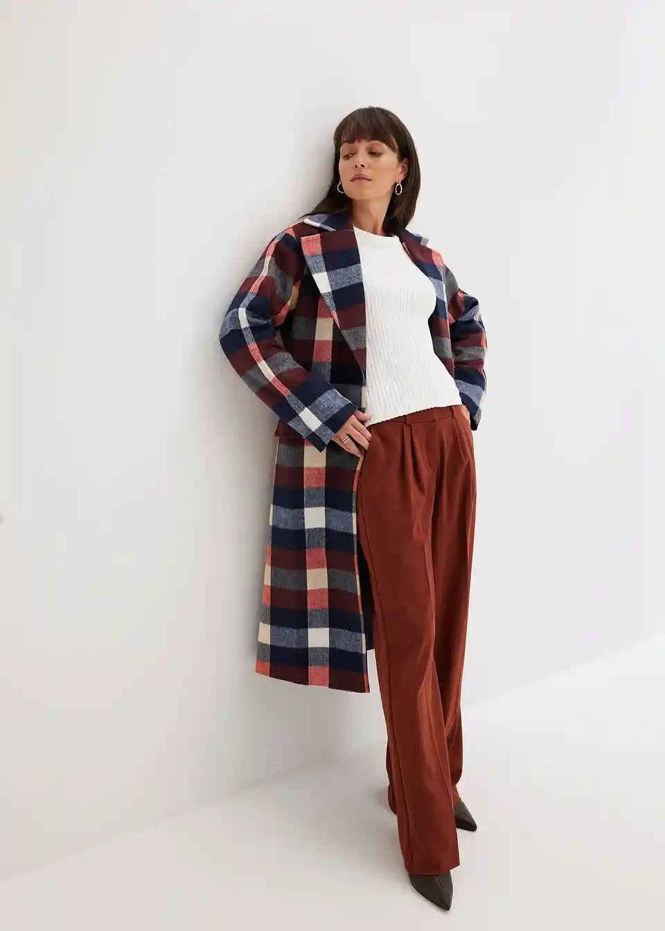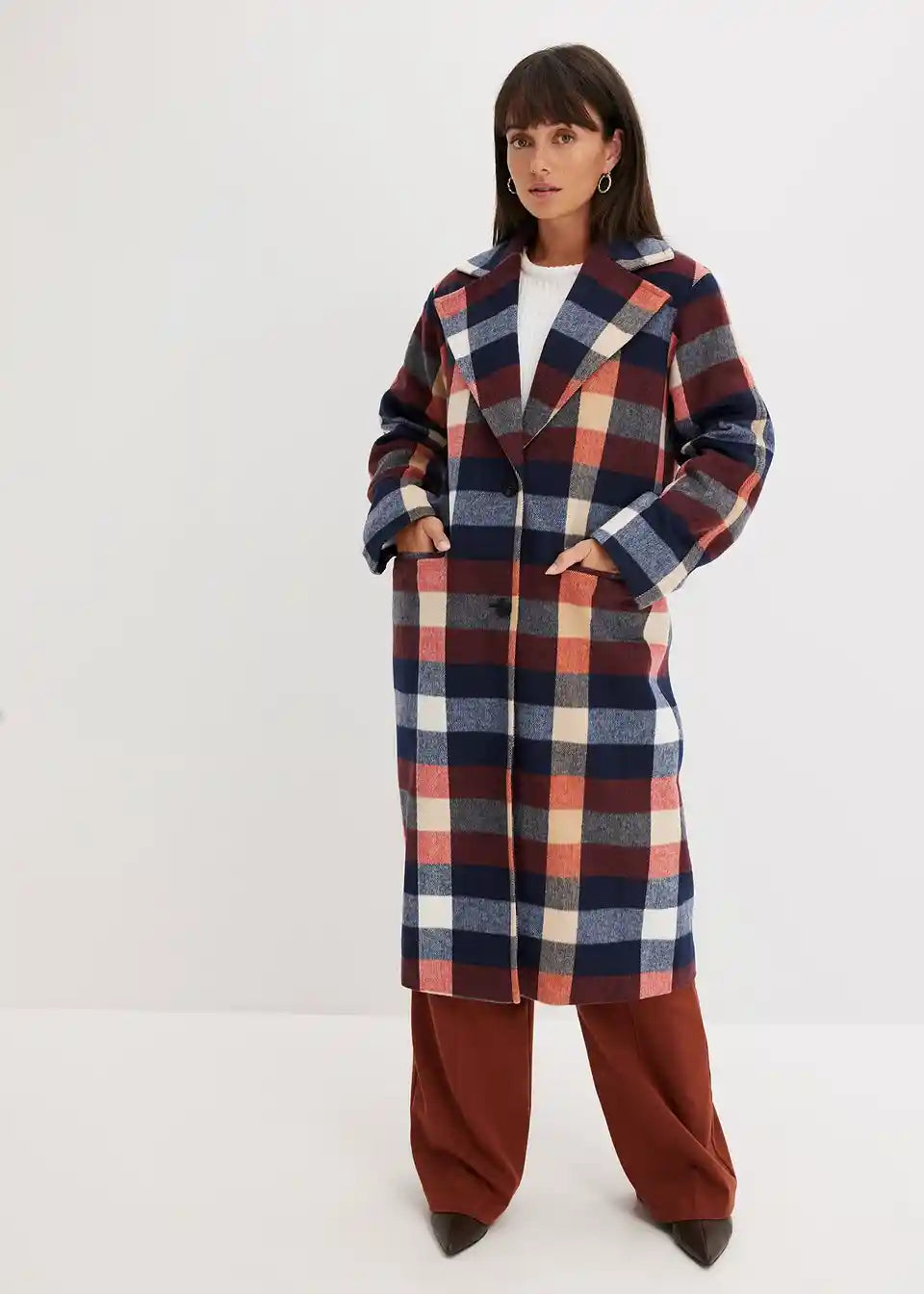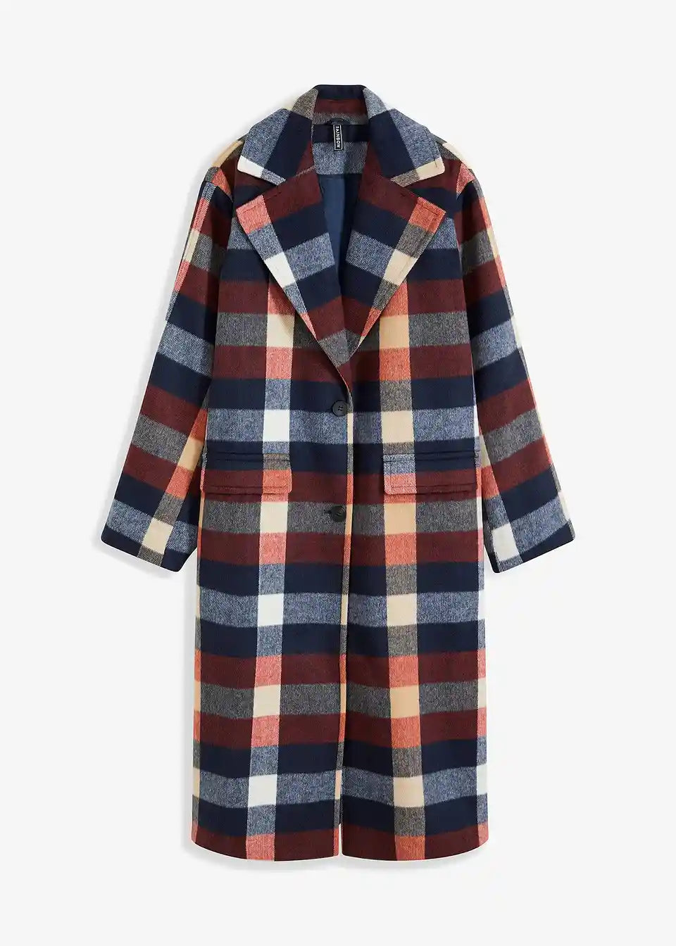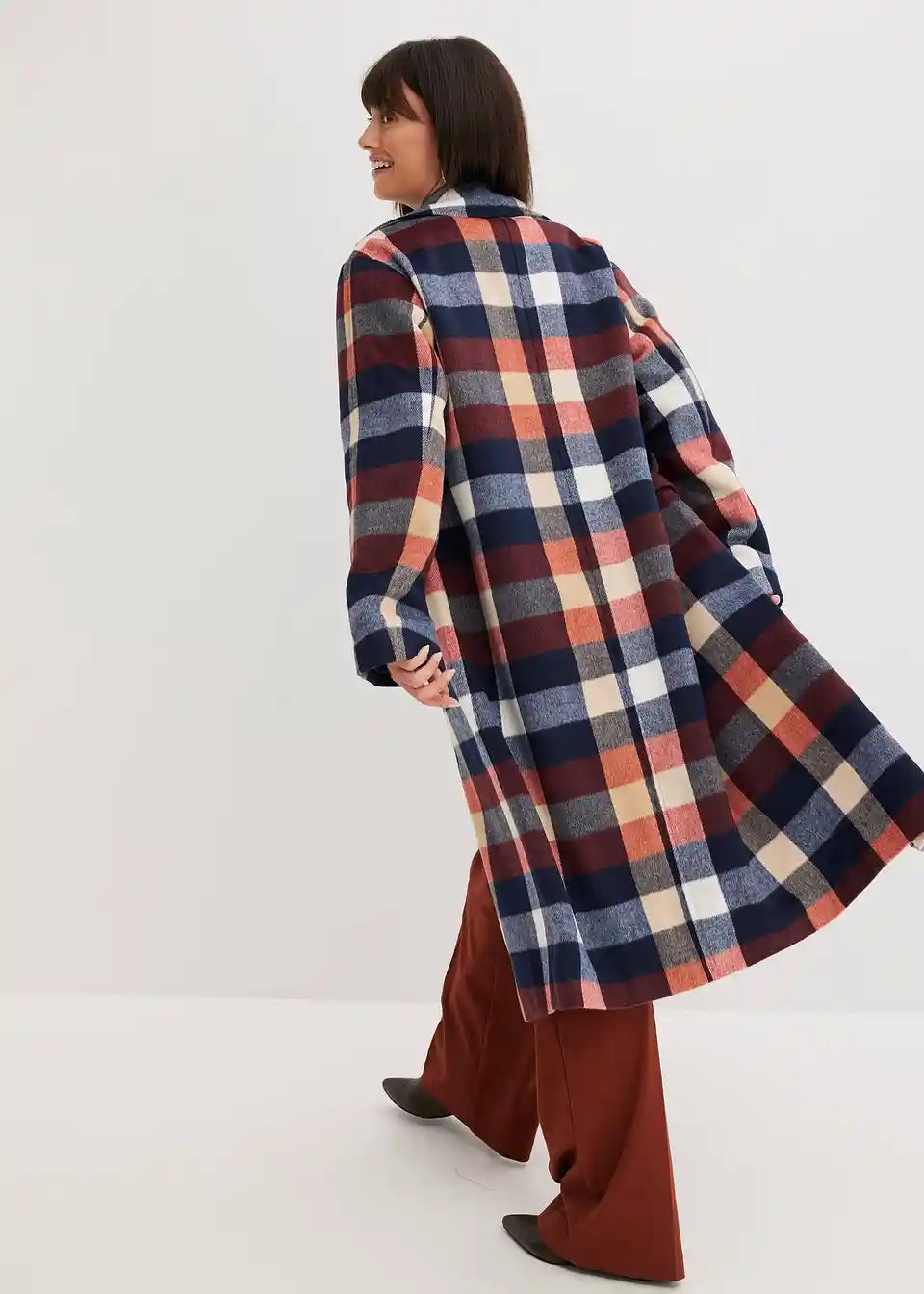 Oversize plašč iz volnenega videza z rever ovratnikom