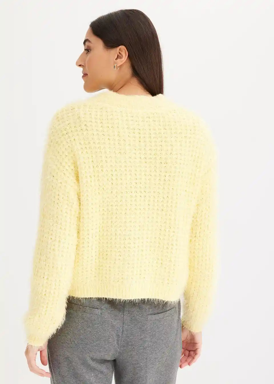 Ohlapna pletena jopa iz trakastih vlaken