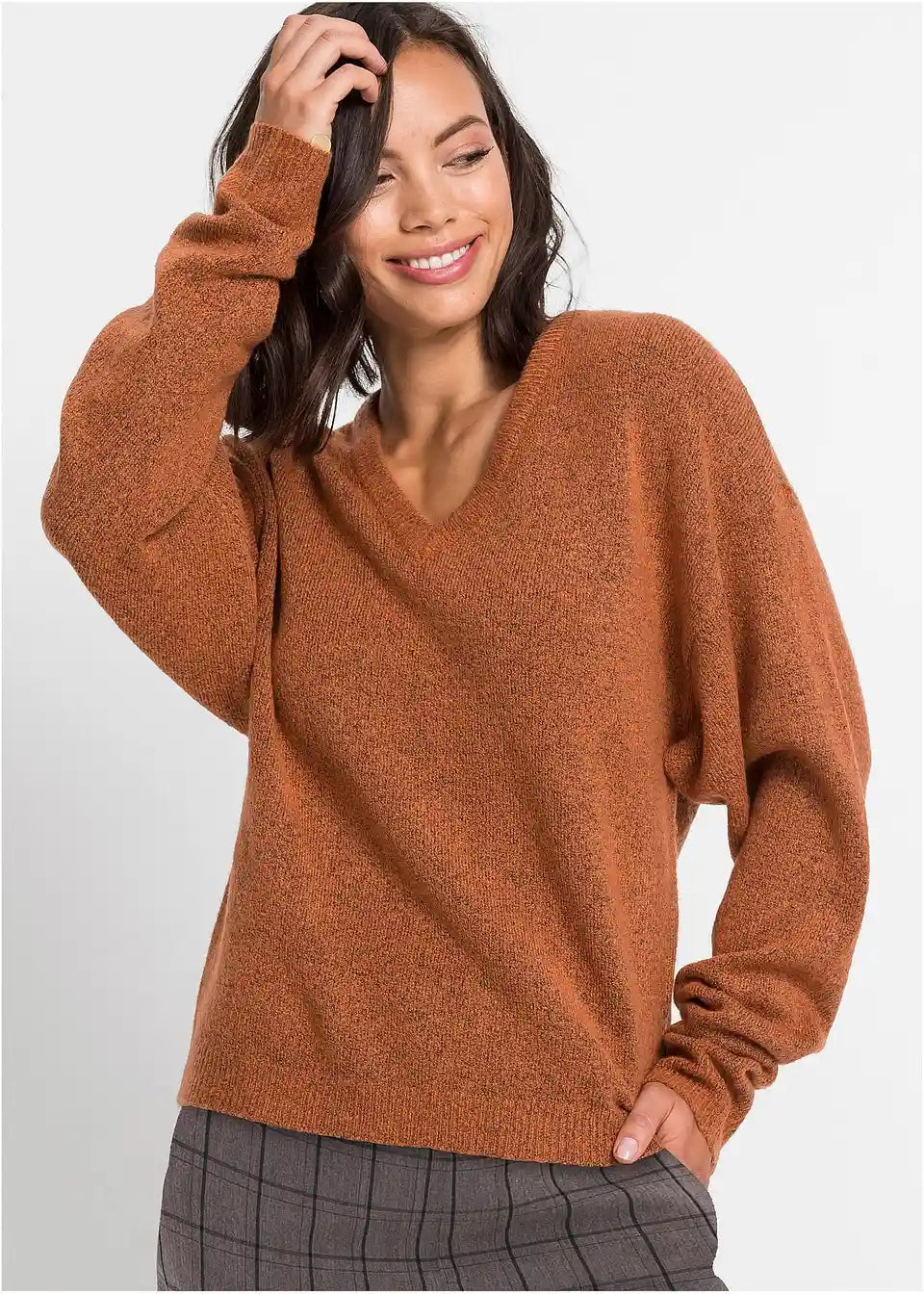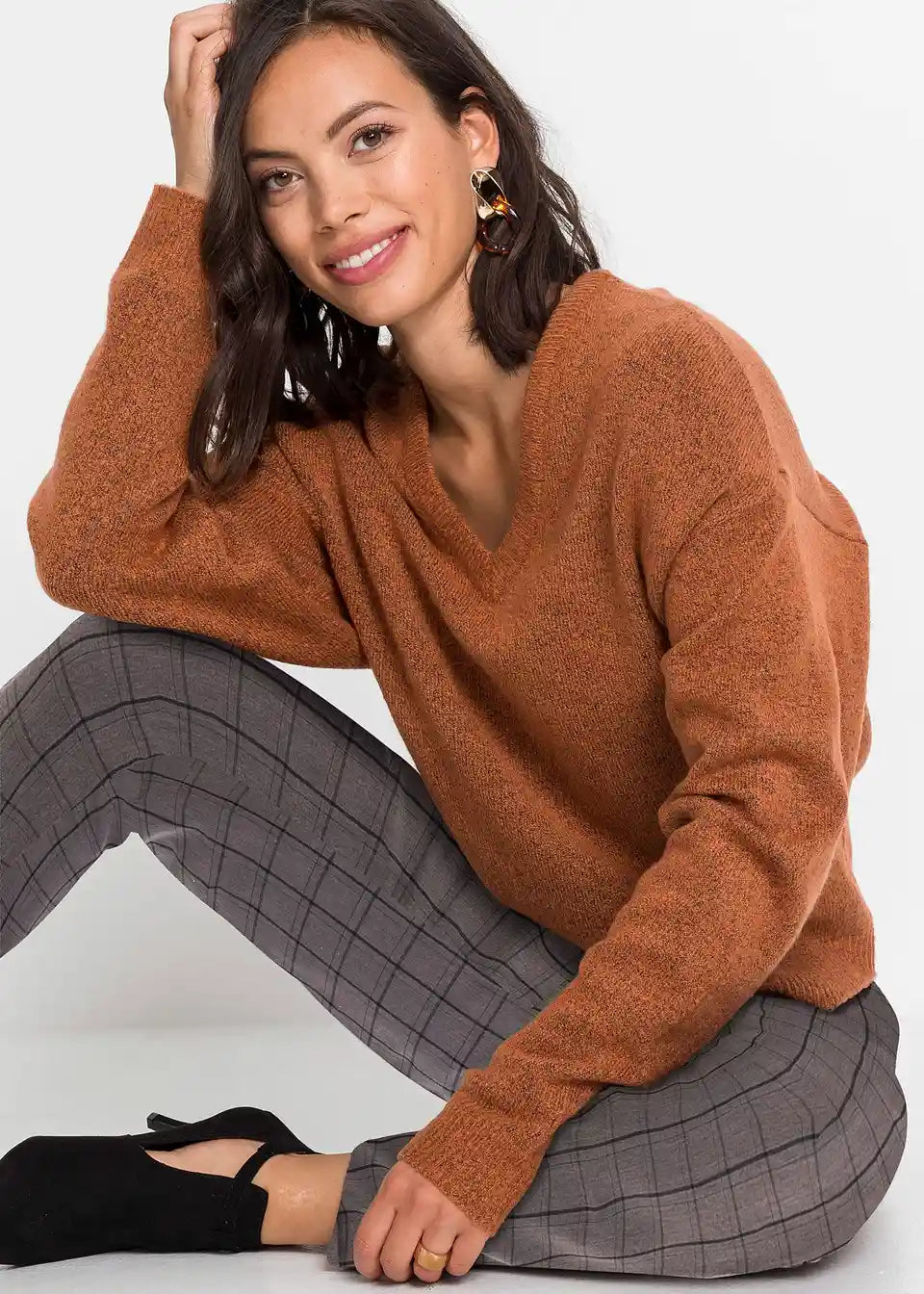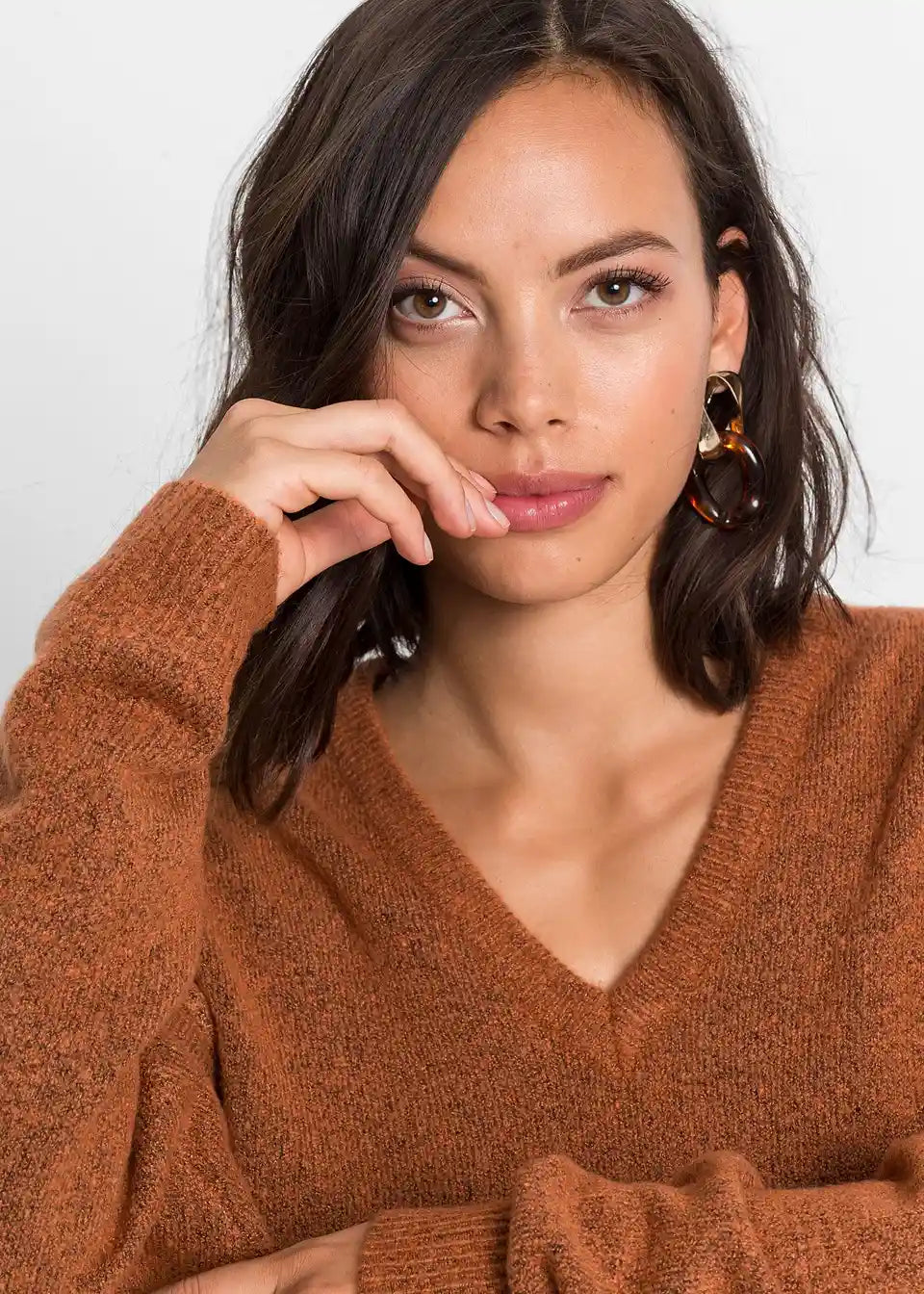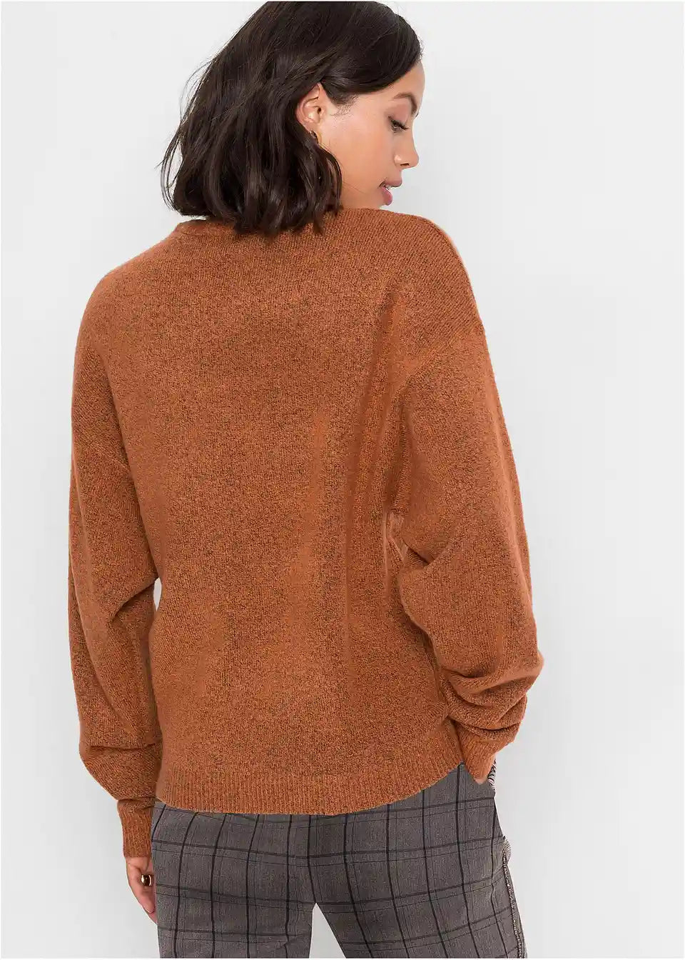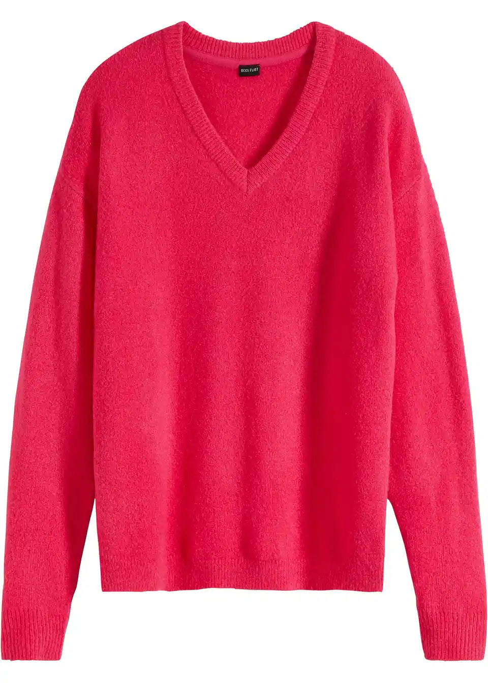 Pulover z zelo dolgimi rokavi in izjemno mehkim in prijetnim materialom. Robovi iz rebrastega pletenja na spodnjem robu, koncih rokavov in vzdolž V-izreza čudovito dopolnijo Oversize pleteni pulover.