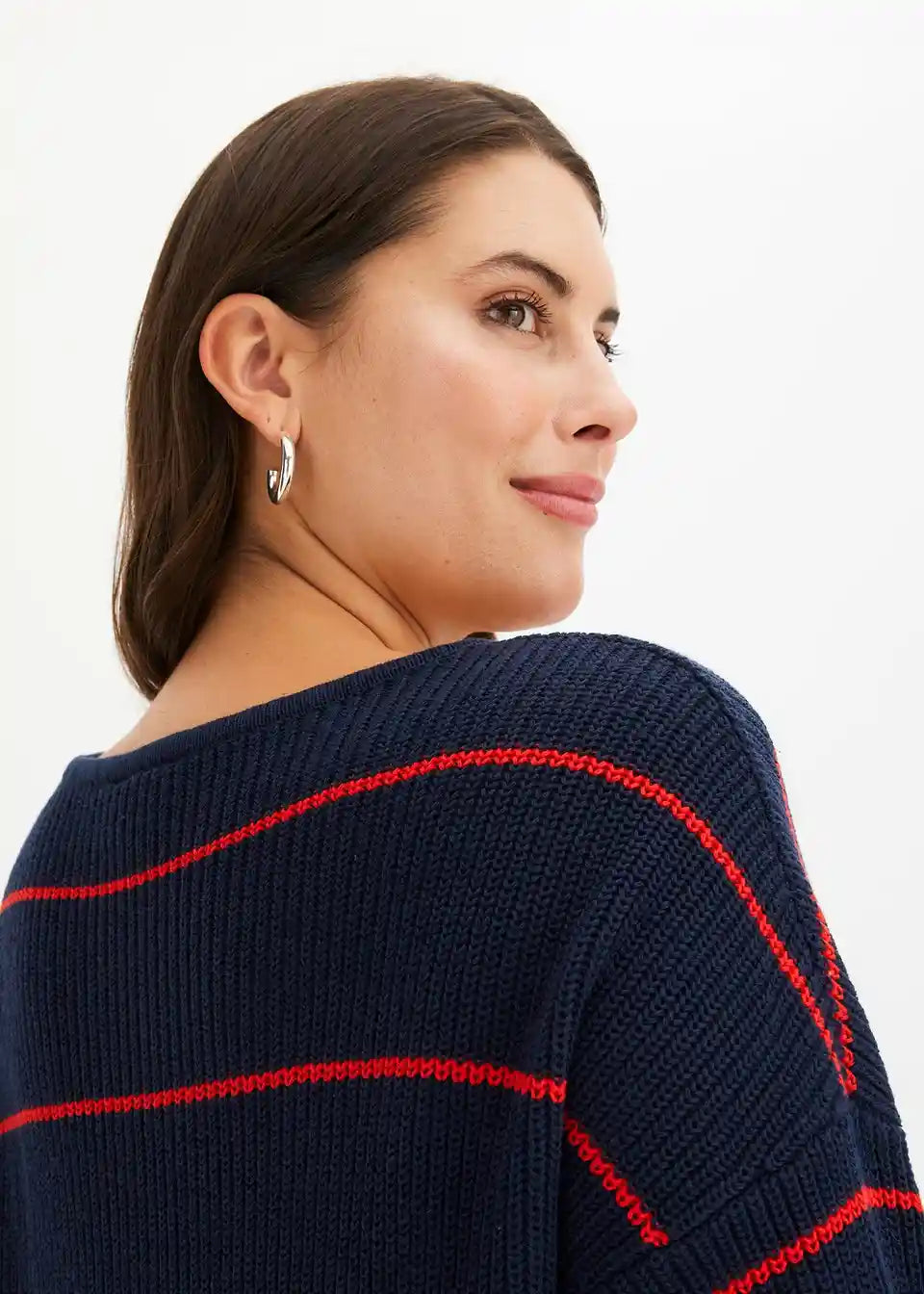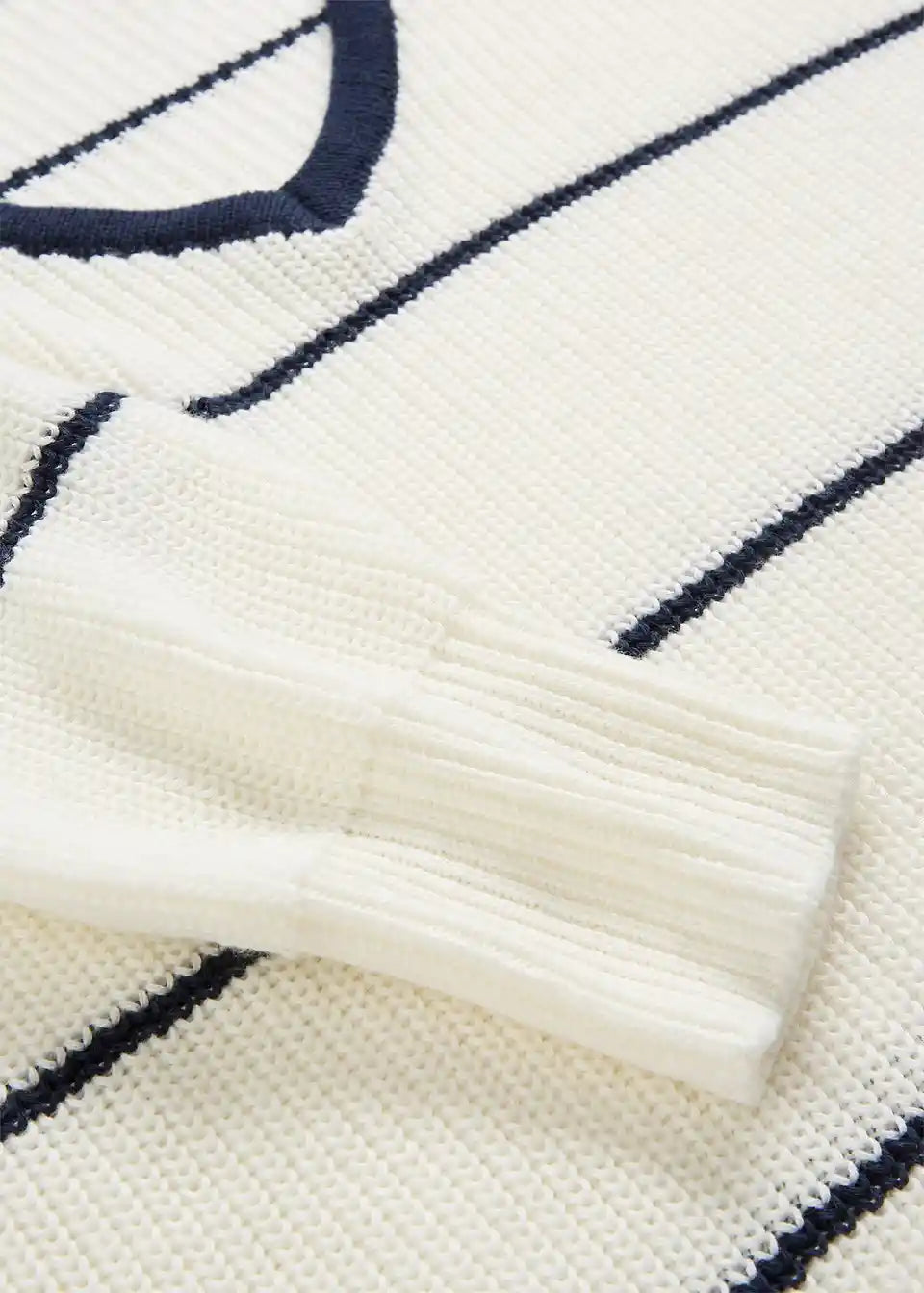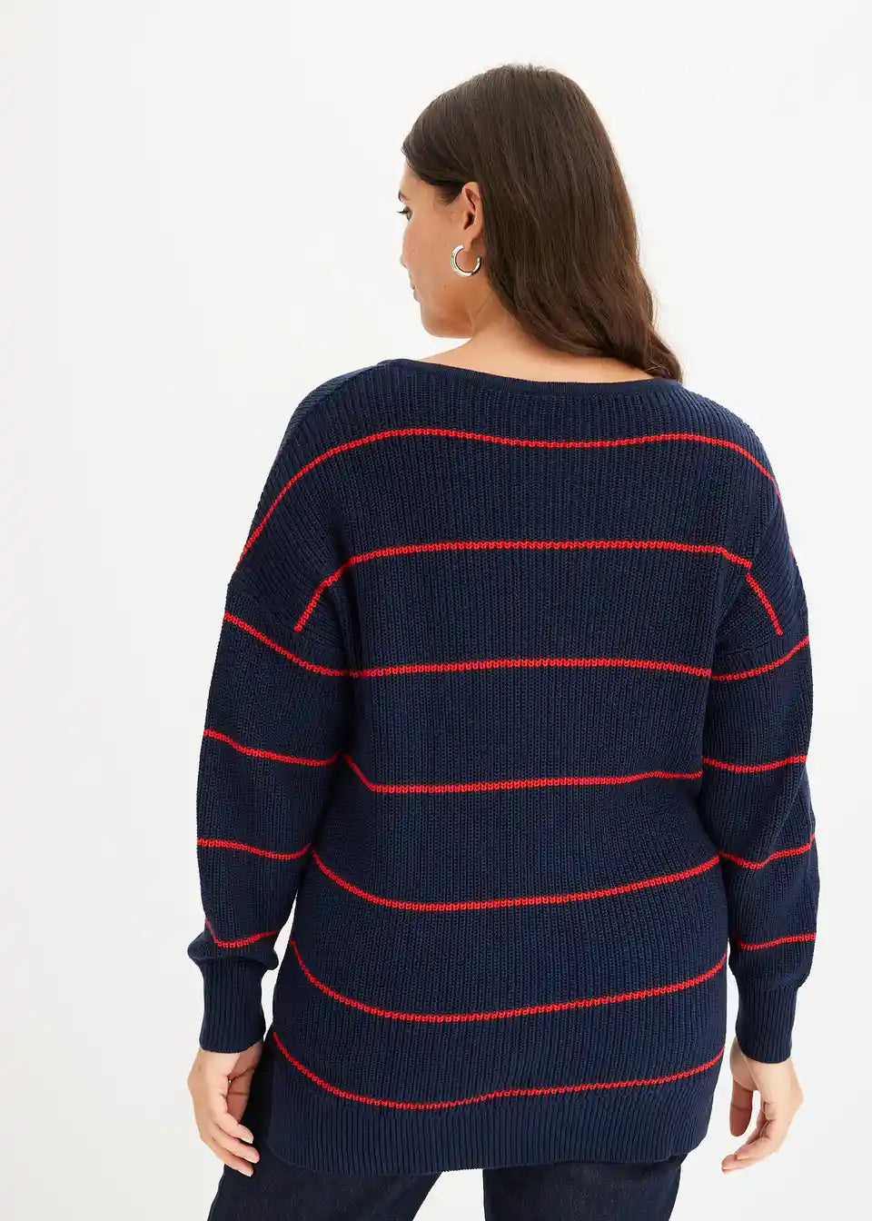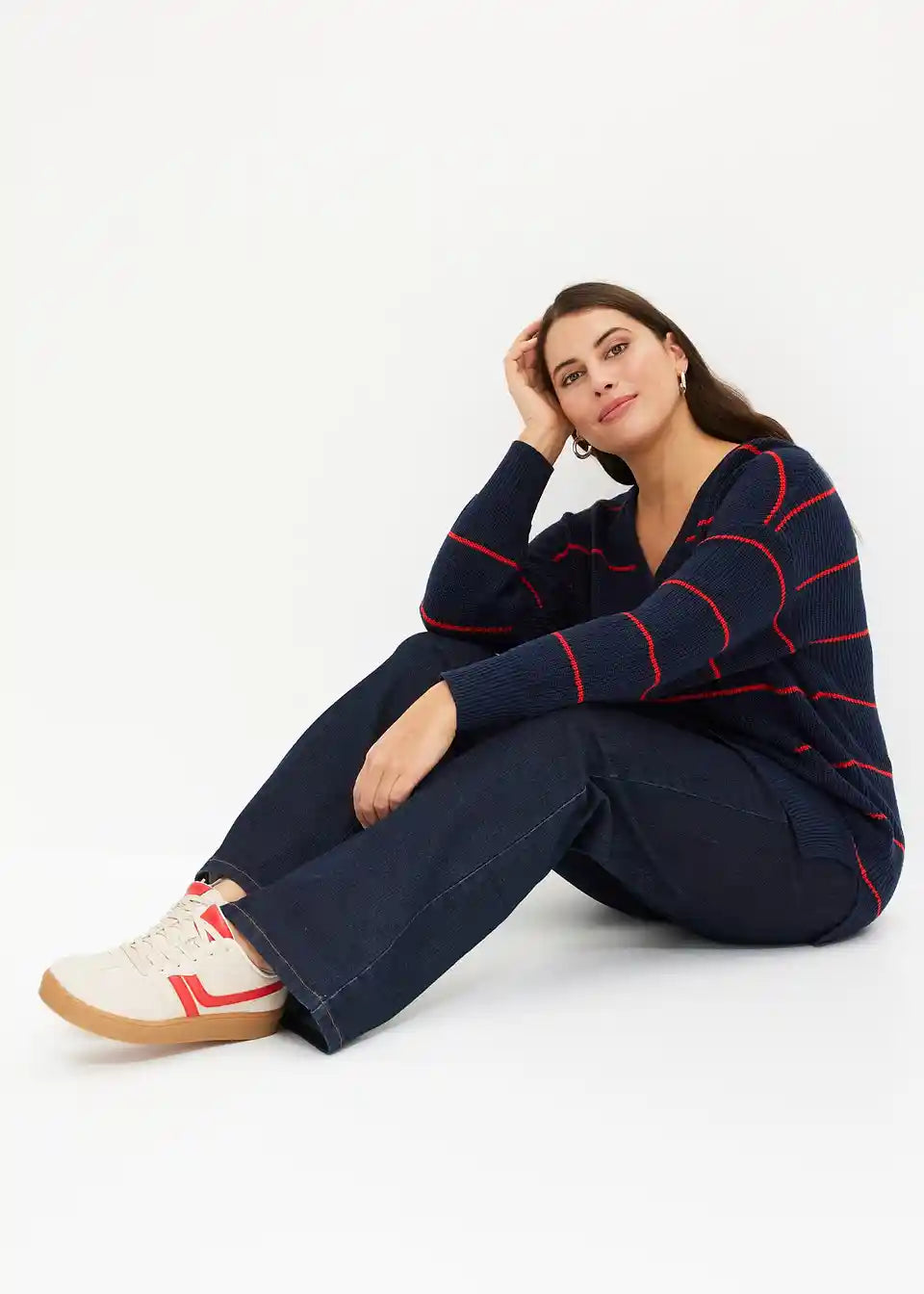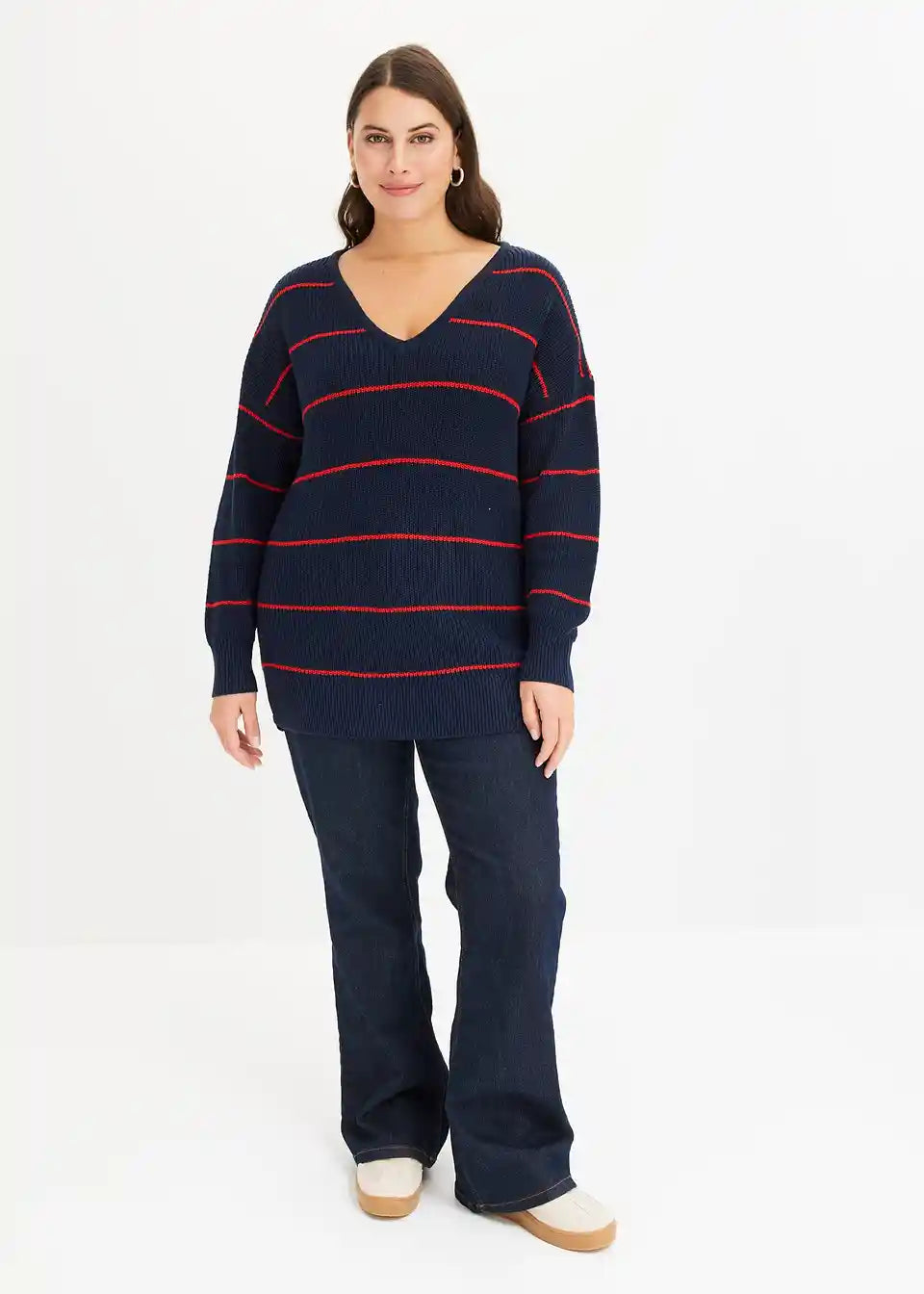 Pulover z Allover črtastim vzorcem in V-izrezom