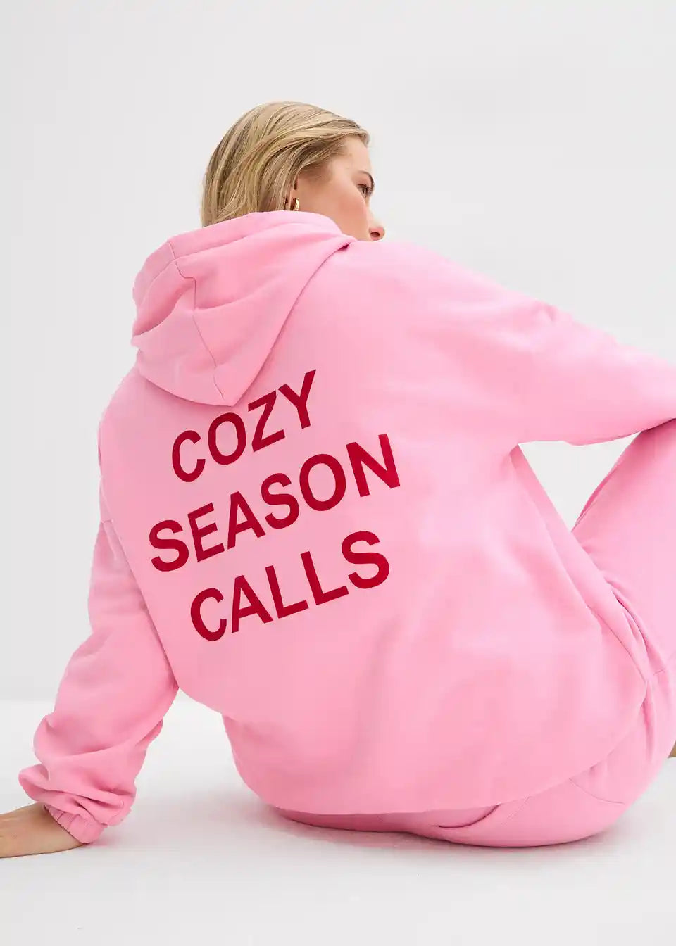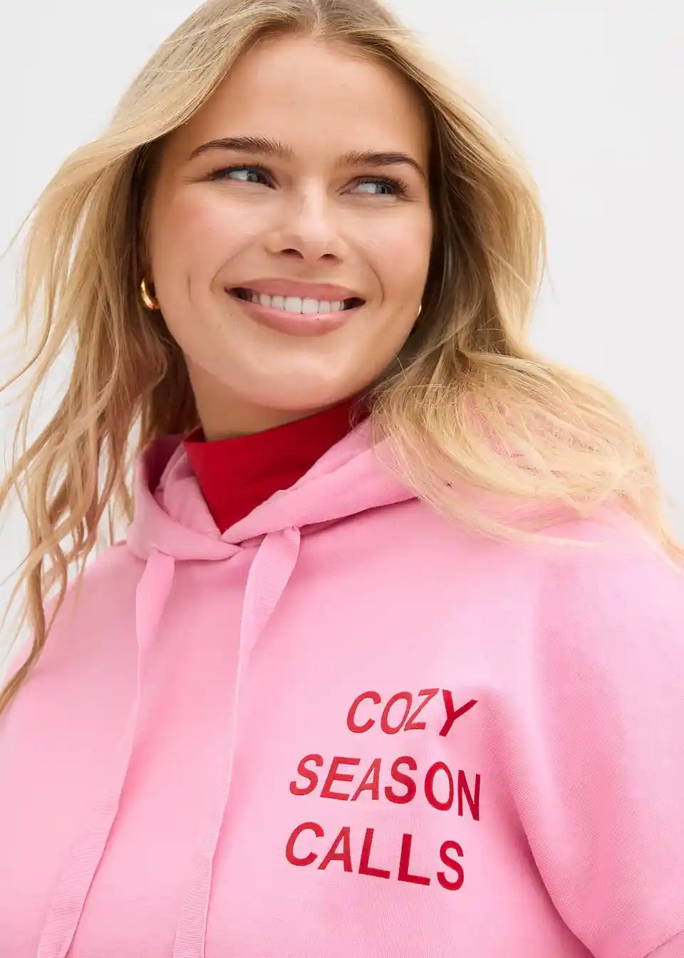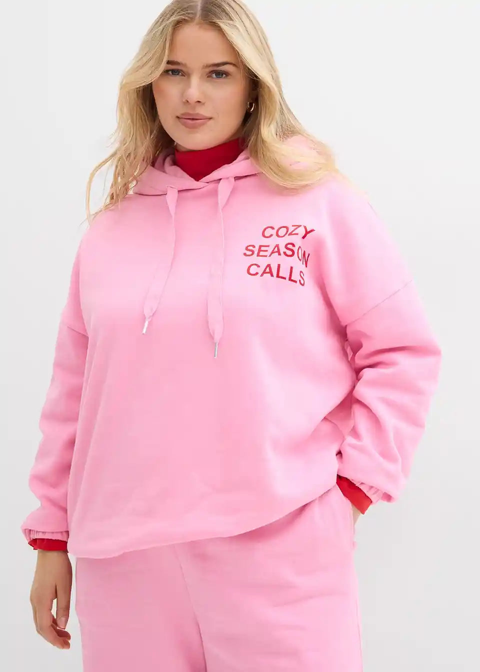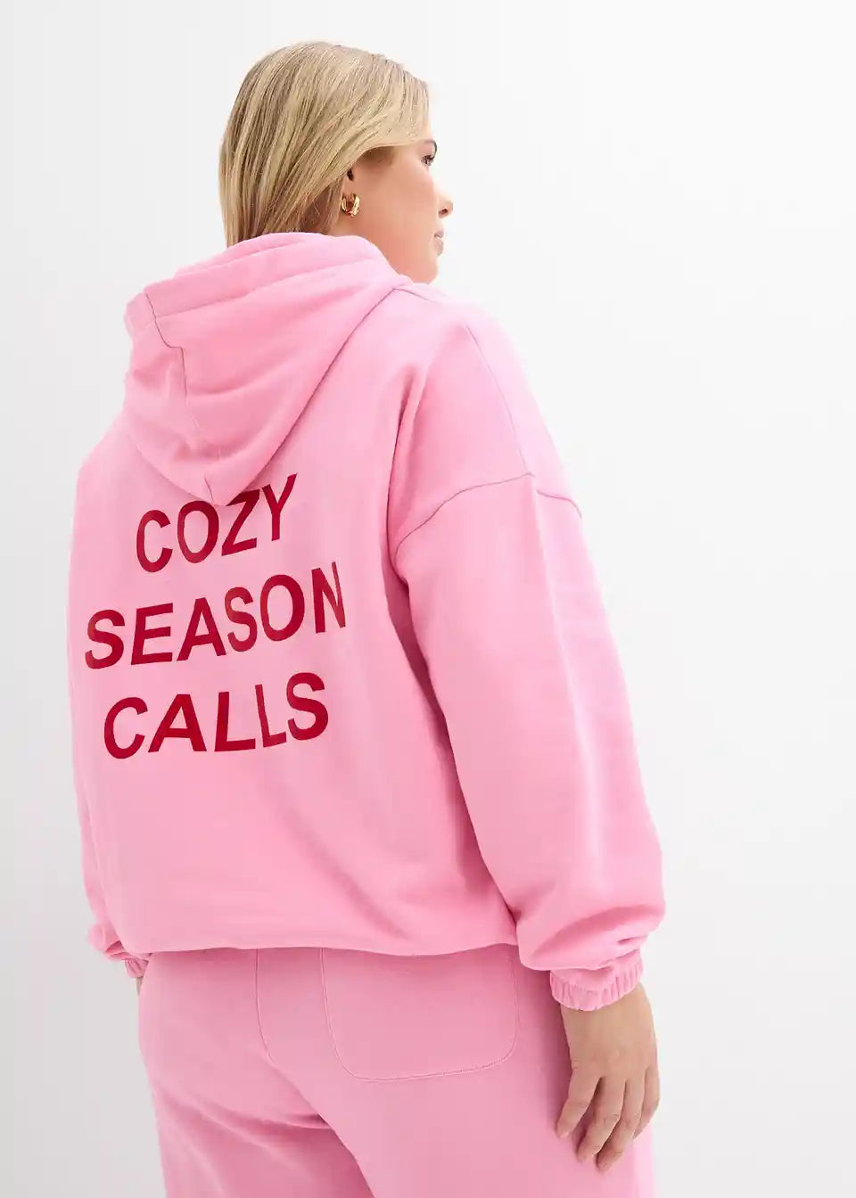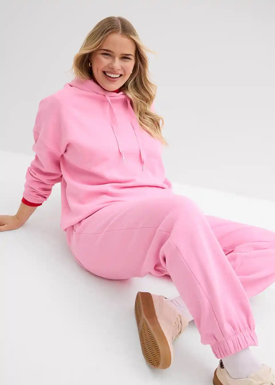 Ohlapna majica iz trikoja s kapuco in vpeljano elastiko v spodnjem robu