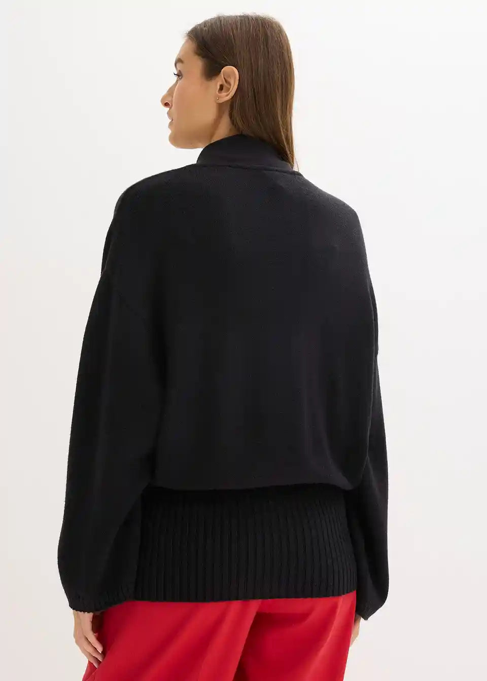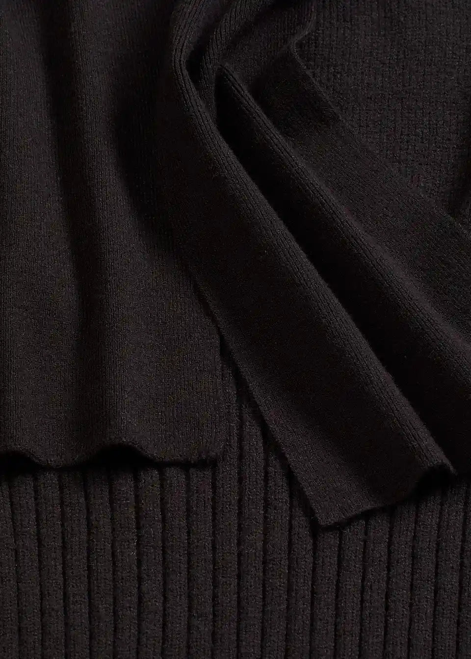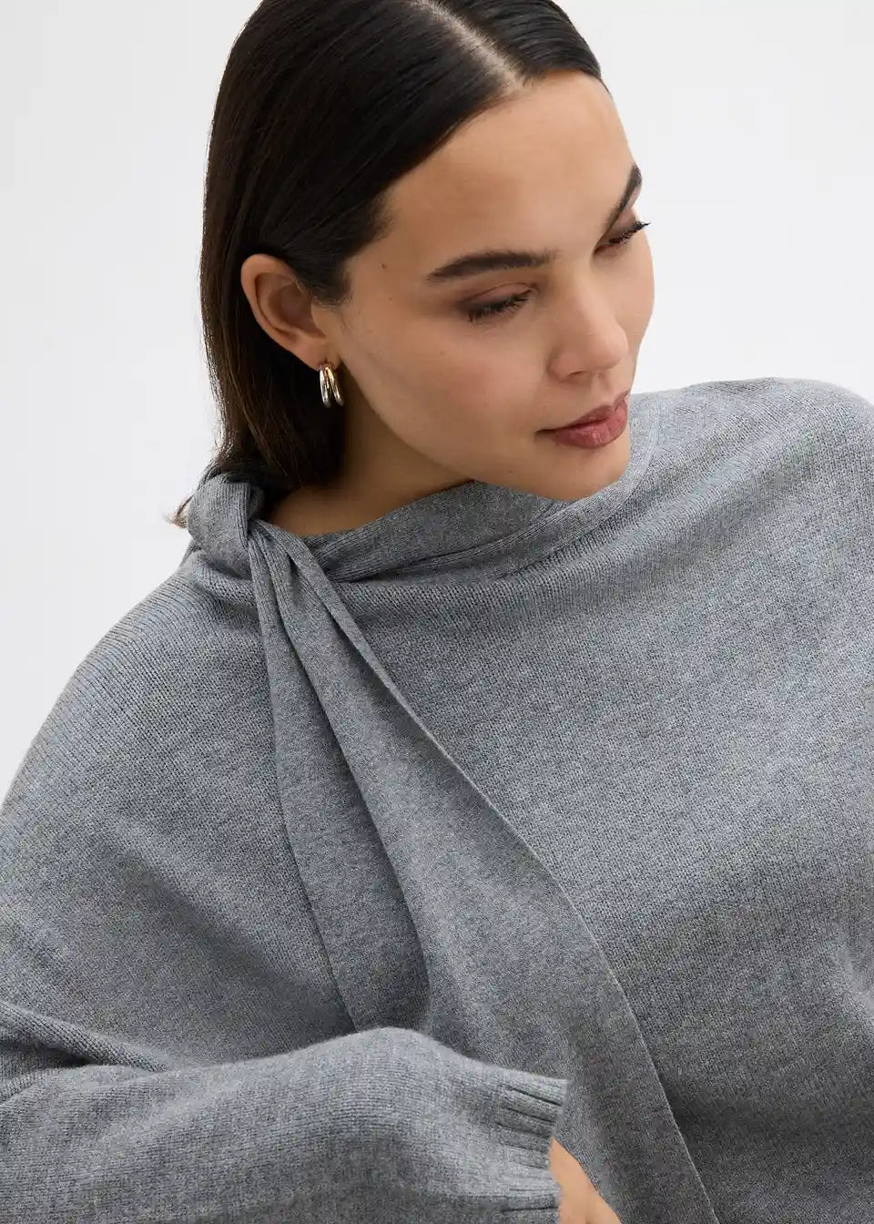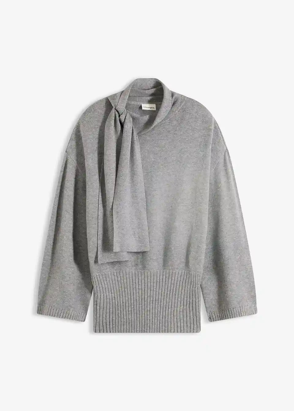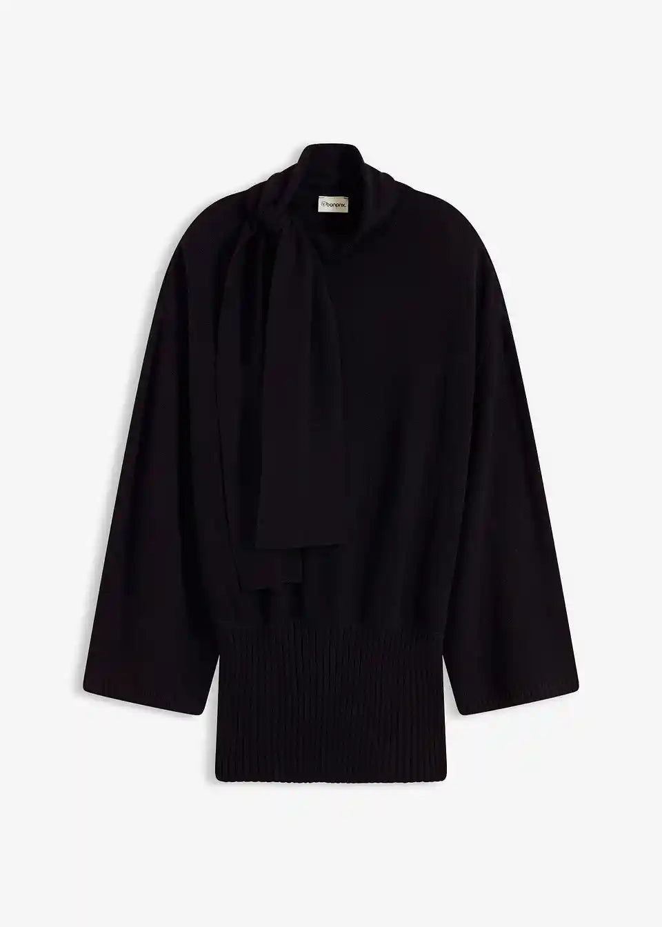 Ohlapen pulover s širokim rebrastim pasom in šalom na vratu