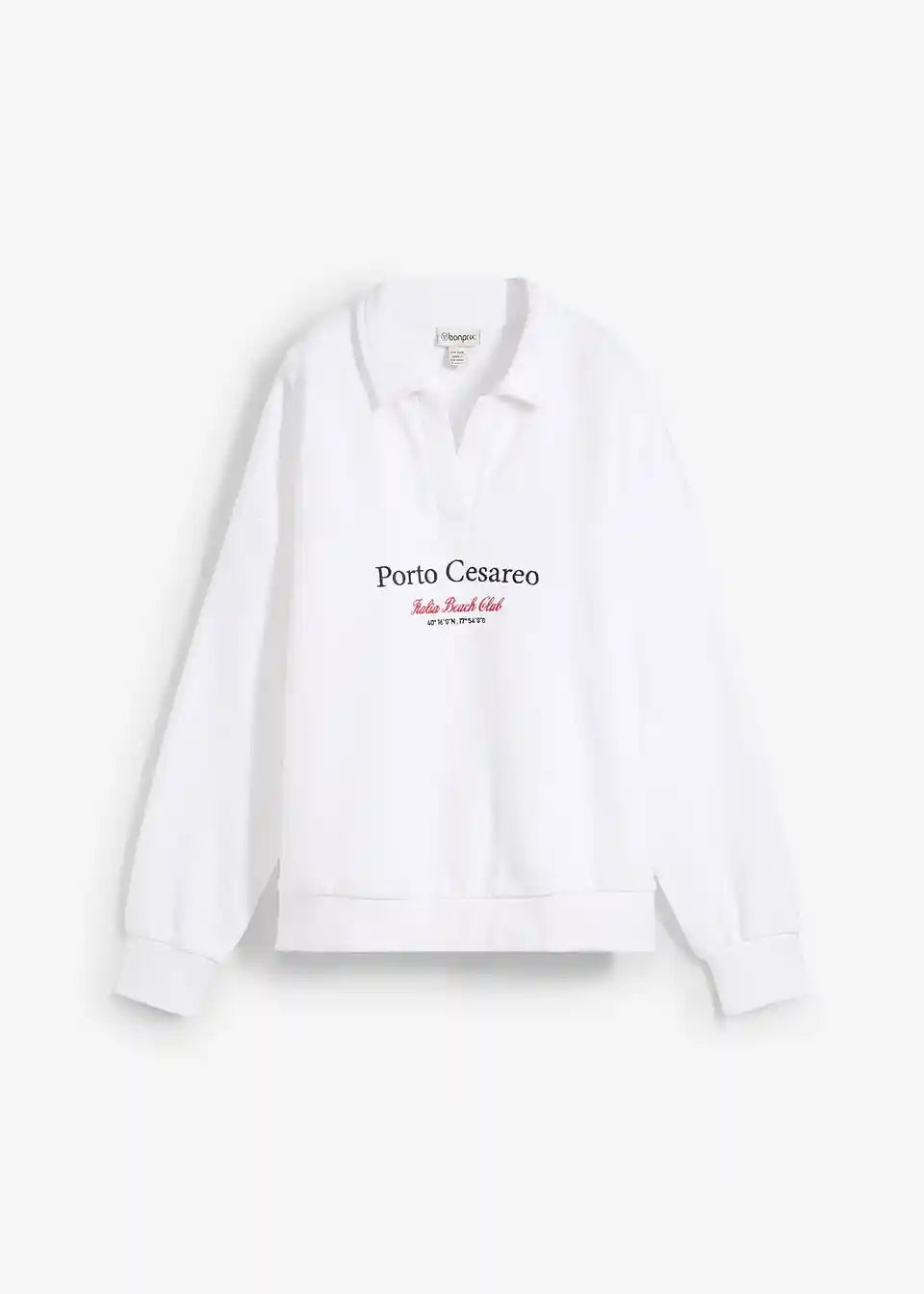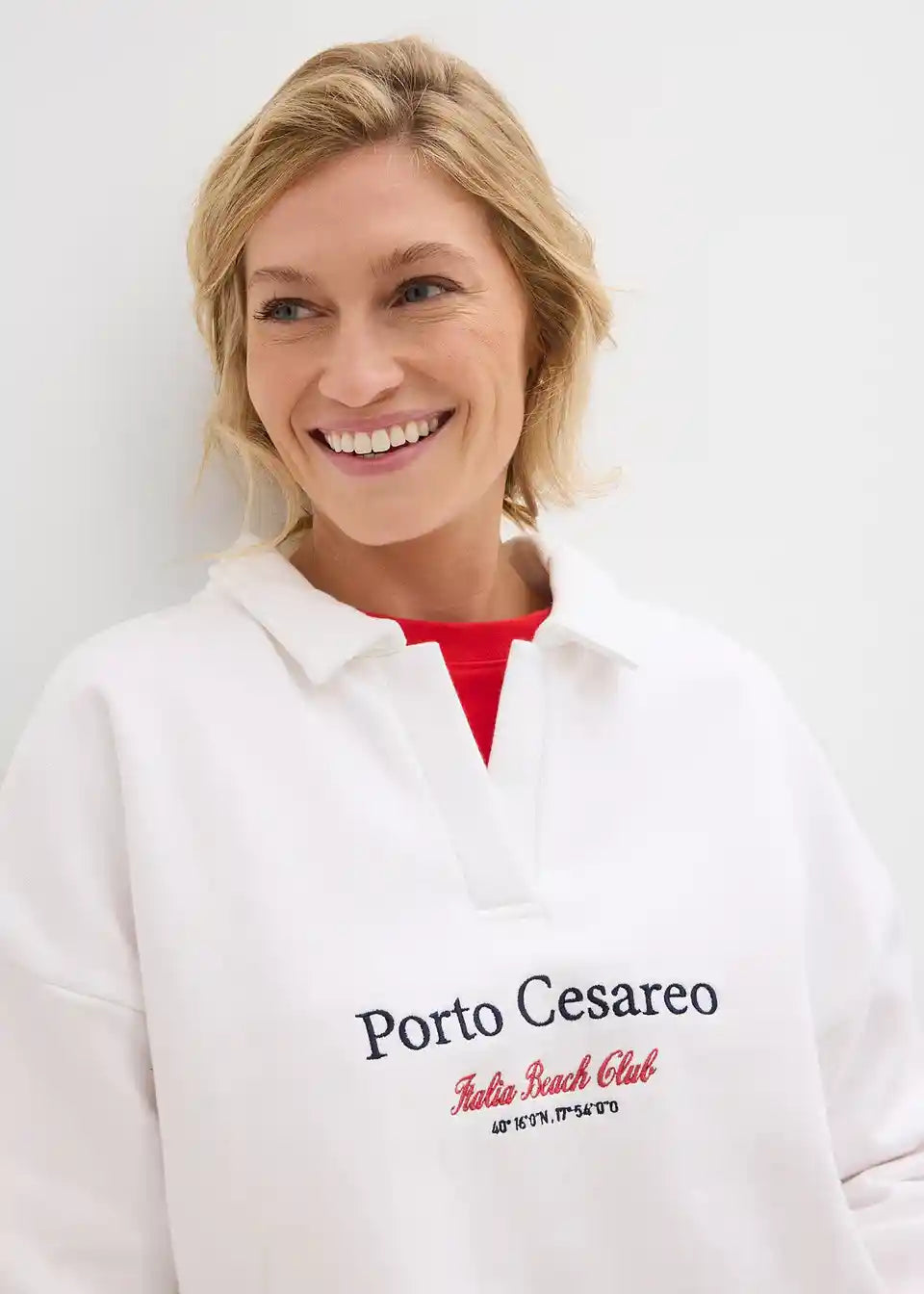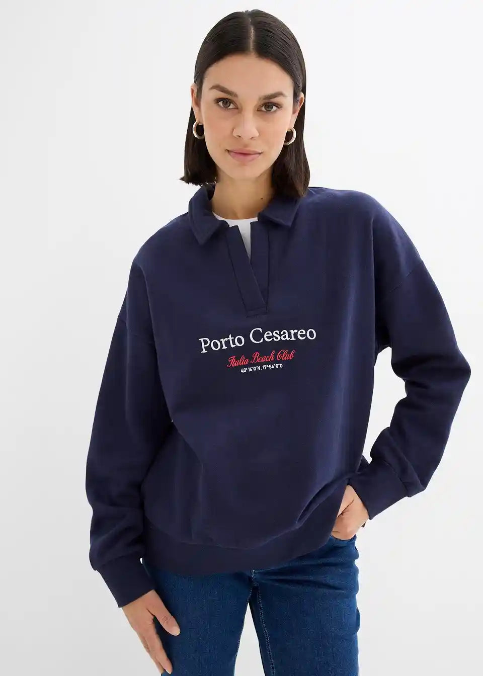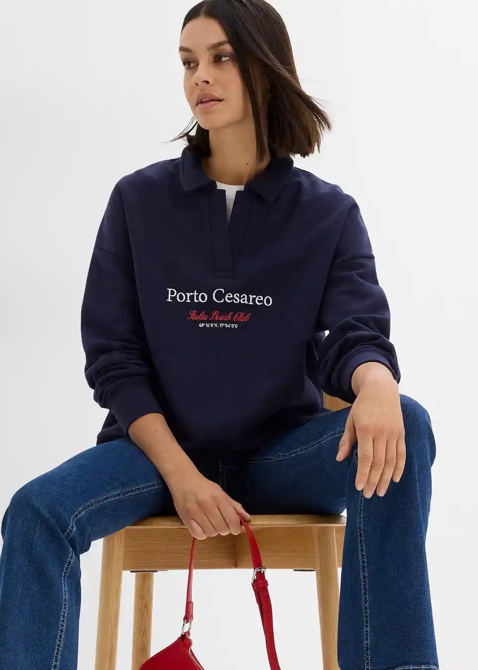 Pulover s polo ovratnikom in vezenino - oversize kroj