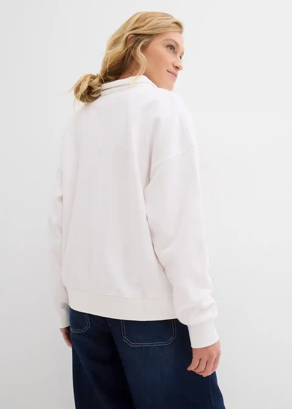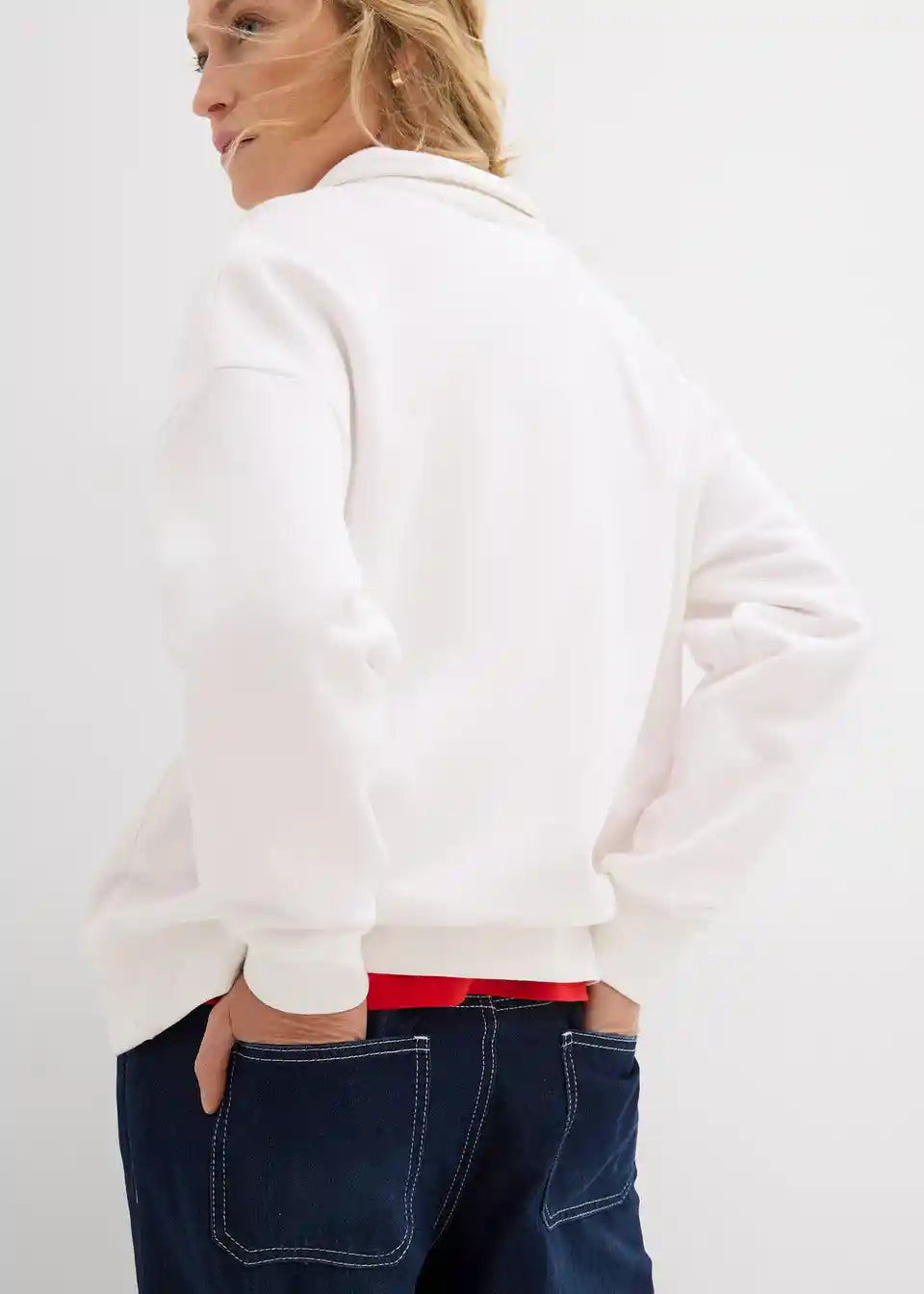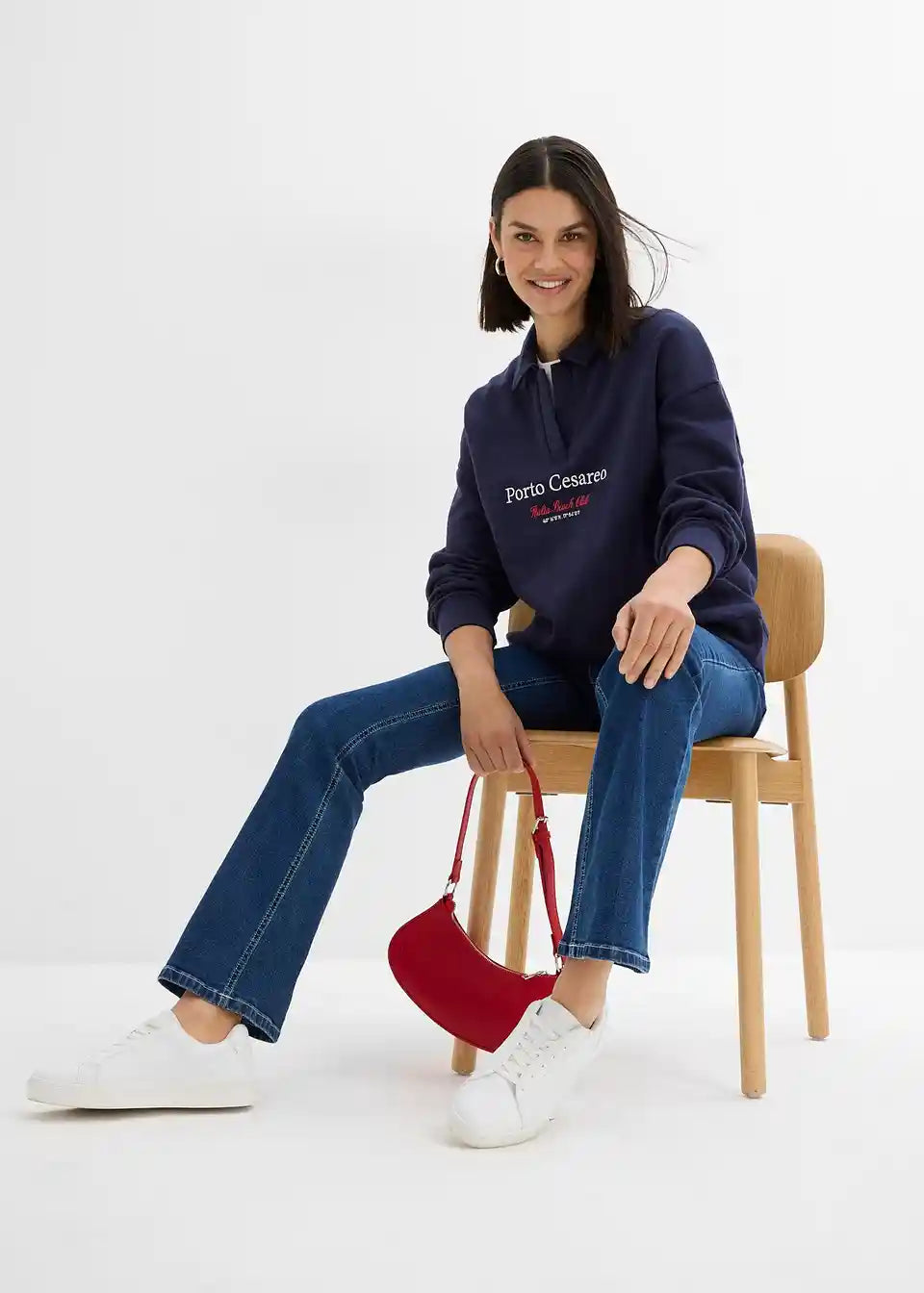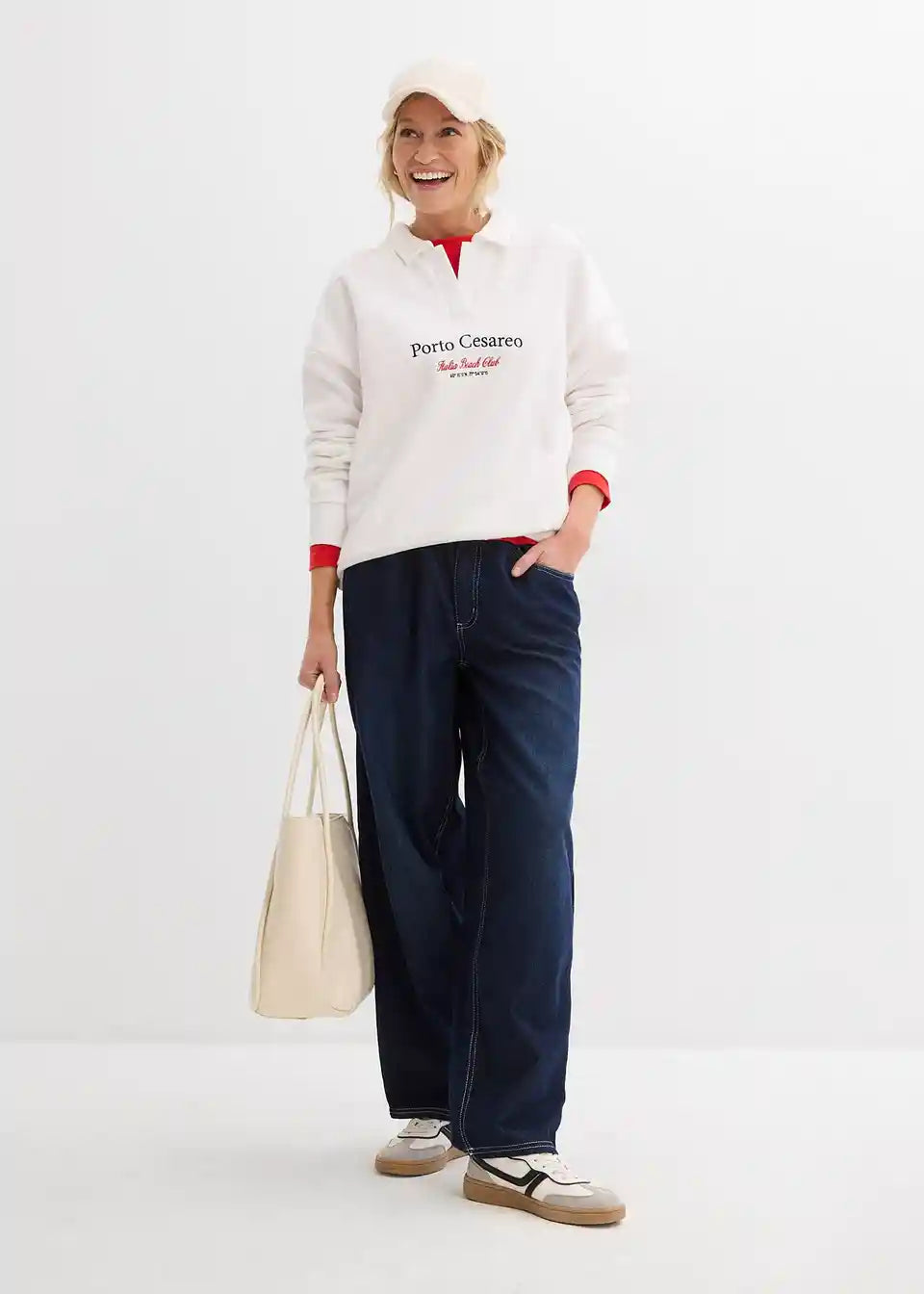 Pulover s polo ovratnikom in vezenino - oversize kroj