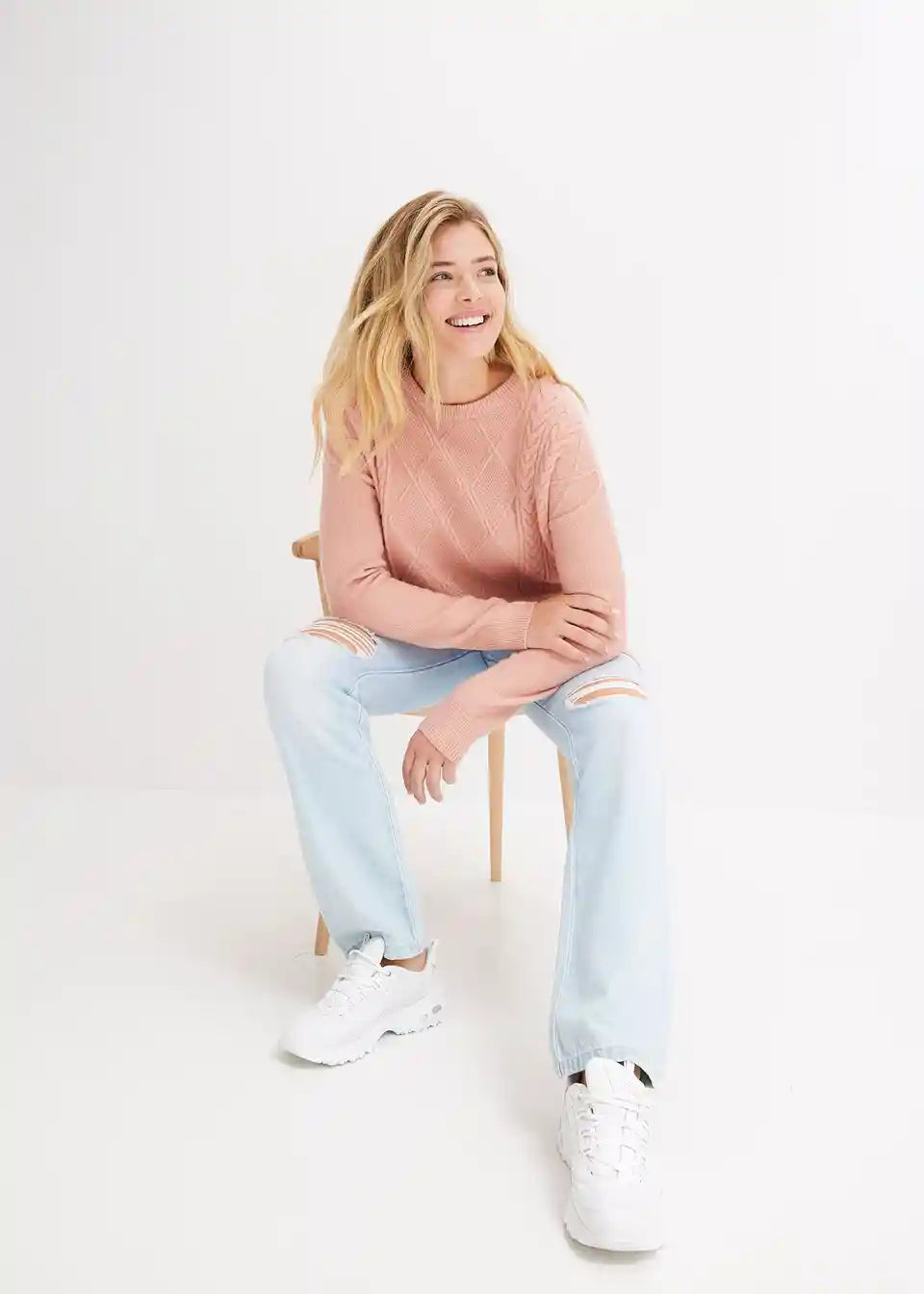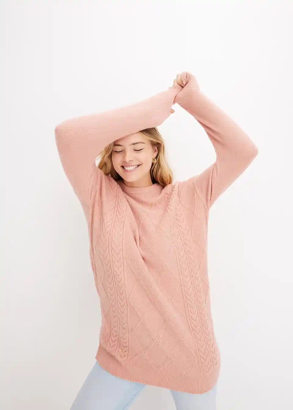 Ležeren oversize-pulover s čudovitim pletenim vzorcem