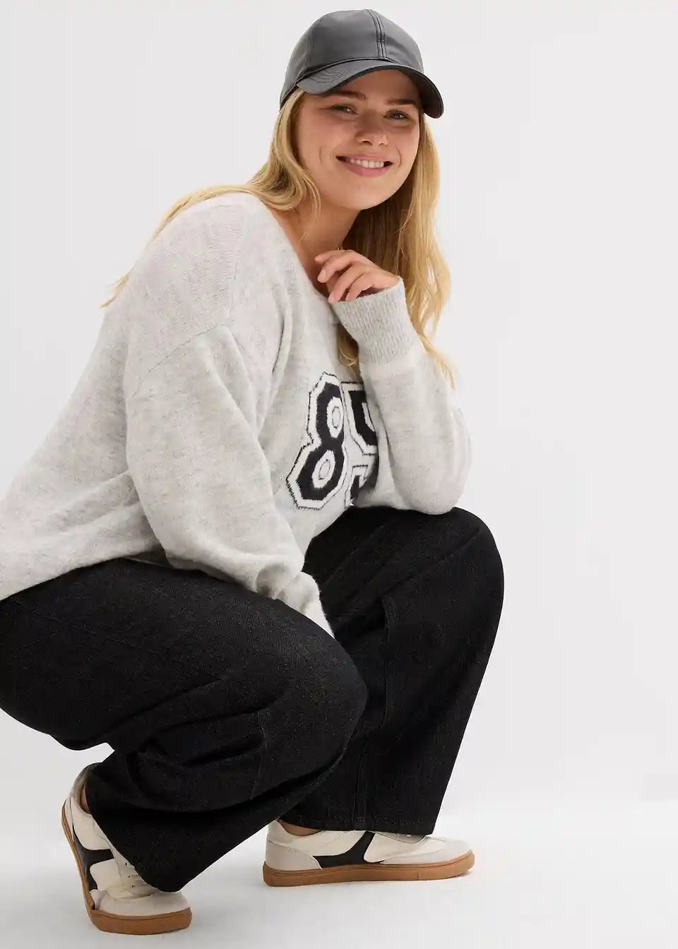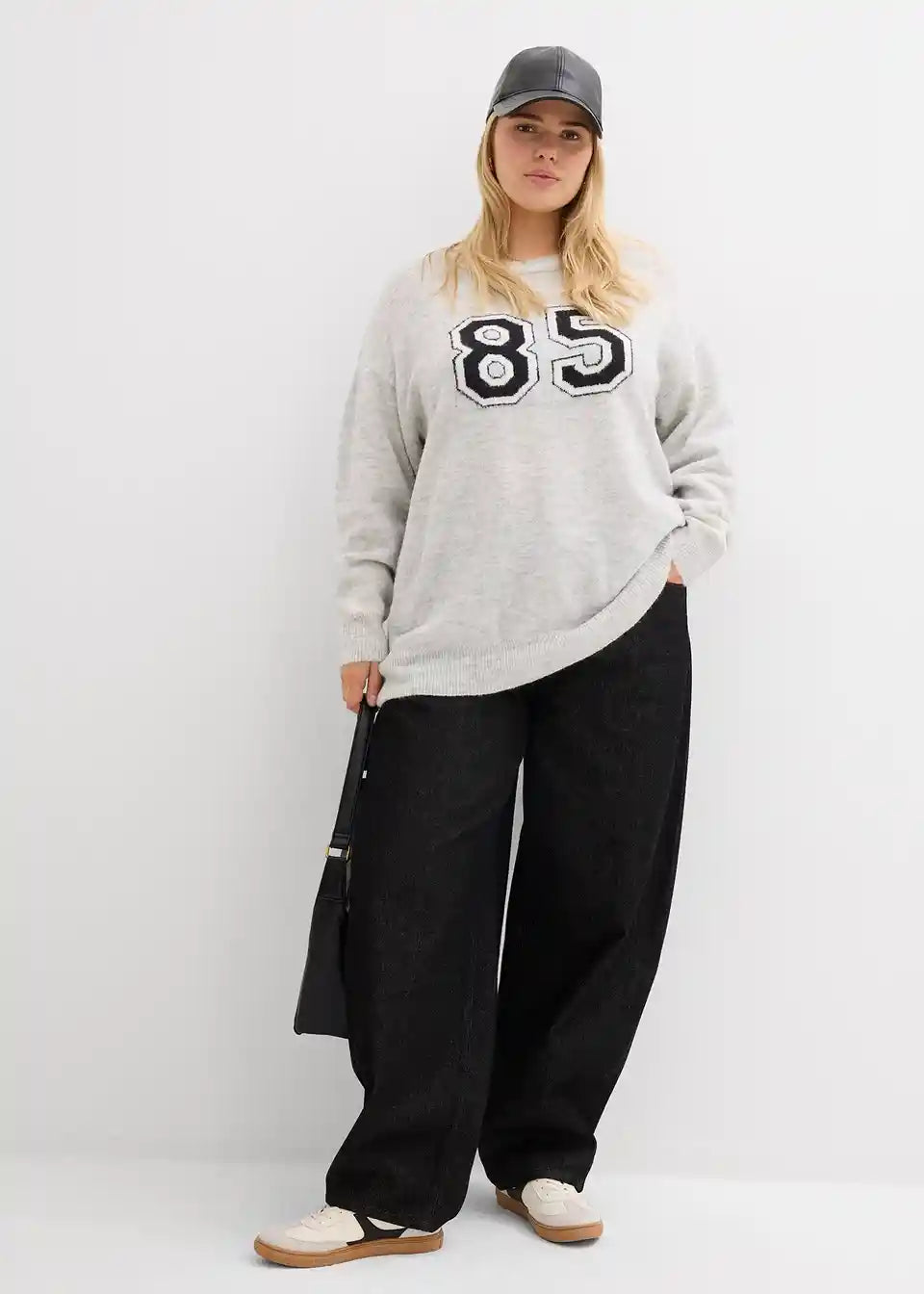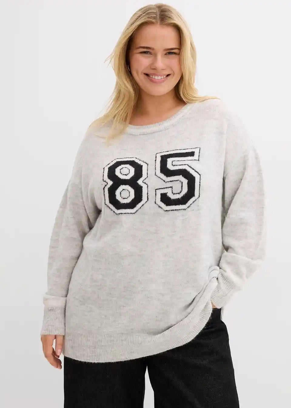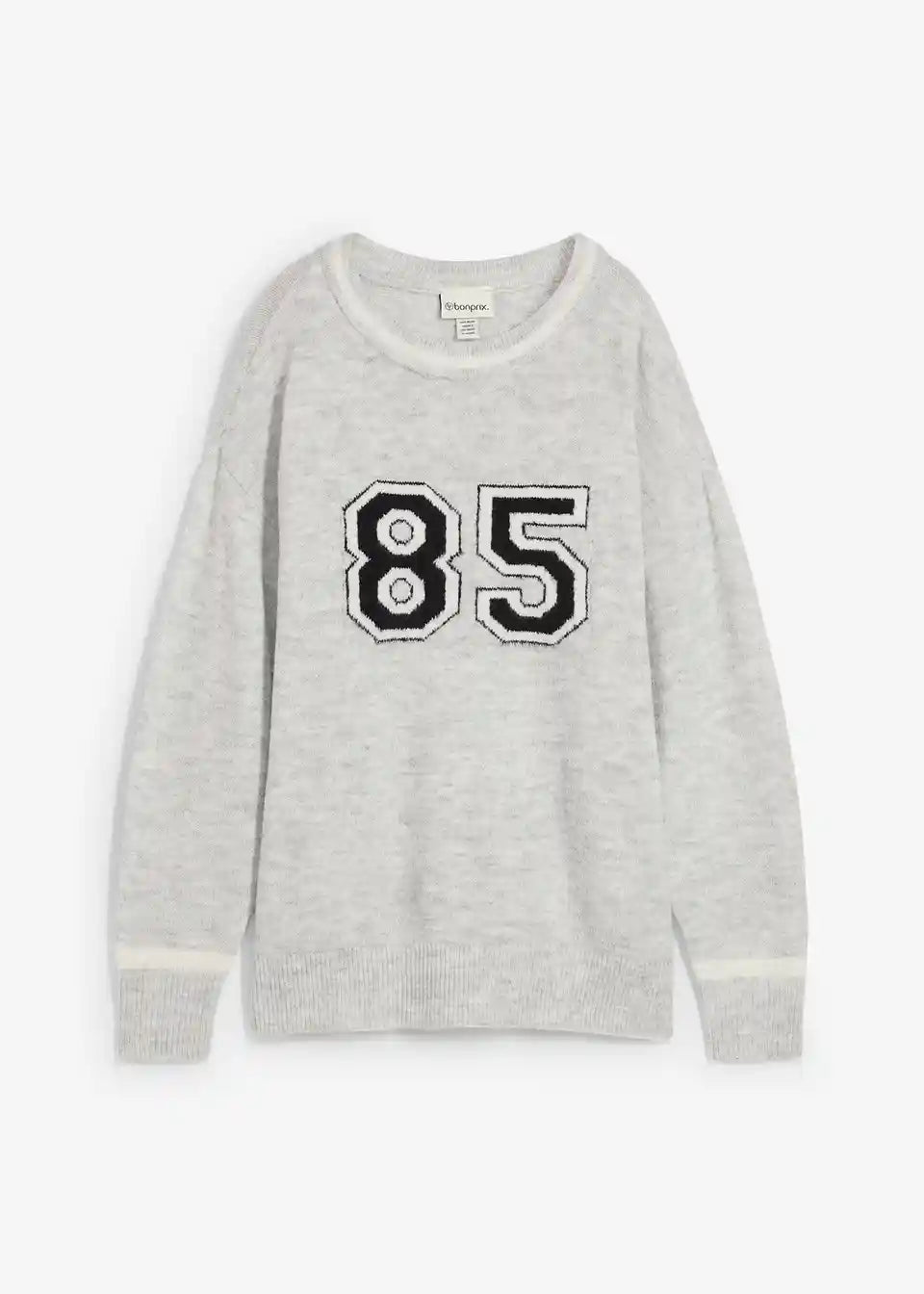 Moderen ohlapen pulover z v rokave podaljšanimi ramami in napisom