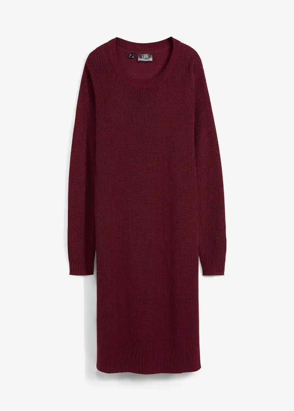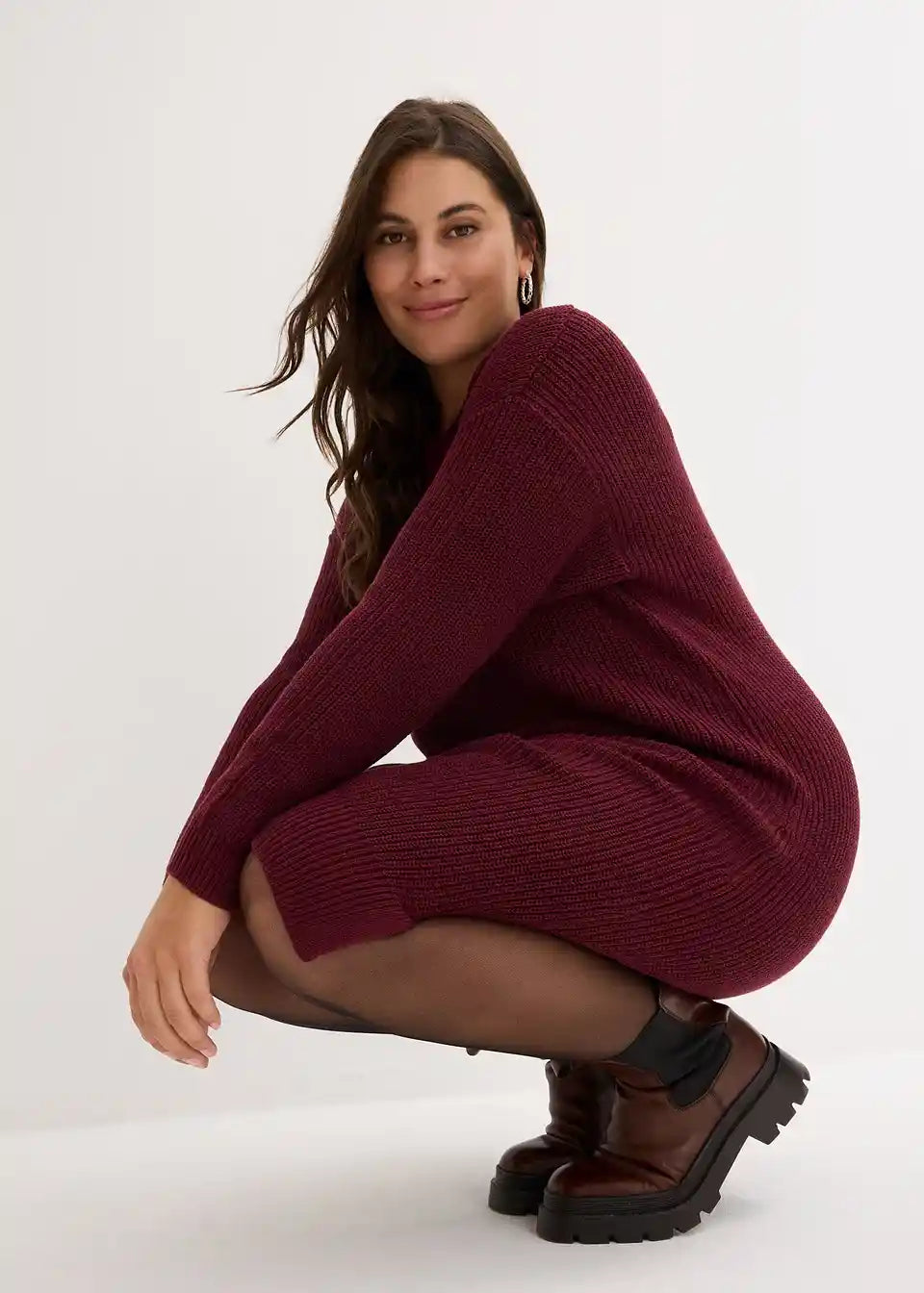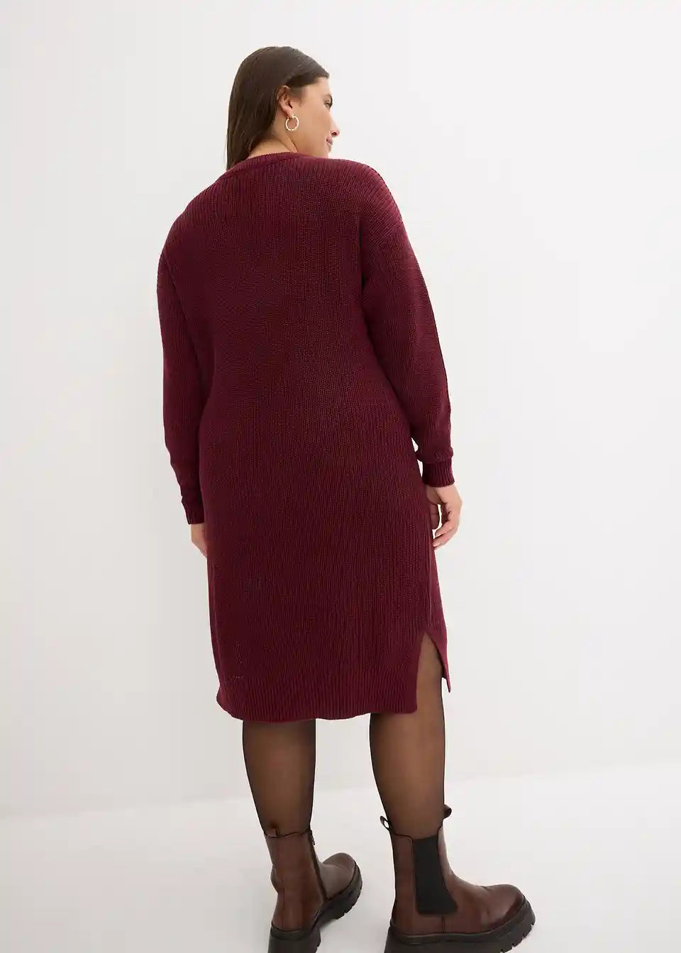 Široka rebrasto pletena obleka s stranskimi razporki za več udobja