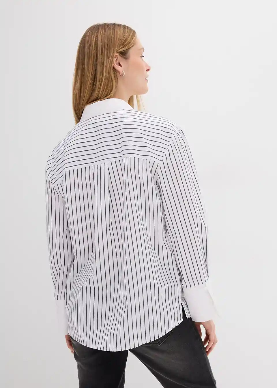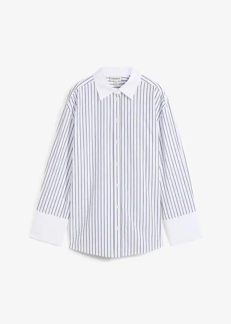 Oversize bluza z dolgimi rokavi in zapenjanjem na gumbe