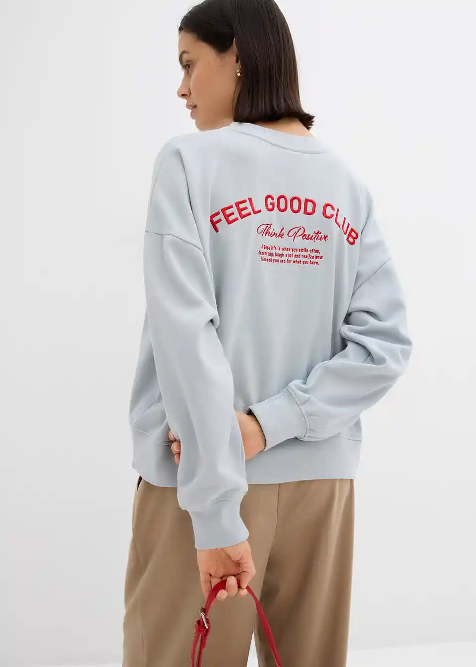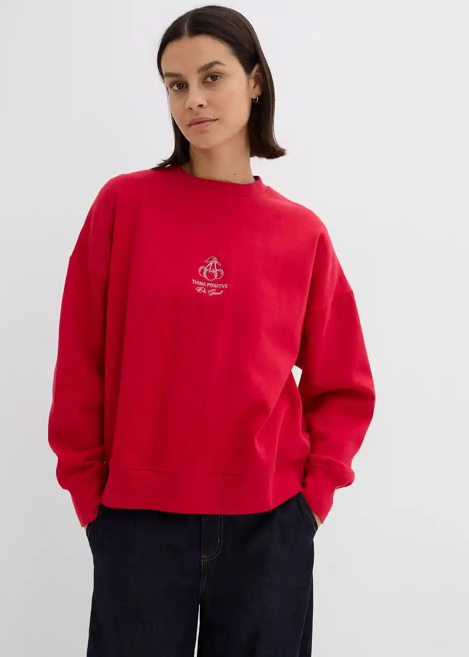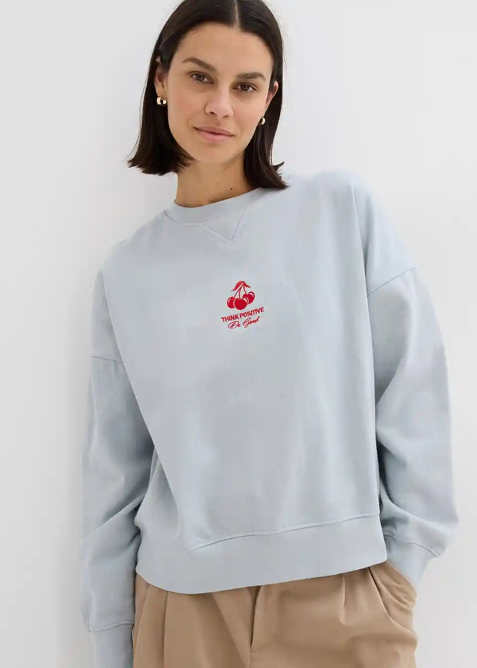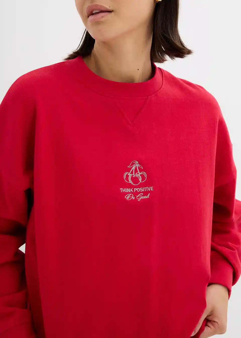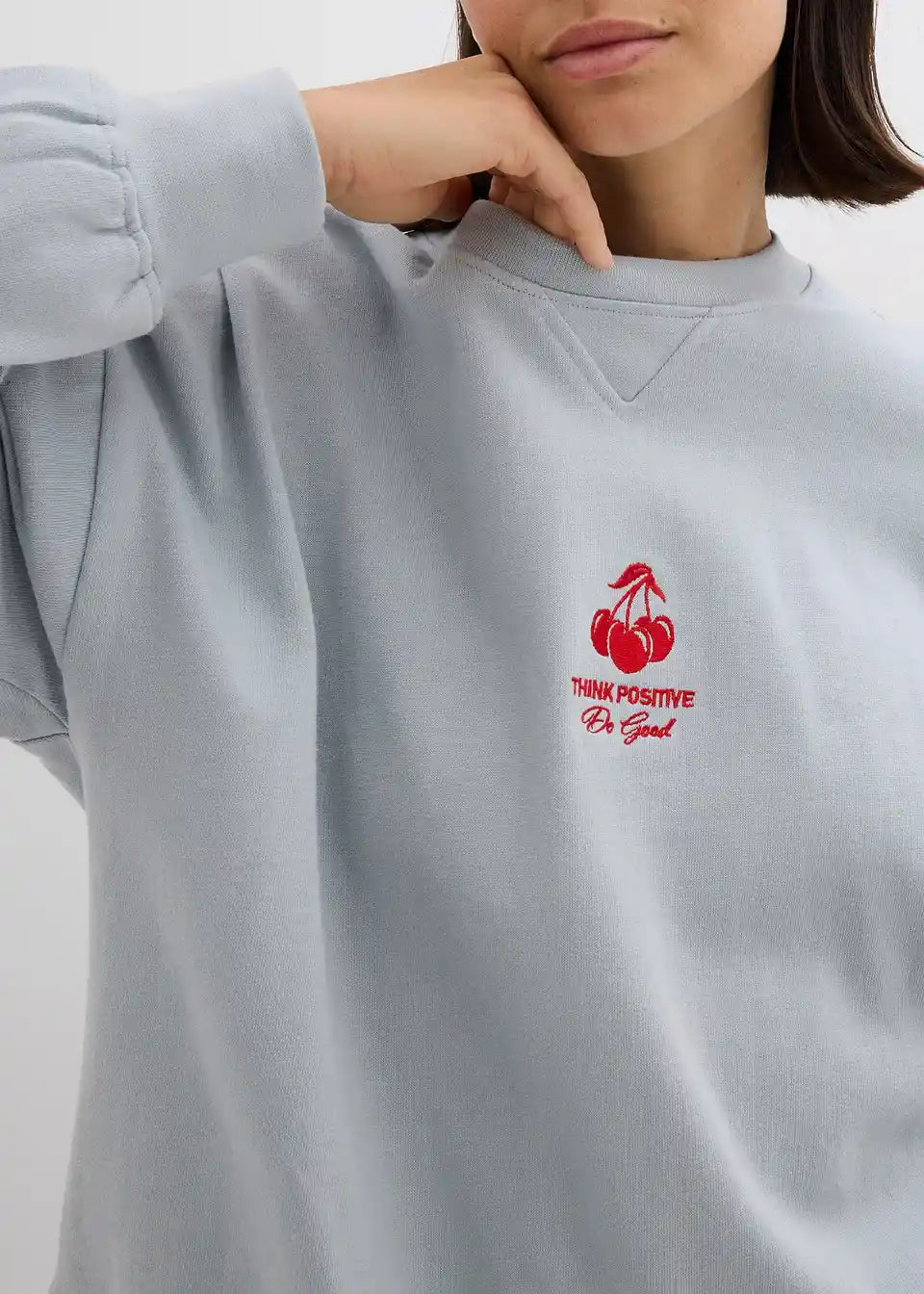 Ležeren oversize sweatshirt z vezenino in spuščenimi rameni
