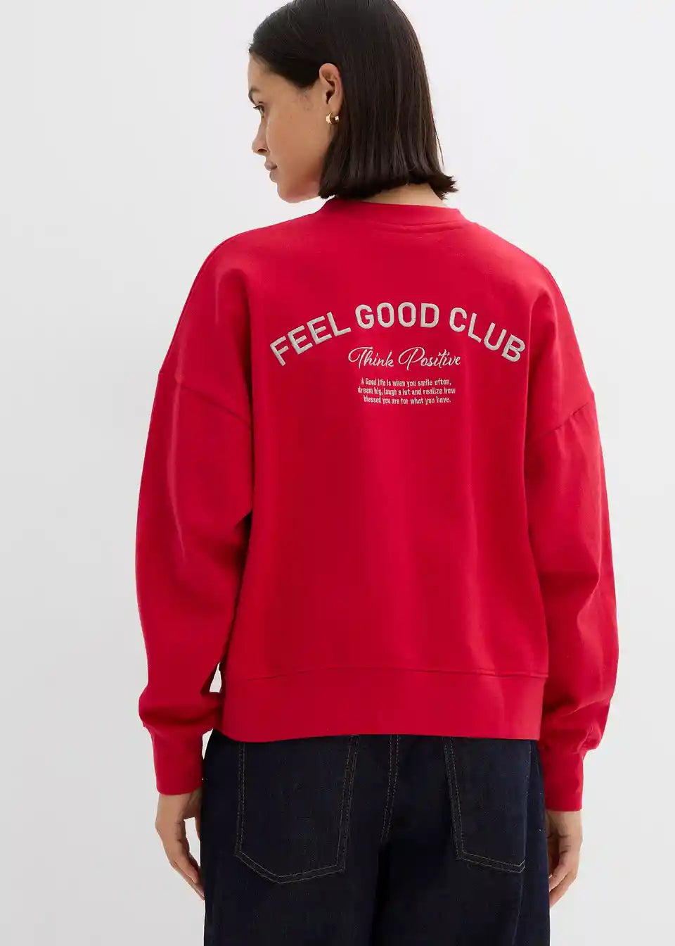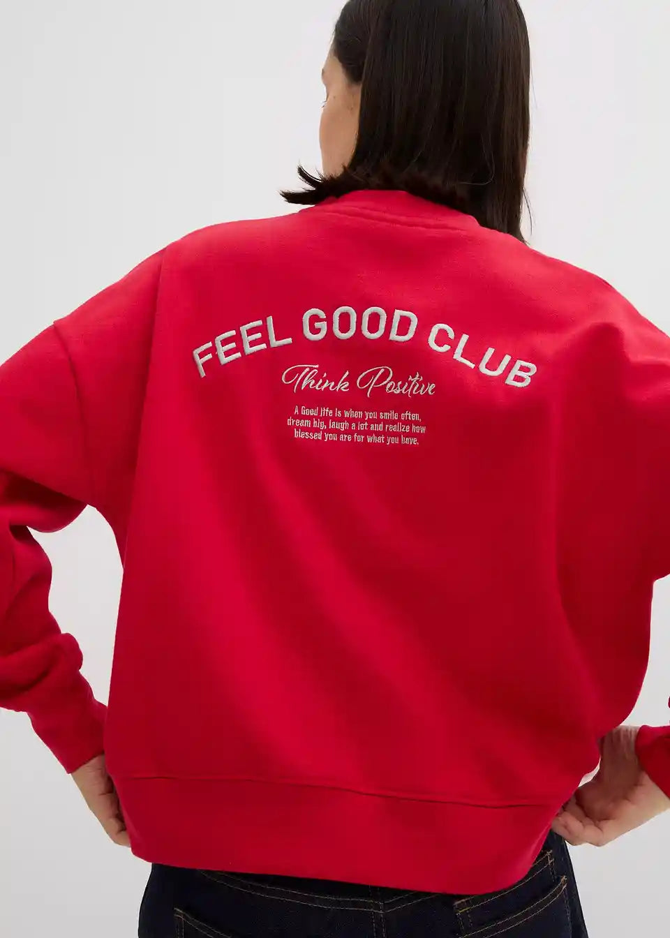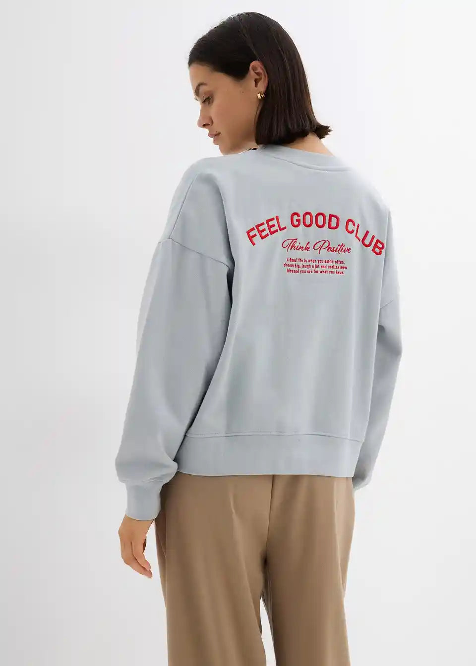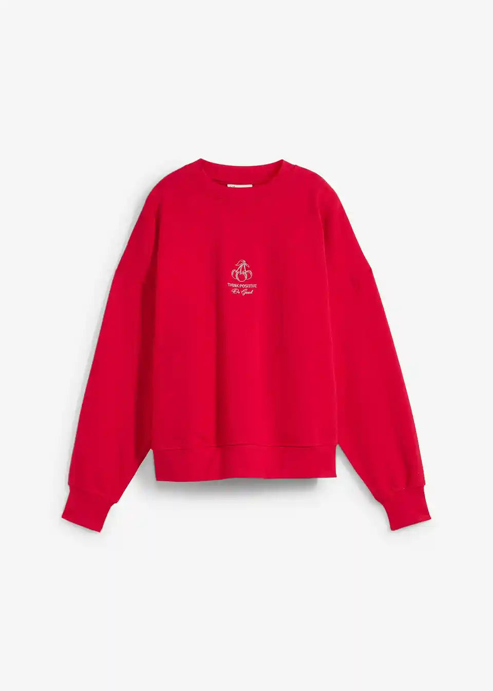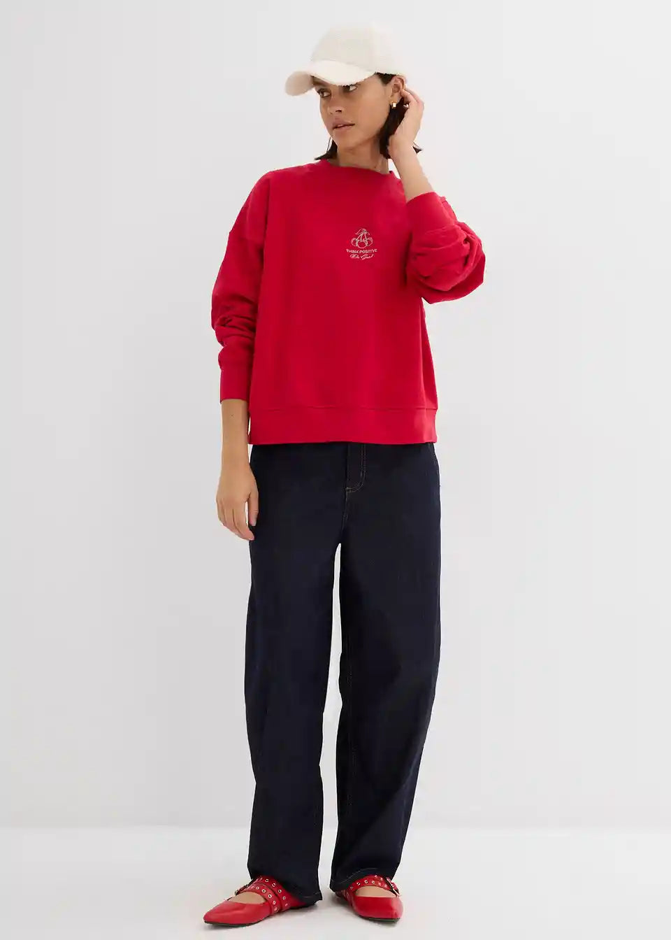 Ležeren oversize sweatshirt z vezenino in spuščenimi rameni