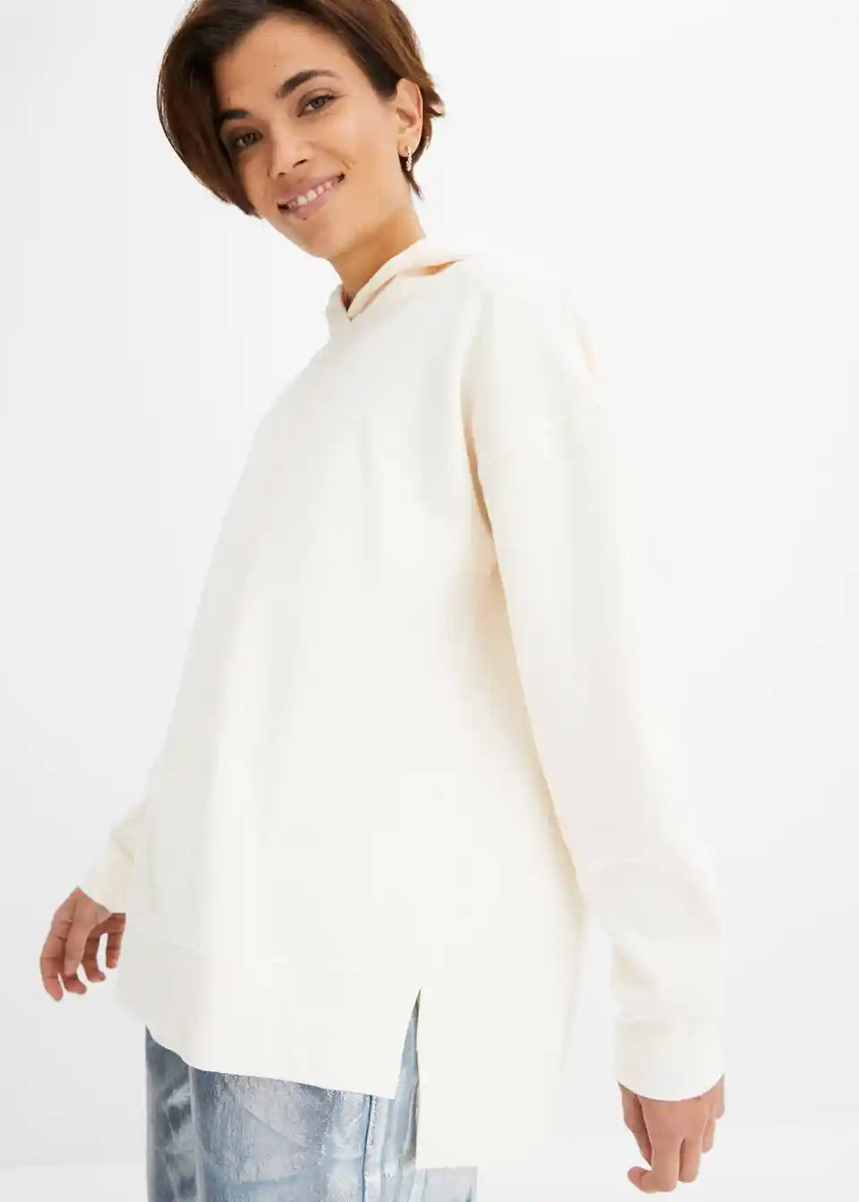 Preprosto oversize-sweatshirt z bočnimi razporki