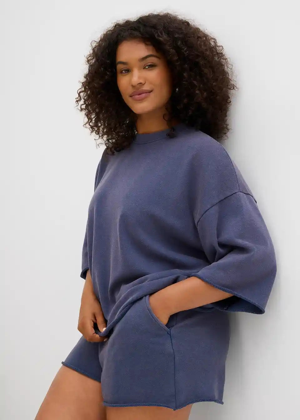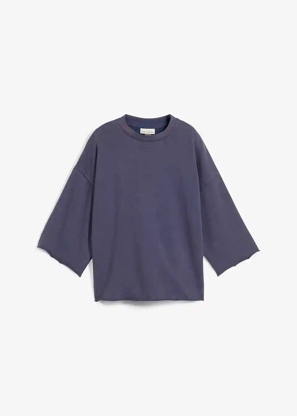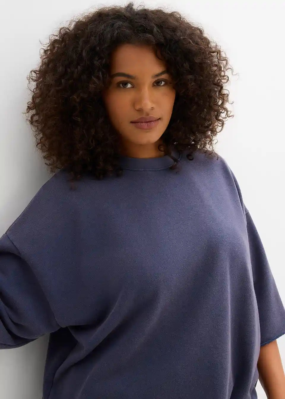 Trendovski oversize sweatshirt z opranim videzom in polovičnimi rokavi