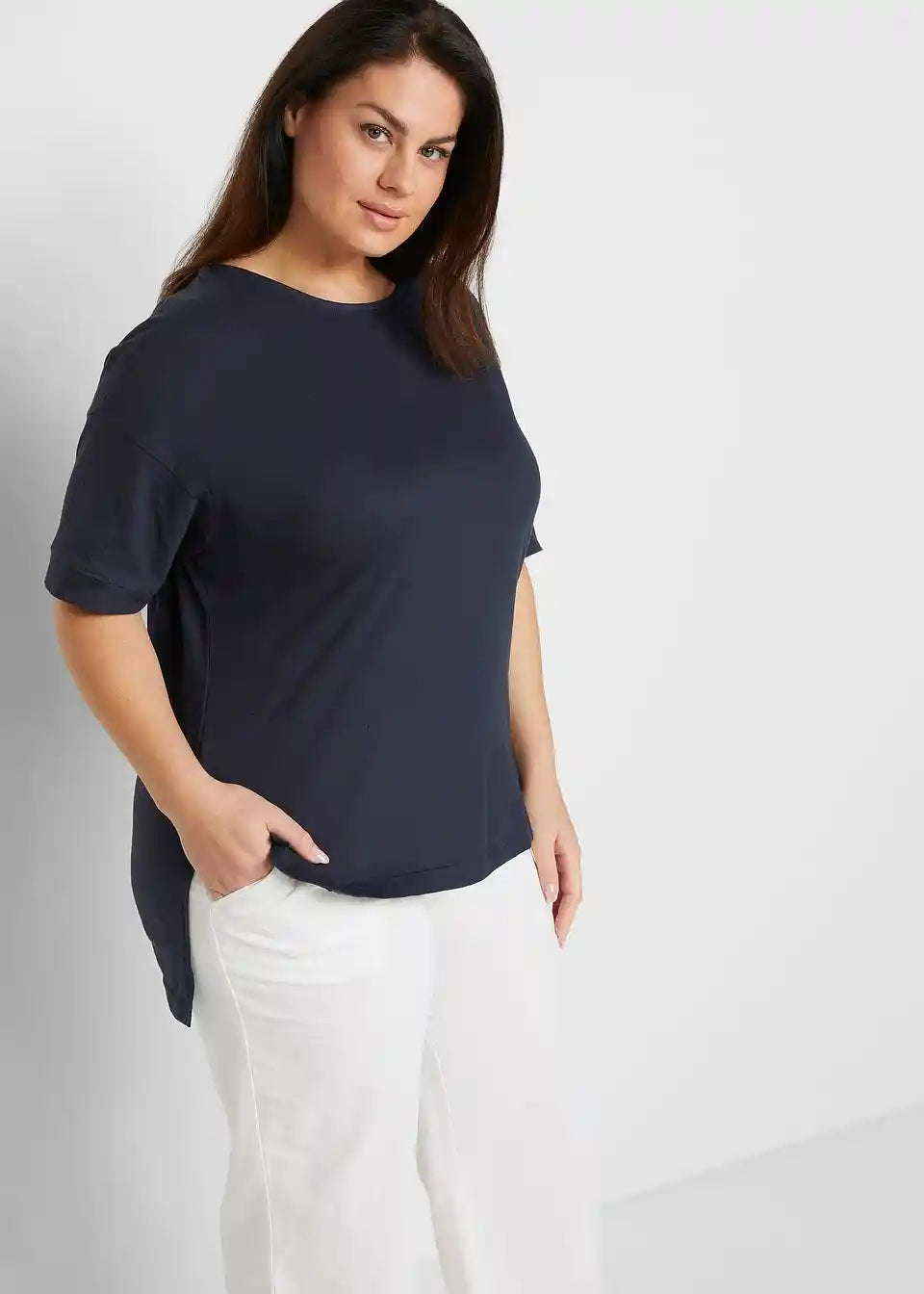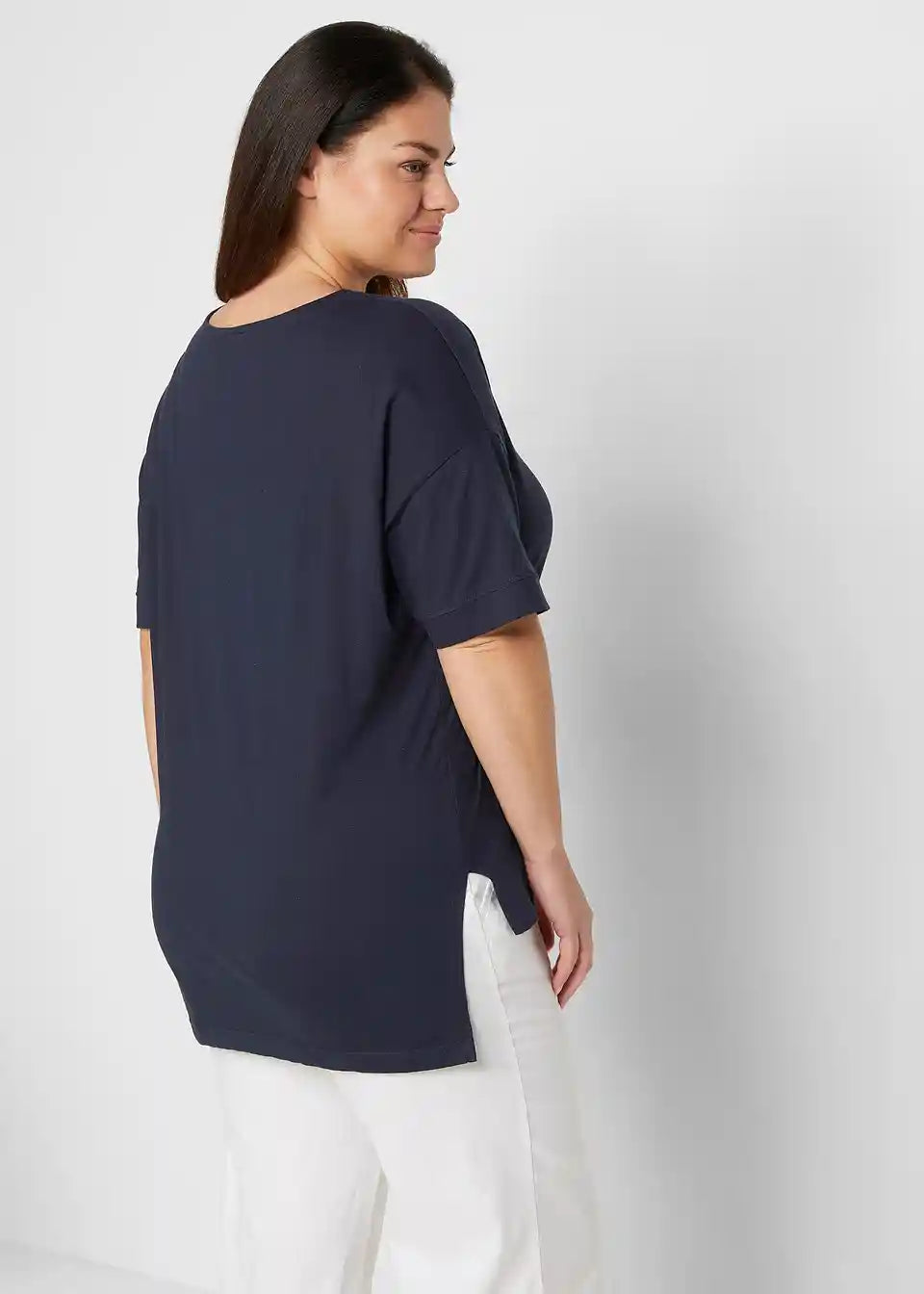 Privlačna majica s stranskimi razporki in udobnim Oversize krojem iz organskega bombaža
