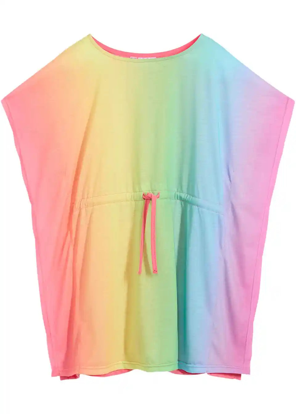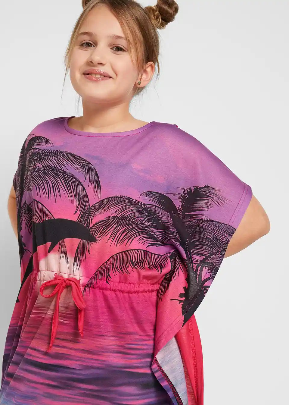 Tunika za deklice z všitimi rokavi za plažo in številne druge priložnosti. Iz mehko padajočega materiala, s čudovitim potiskom in zelo sproščeno obliko - praktična in hkrati elegantna.