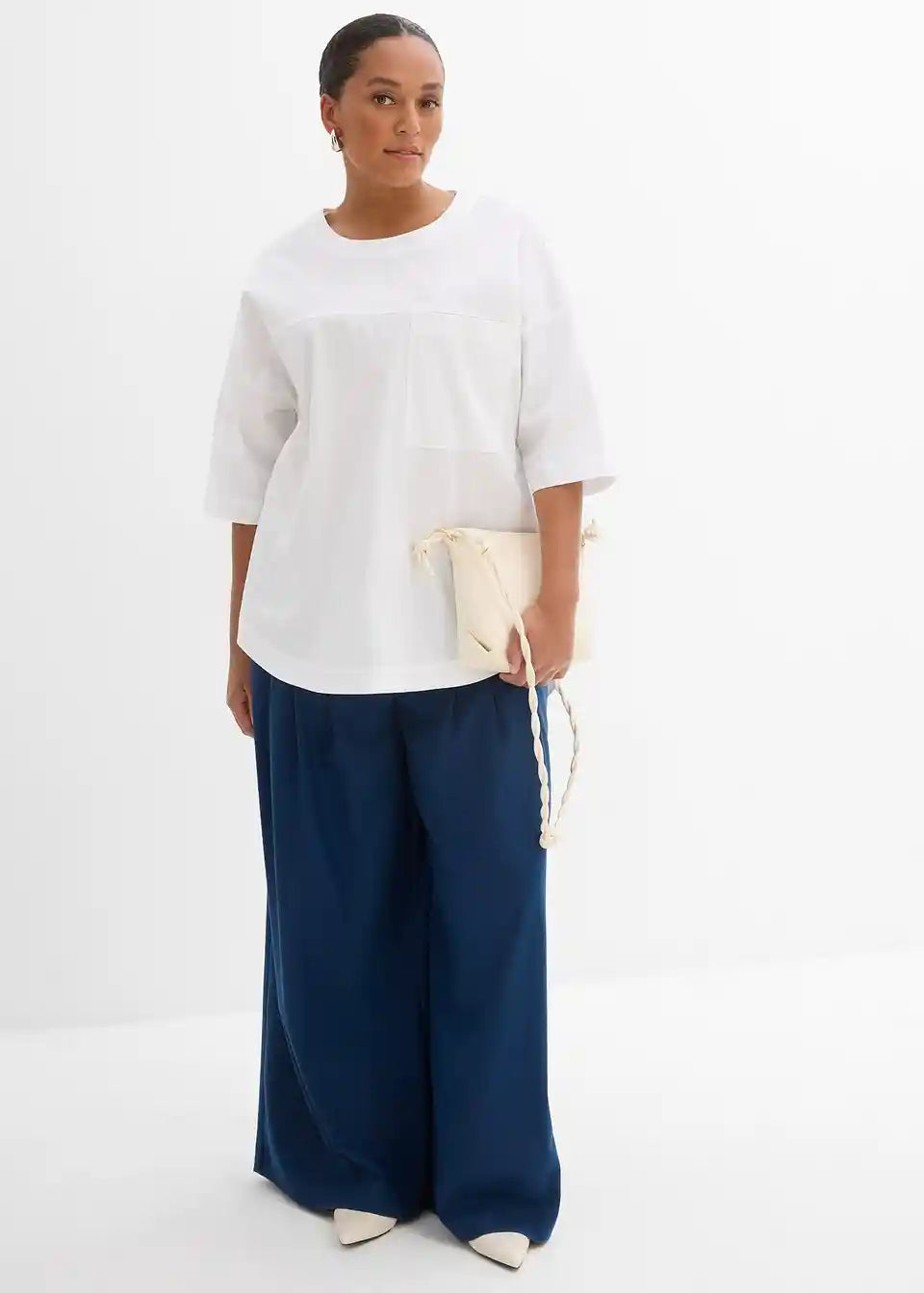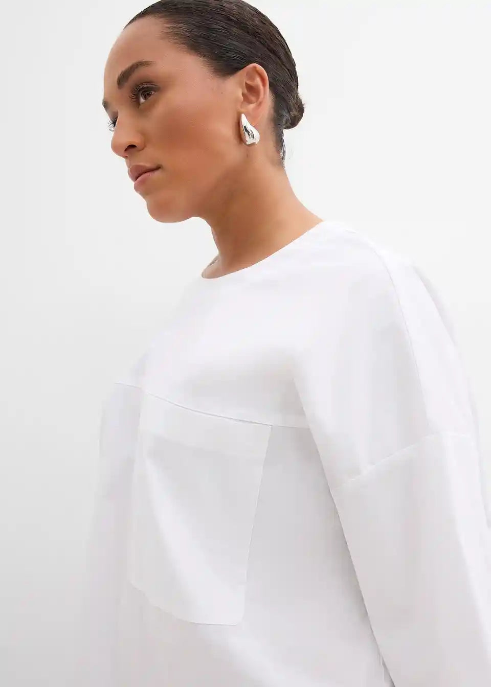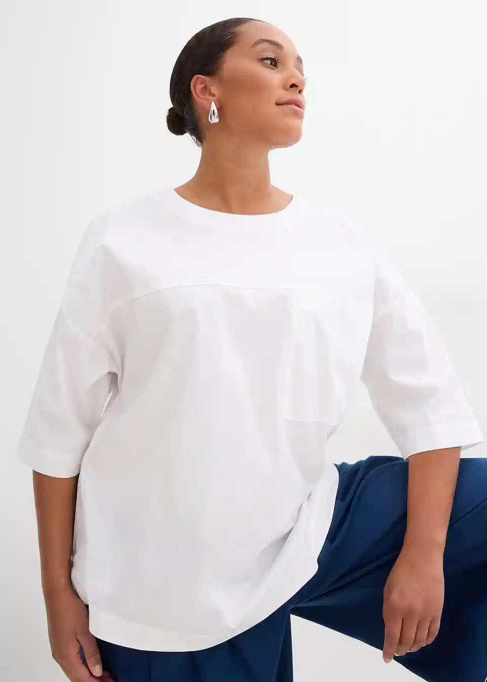 T-Shirt v Oversized kroju z enim prsnim žepom in odprtino v obliki ključavnice z gumbom na zatilju