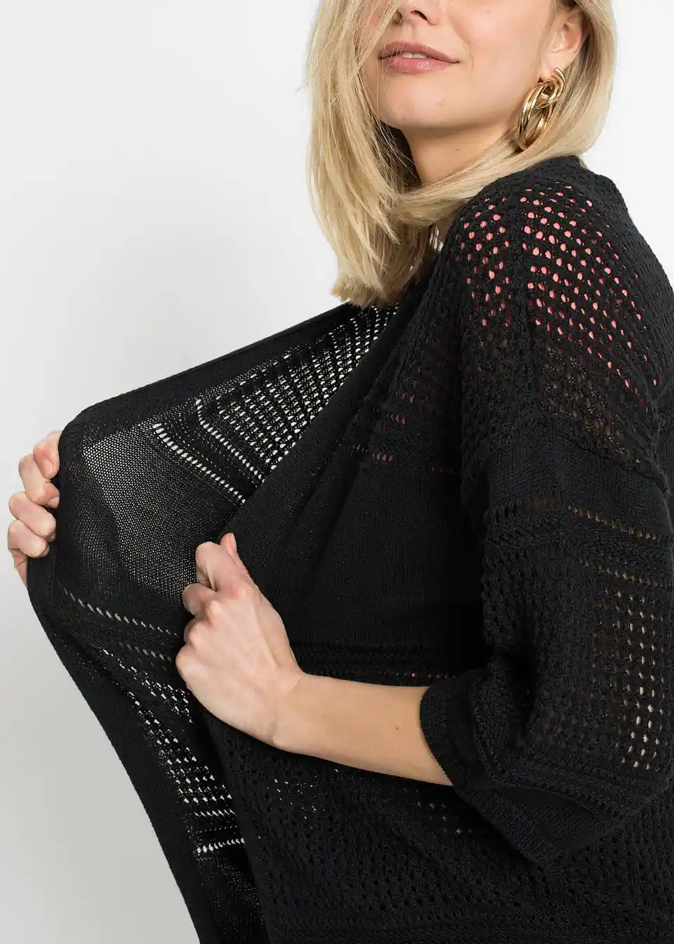Ohlapna pletena jopa z ažurnim vzorcem