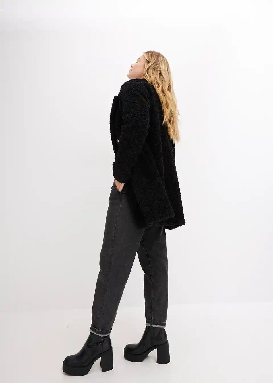 Ohlapen kratek plašč v volnenem videzu
