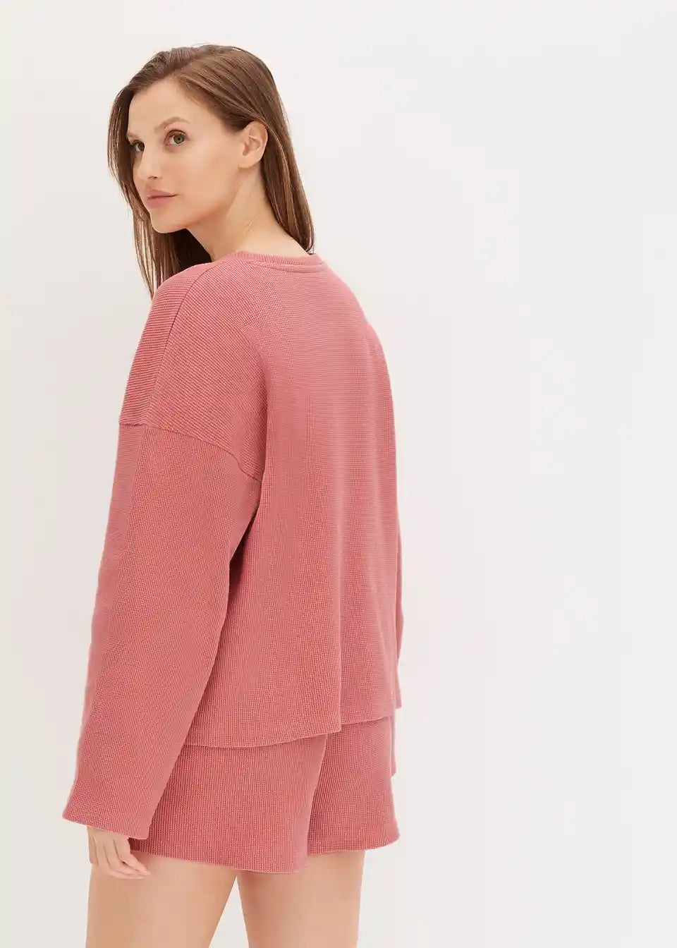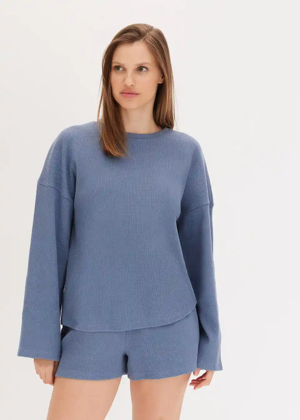 Ohlapno udobno oblačilo za doma s kratkimi hlačami iz vafljastega jerseyja