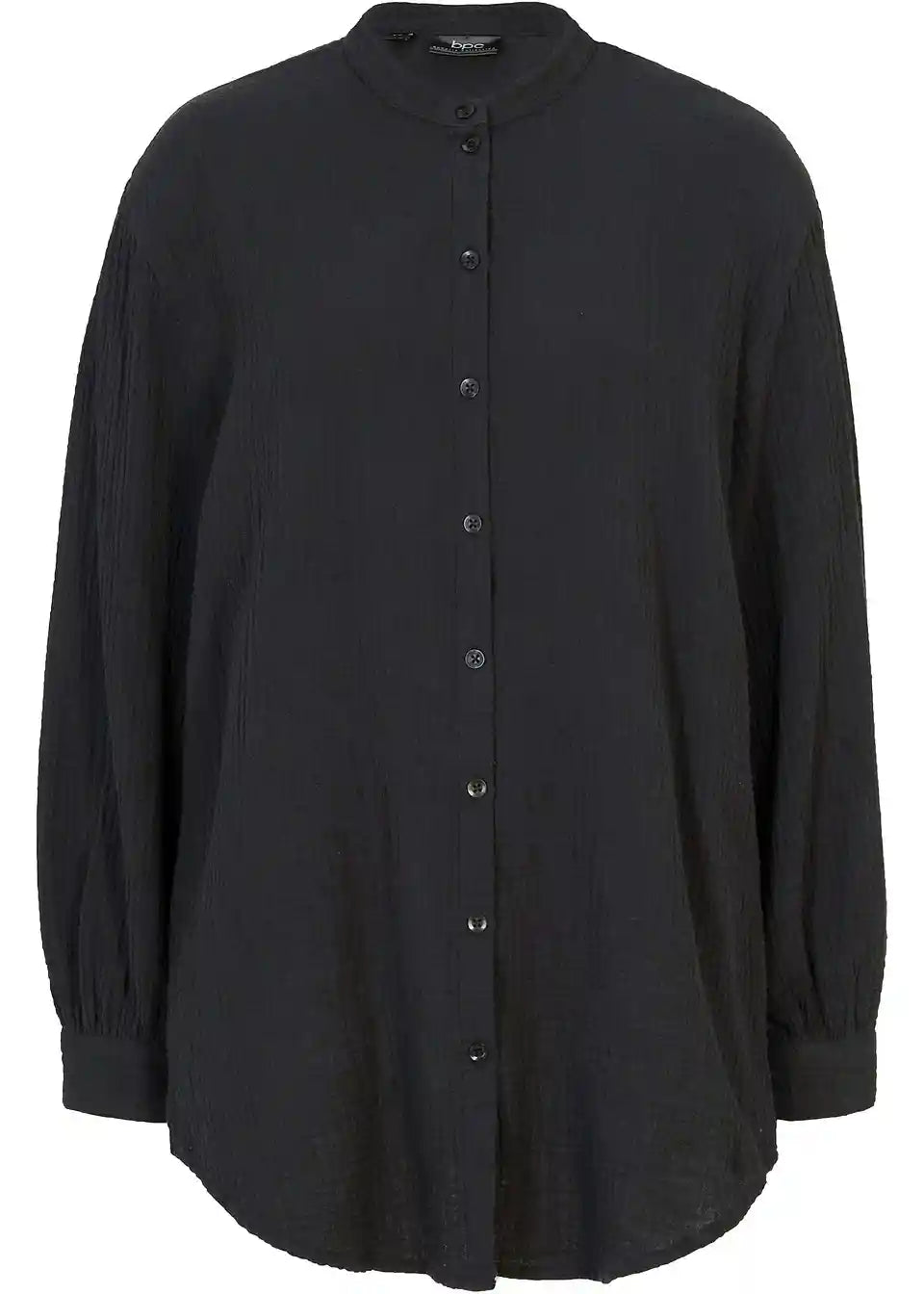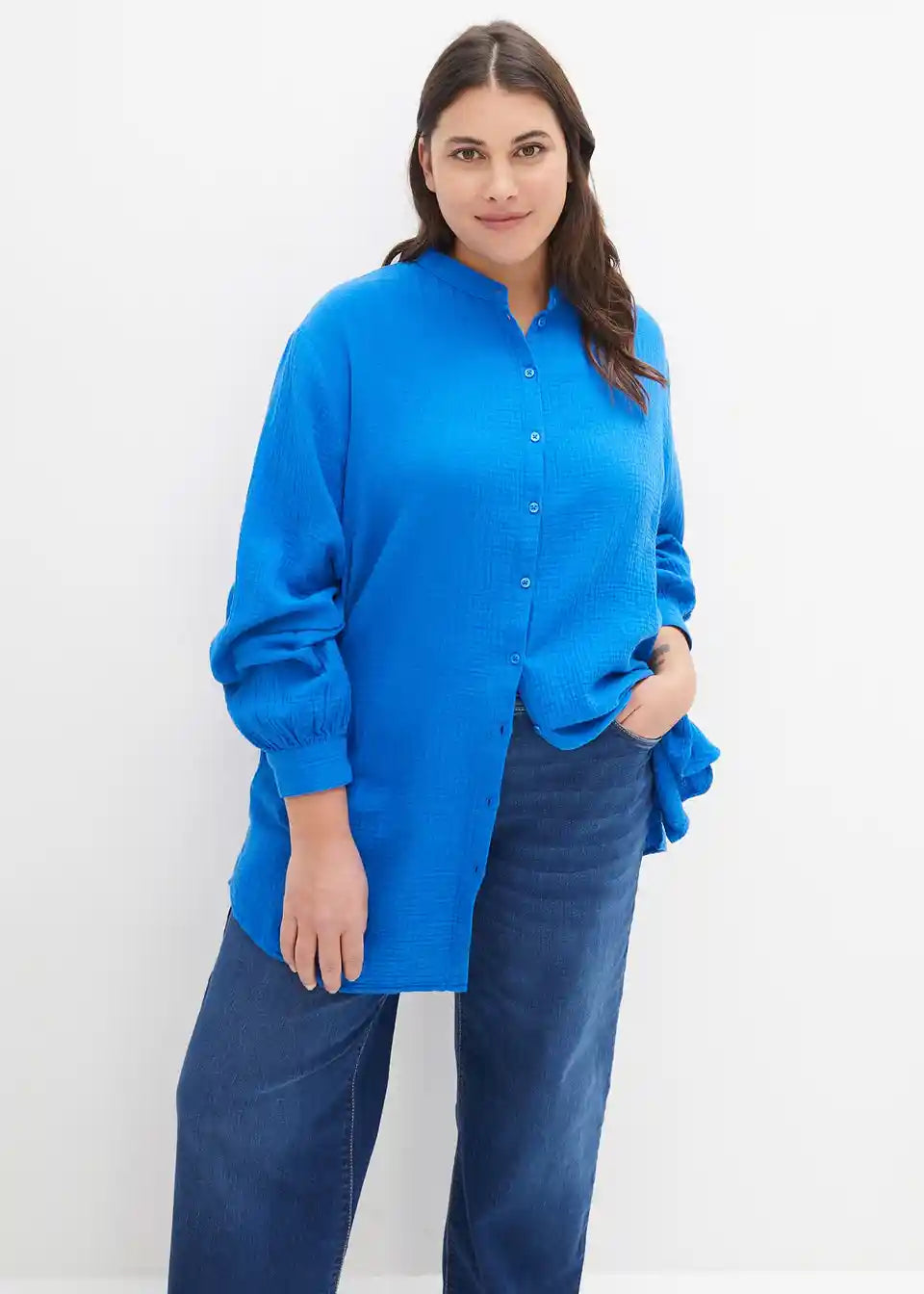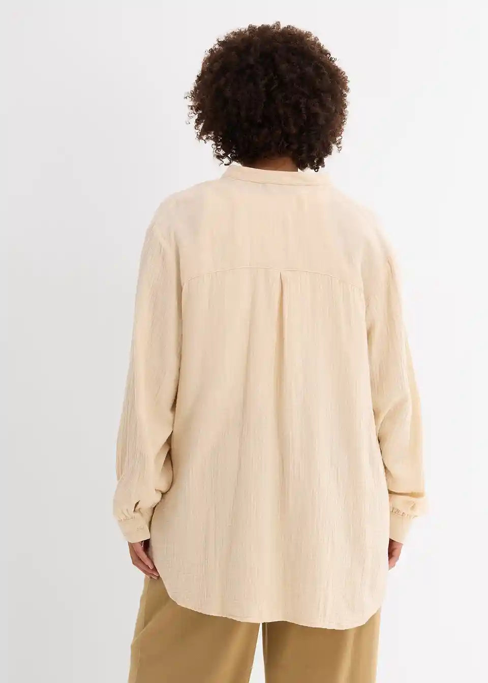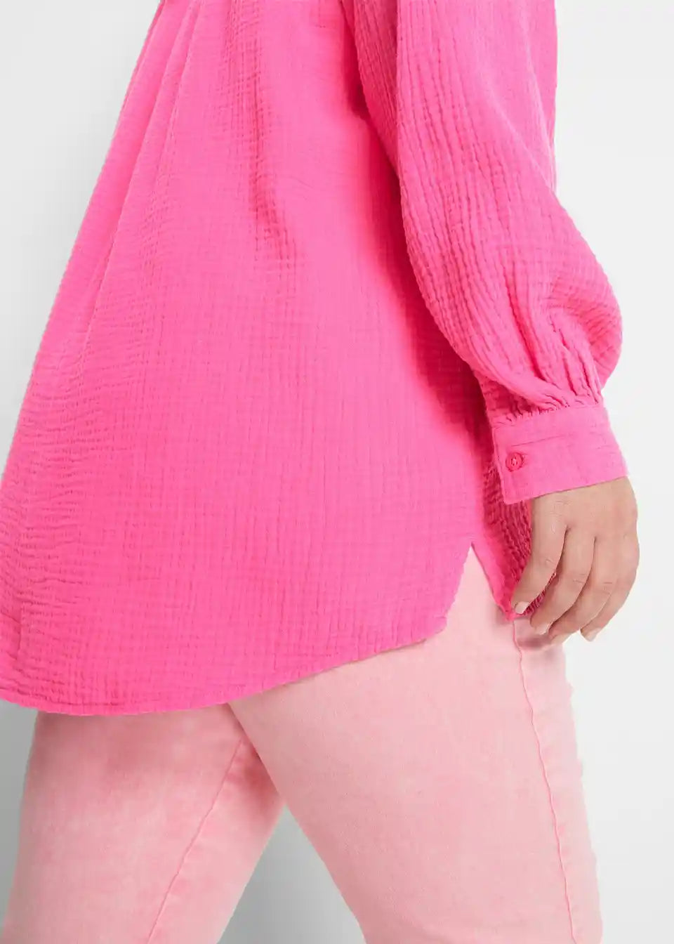 Ohlapna dolga bluza iz bombažnega muslina s stranskimi razporki