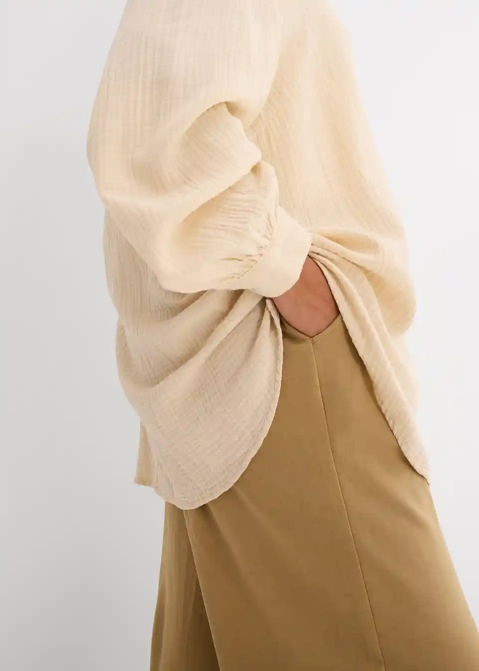 Sproščena Oversized Musselin-bluza s stranskimi razporki