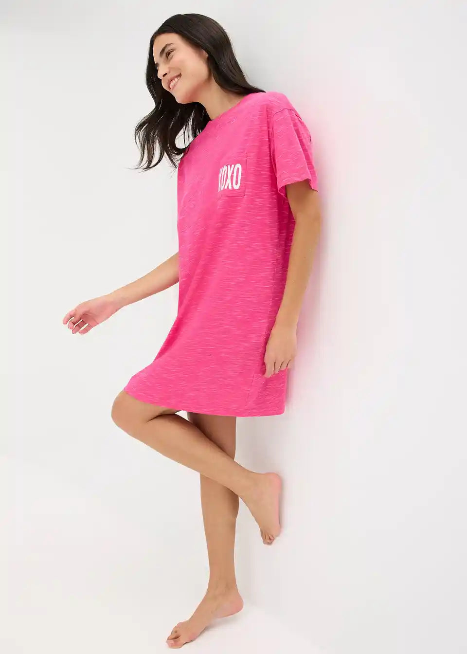 Udobna oversized nočna srajca z lepim potiskom na prsnem žepu