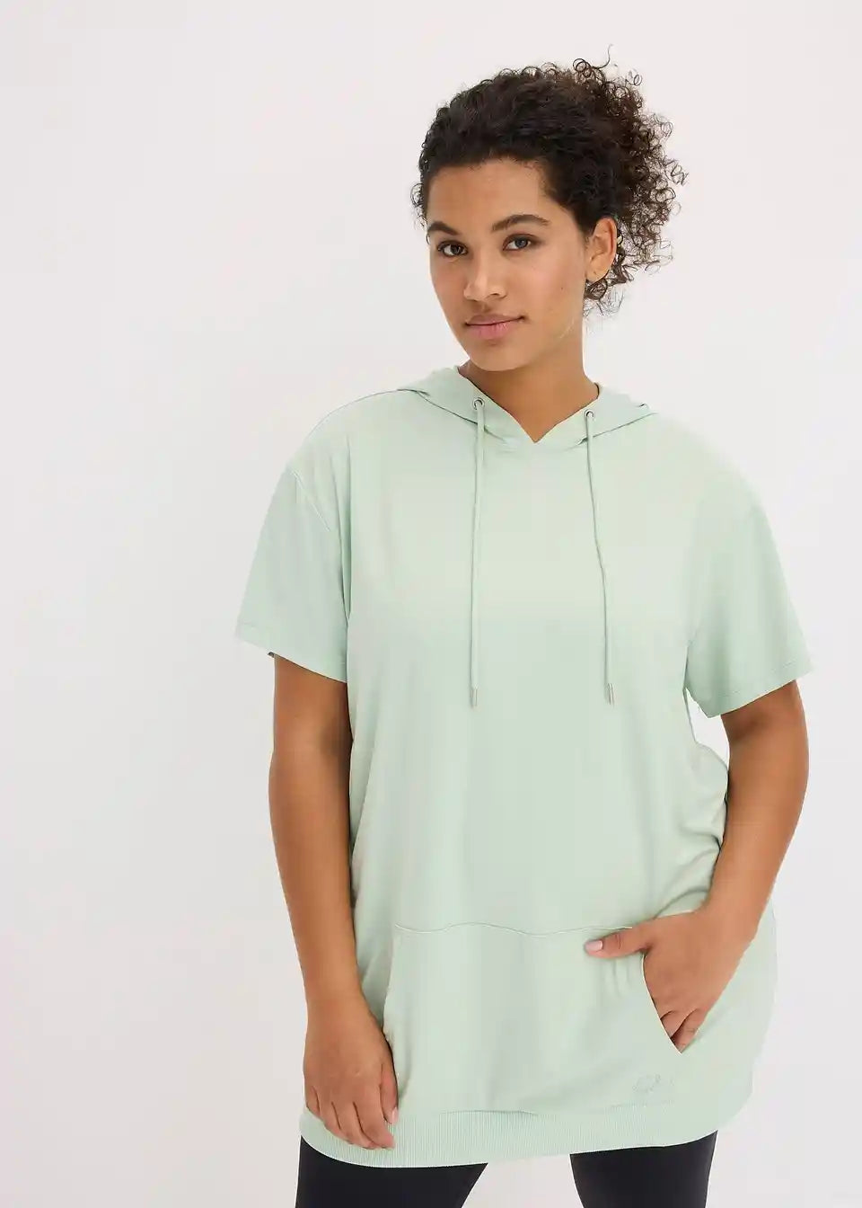 Ohlapna športna majica s kapuco iz hitro sušečega materiala