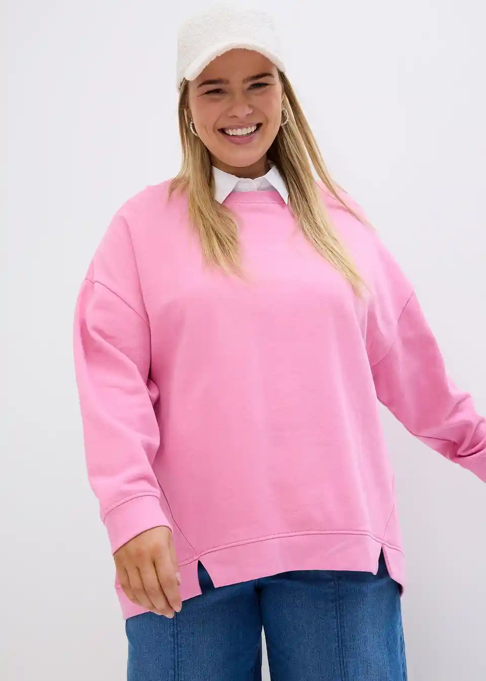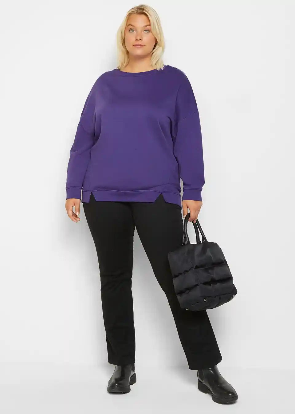 Ohlapna majica iz trikoja z majhnimi razporki na spodnjem robu