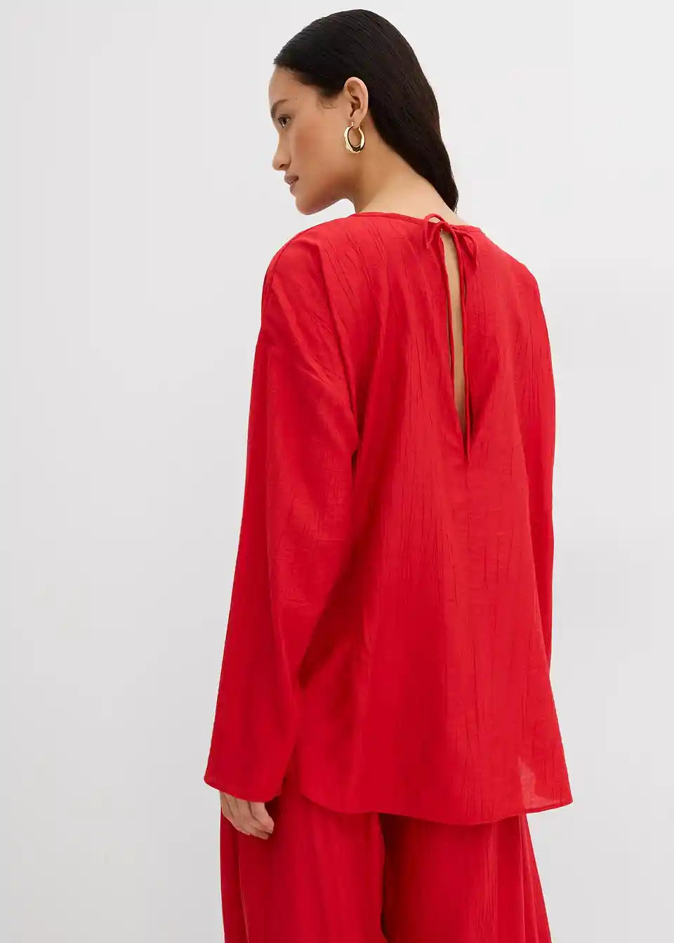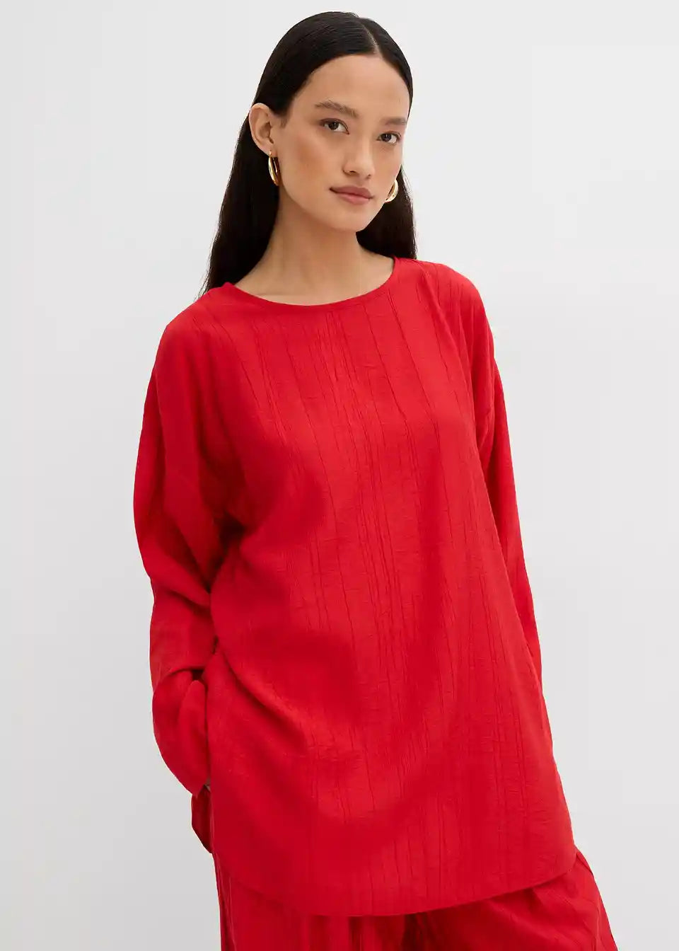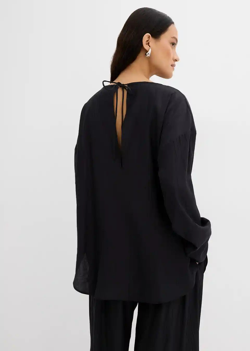 Ohlapna bluzna tunika iz strukturirane mečkanke z deležem viskoze