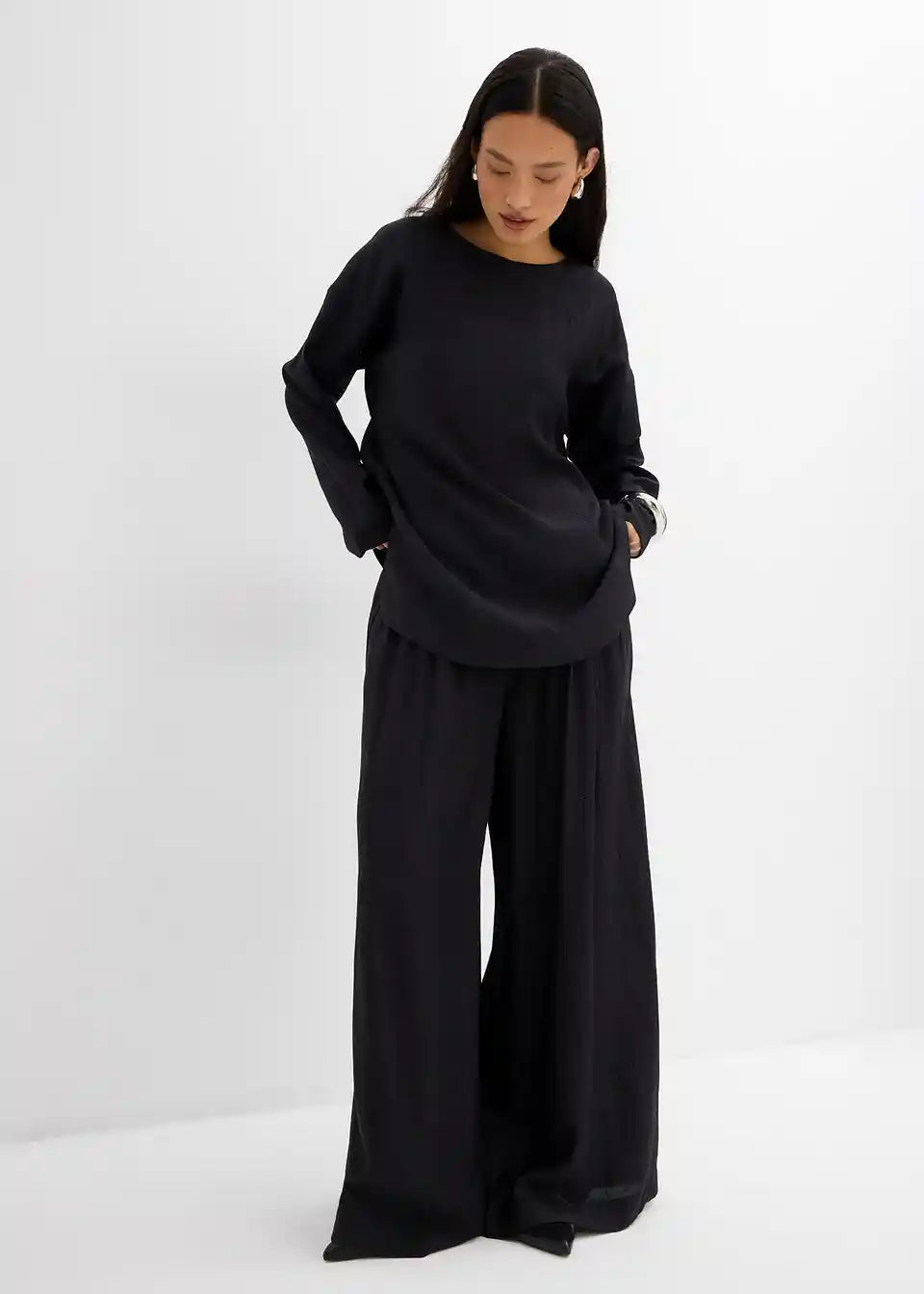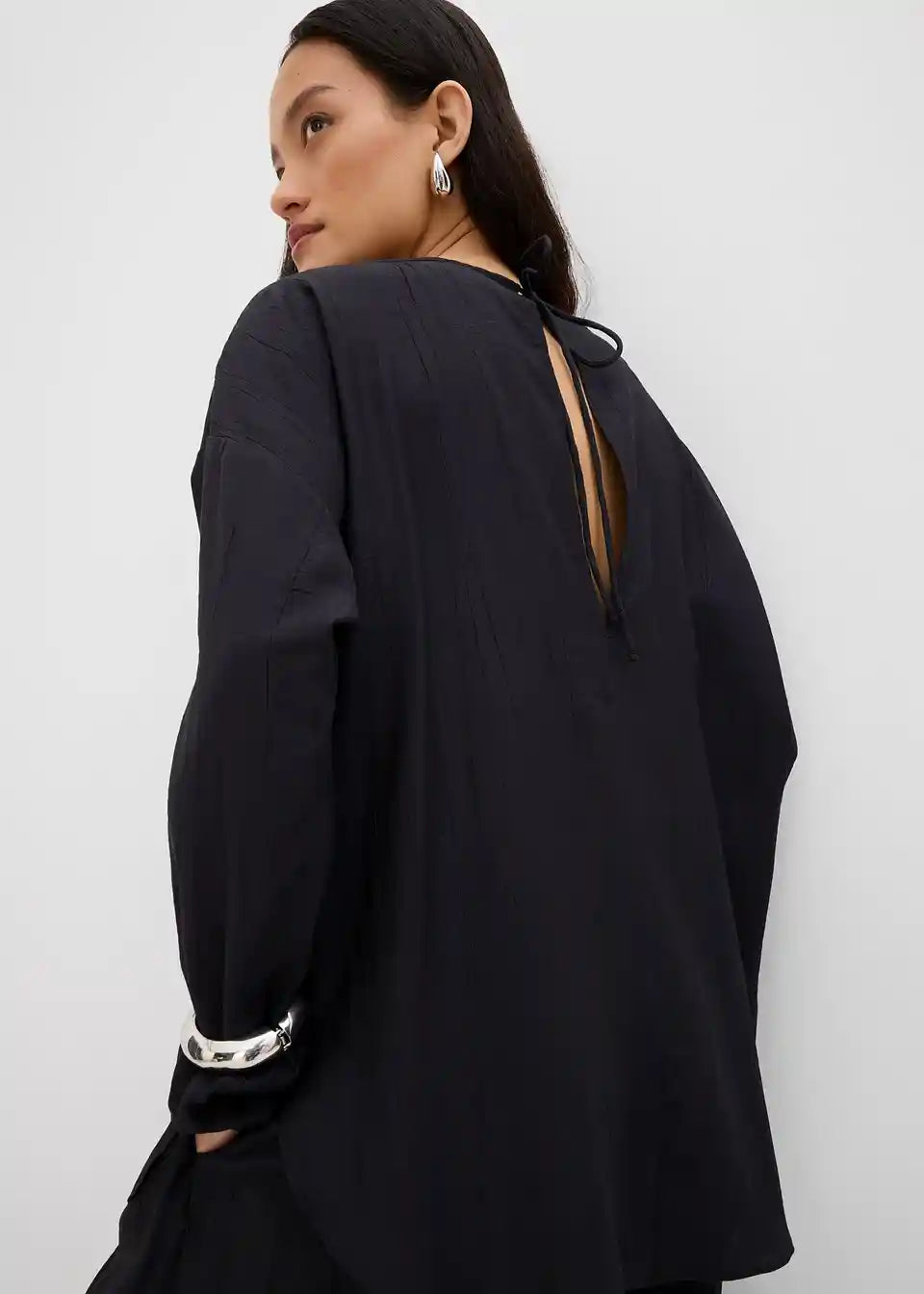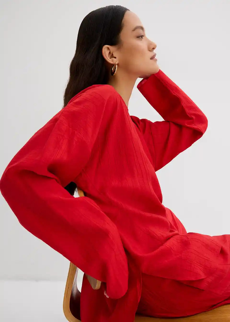 Ohlapna bluzna tunika iz strukturirane mečkanke z deležem viskoze
