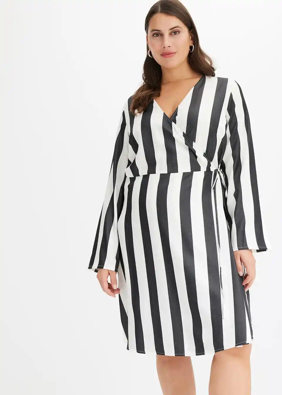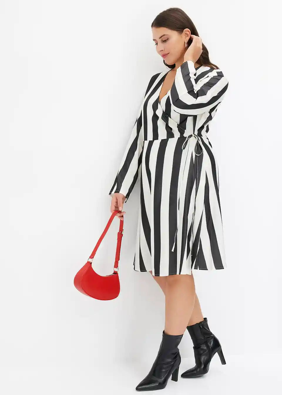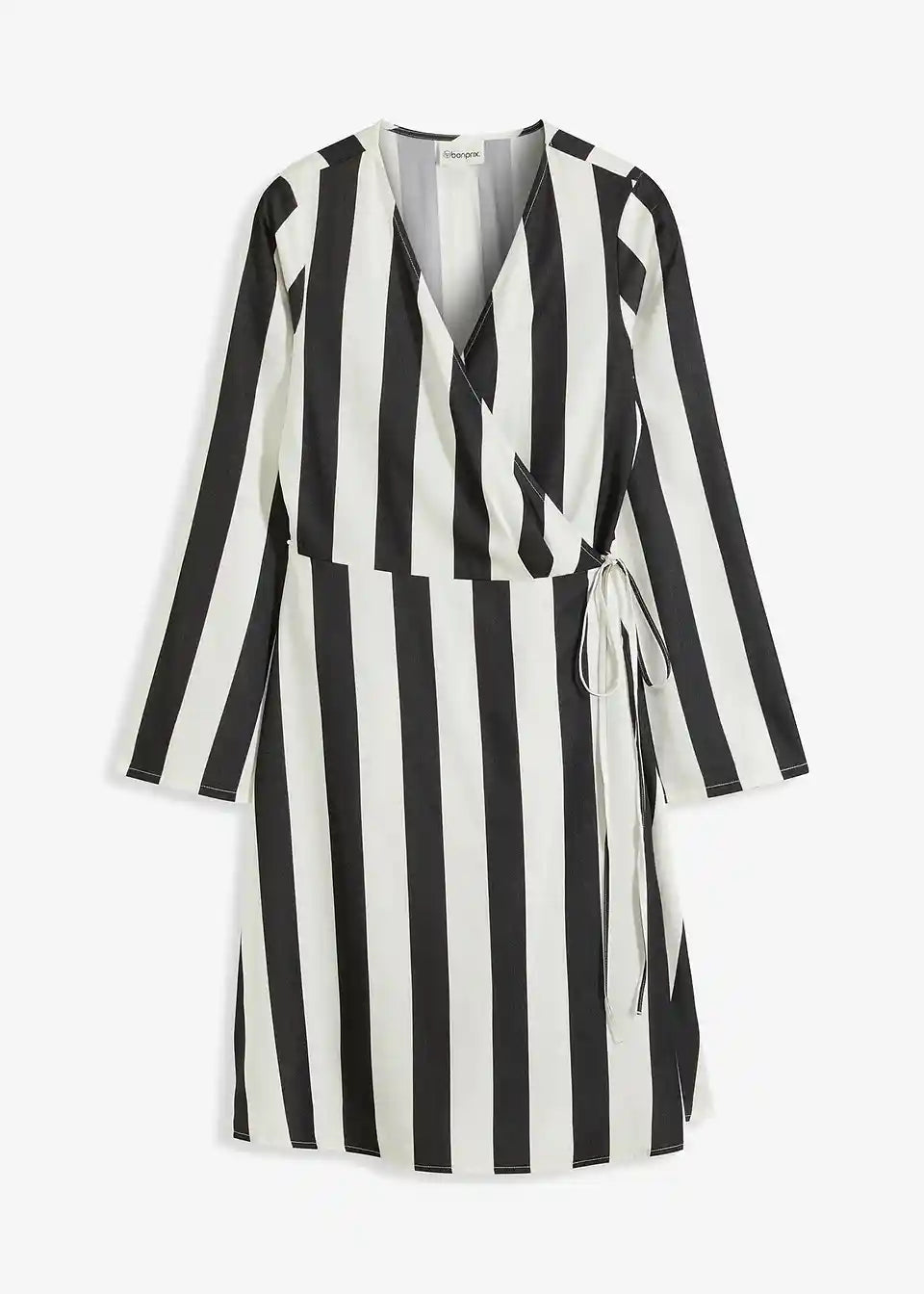 Čudovita obleka s črtami, V-izrezom in ovijalkastim krojem