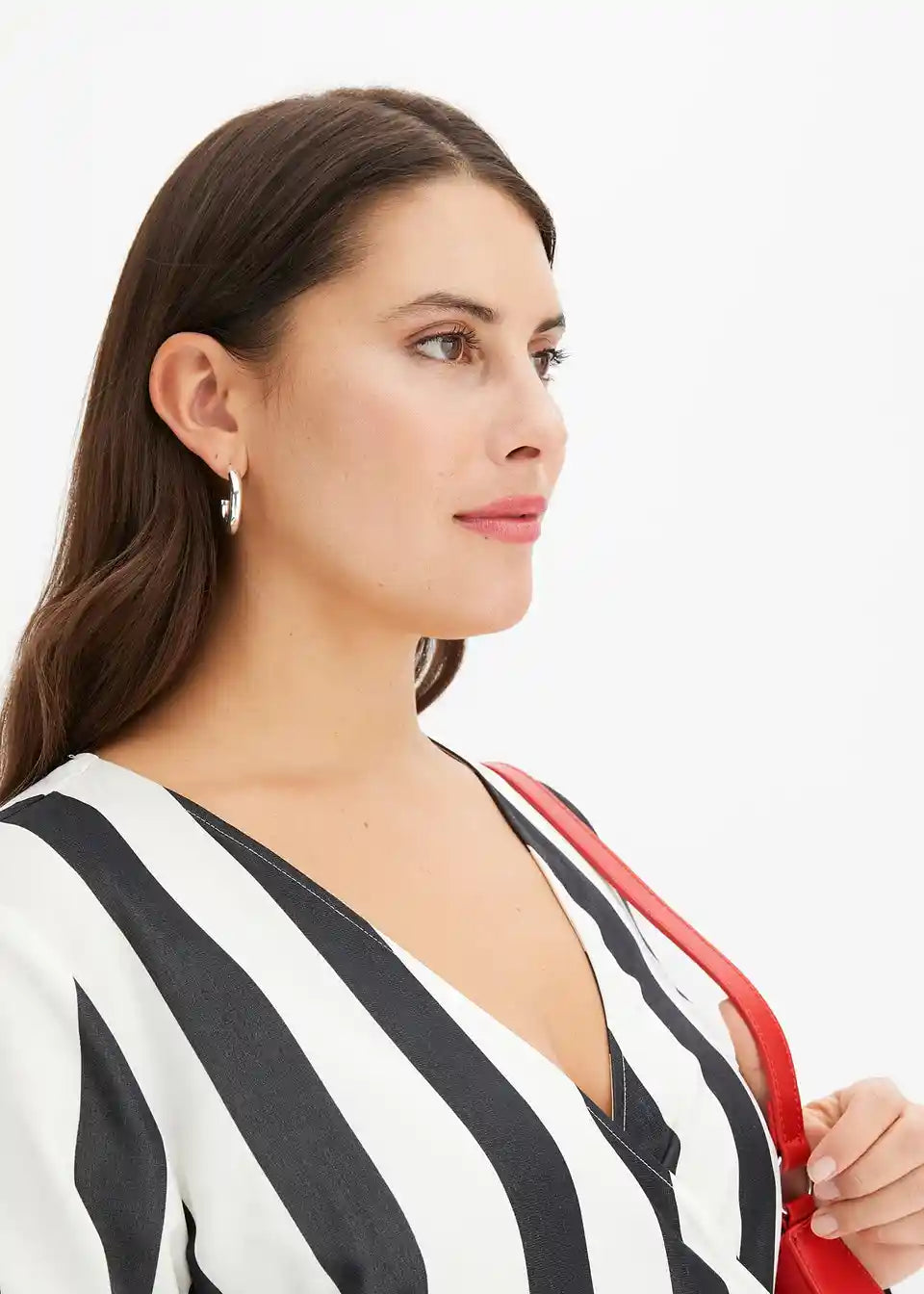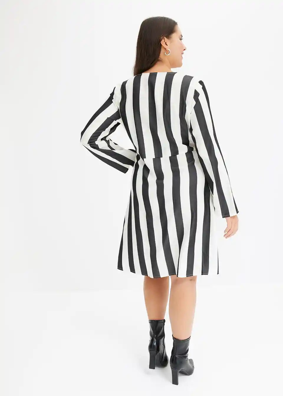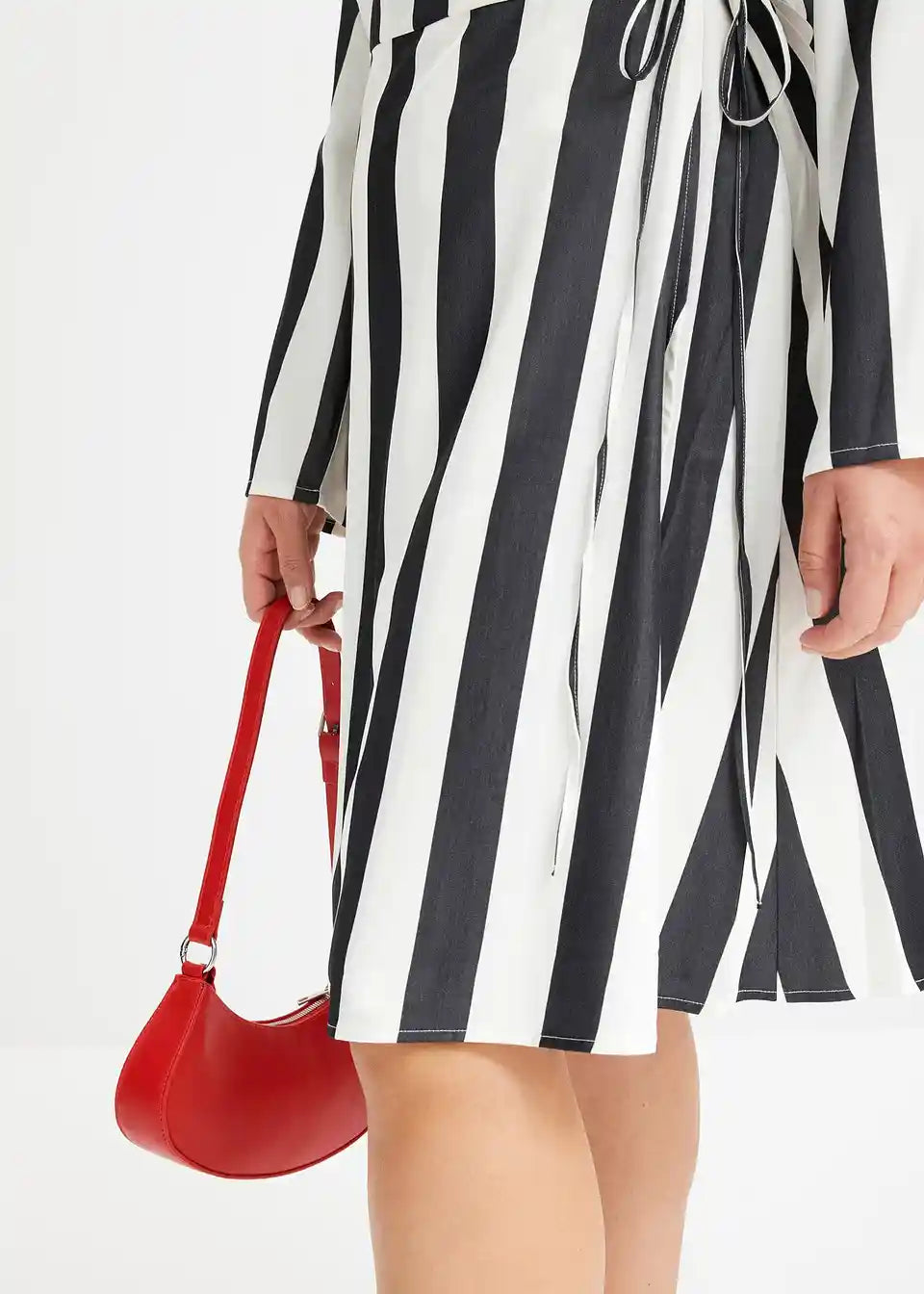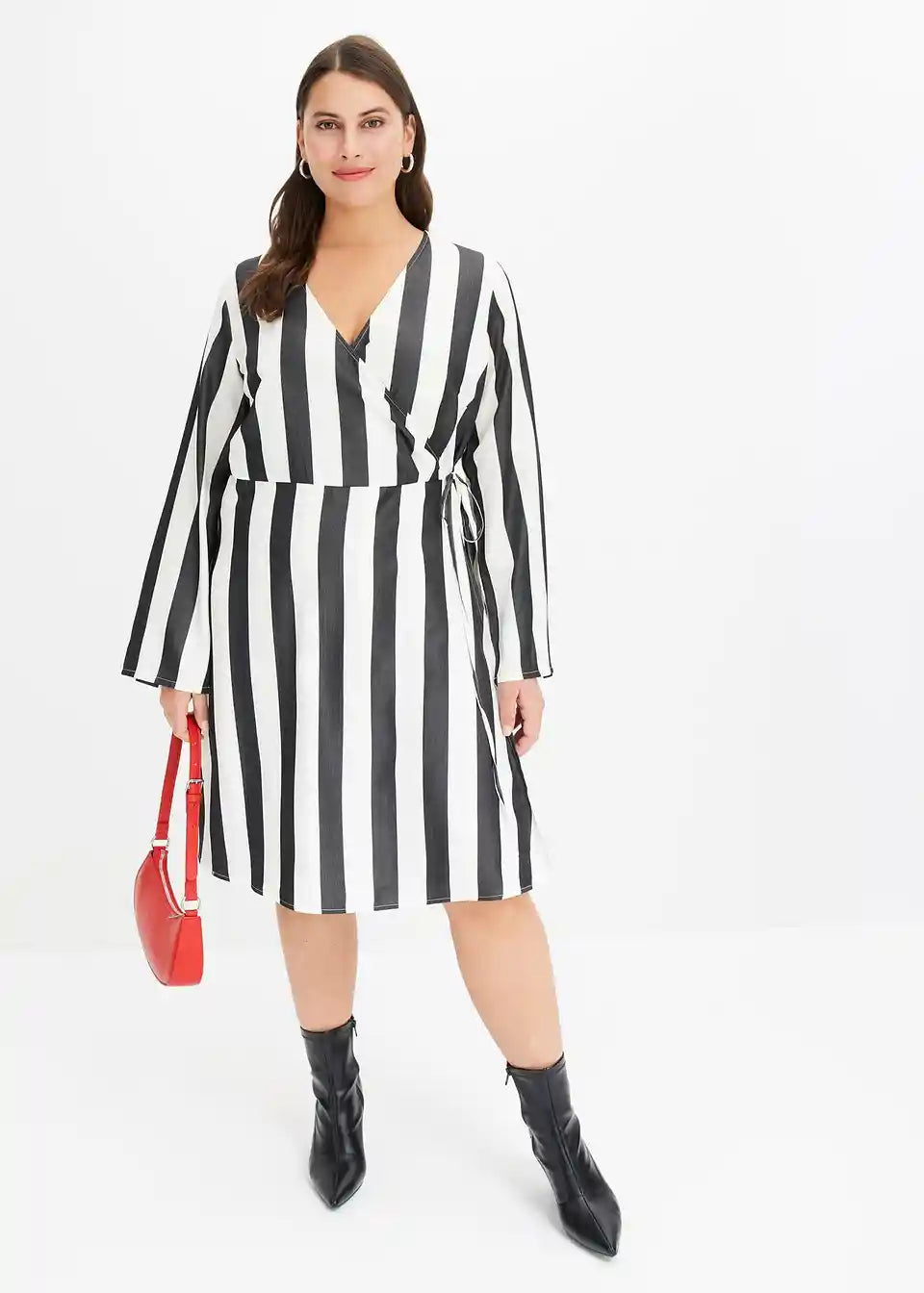 Čudovita obleka s črtami, V-izrezom in ovijalkastim krojem