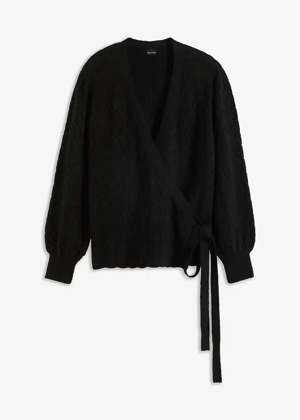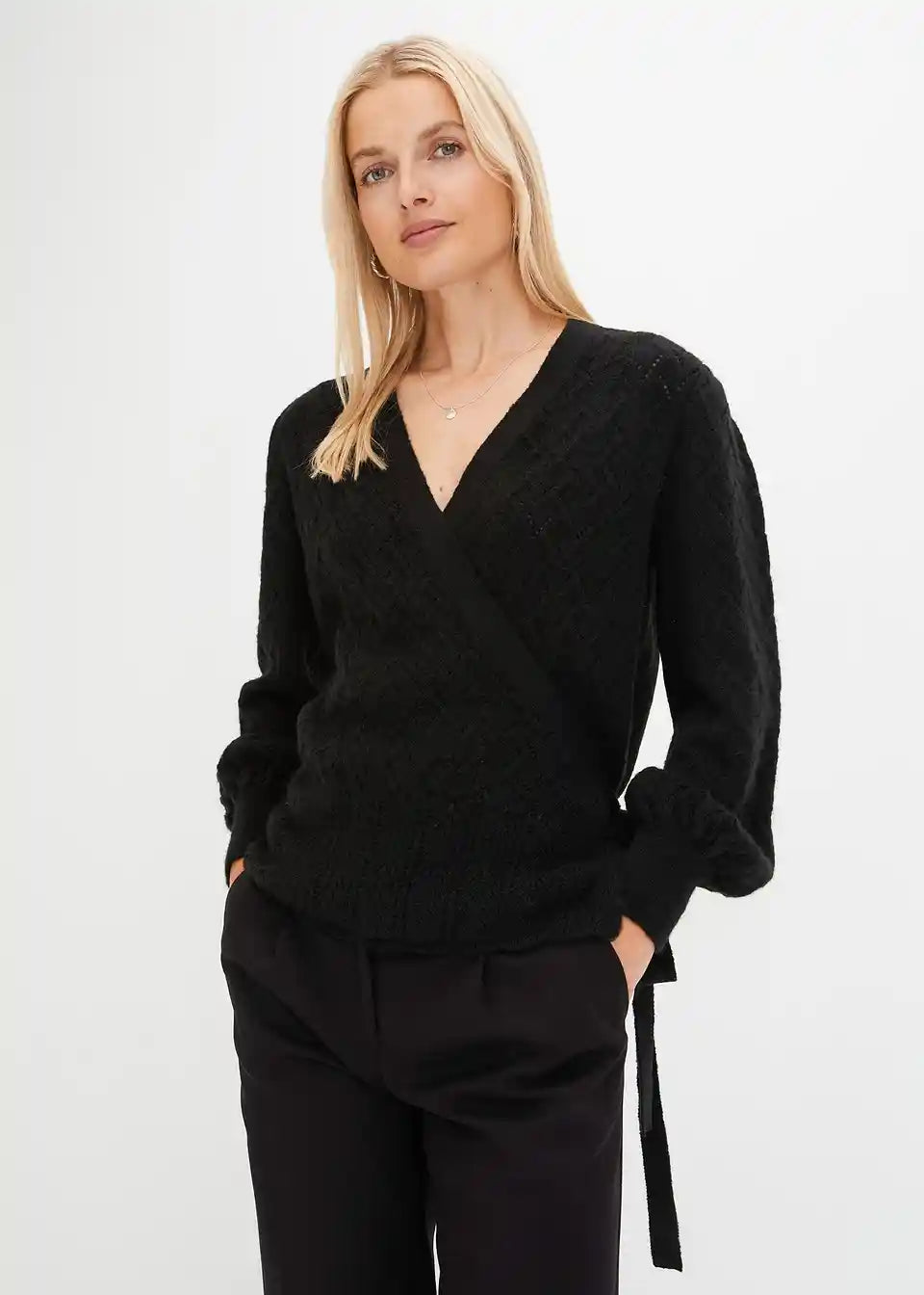 Čudovit ovijalni pulover s pasom in napihnjenimi rokavi.