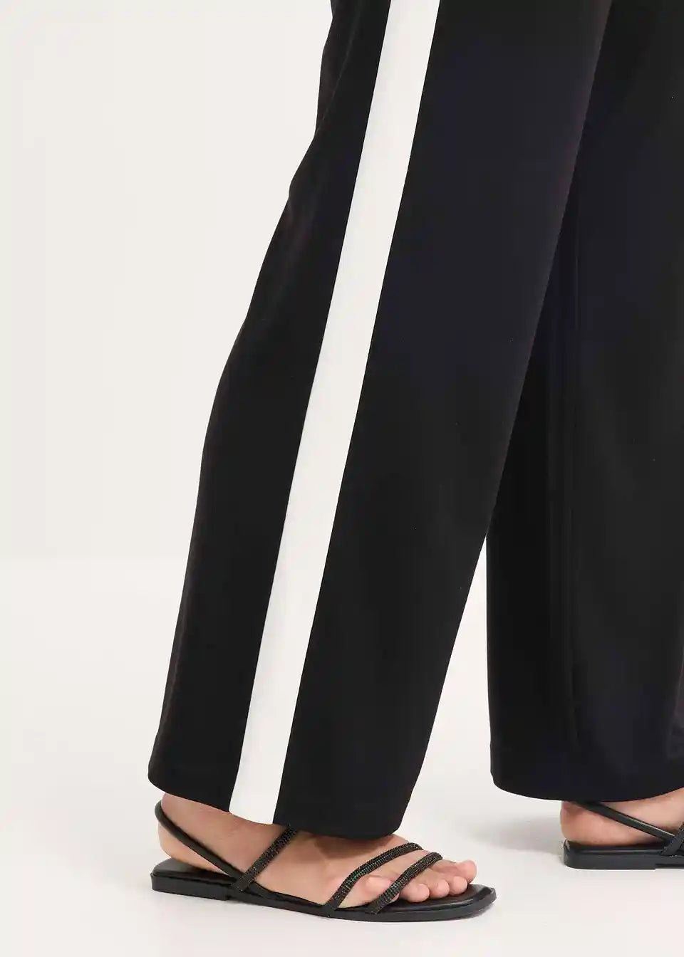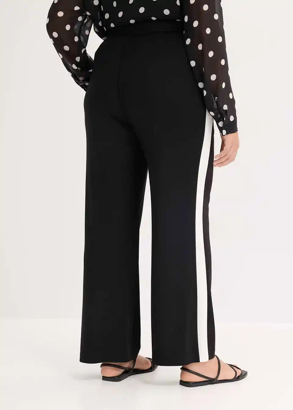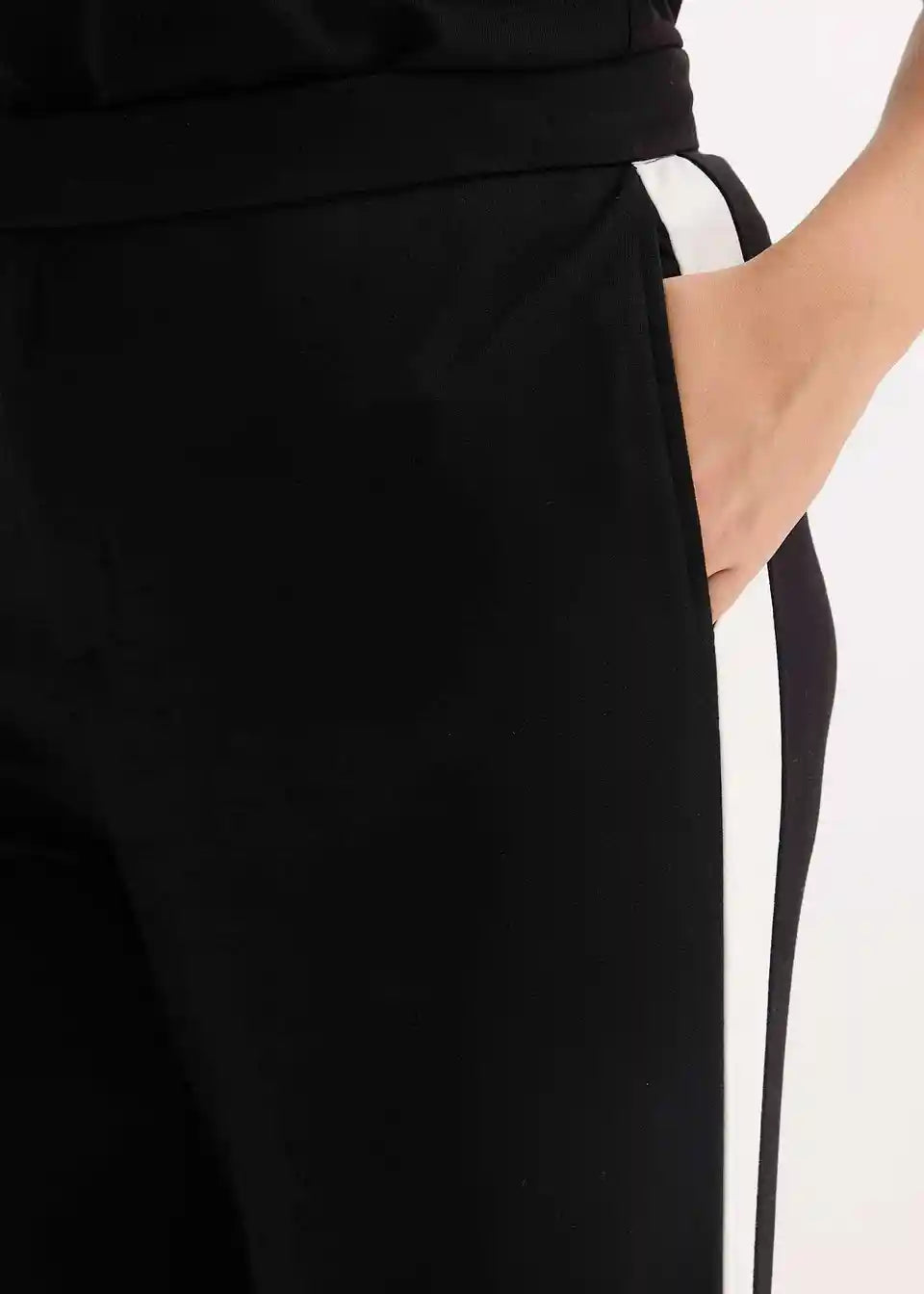moderne Punto palazzo hlače s kavljičnim in zankastim zapenjanjem spredaj ter dekorativnim trakom ob strani