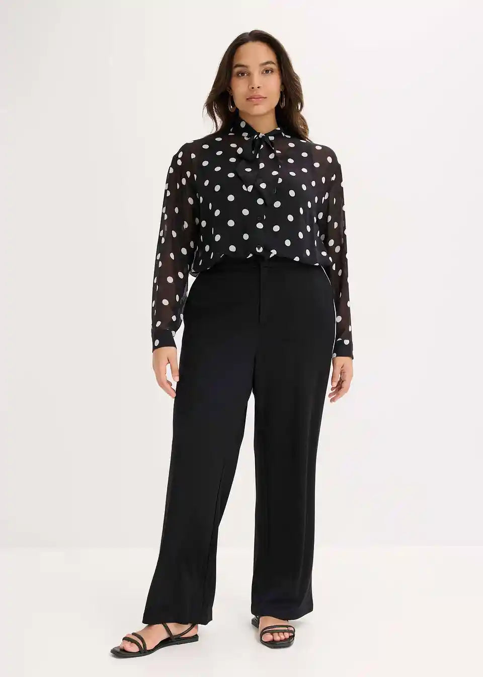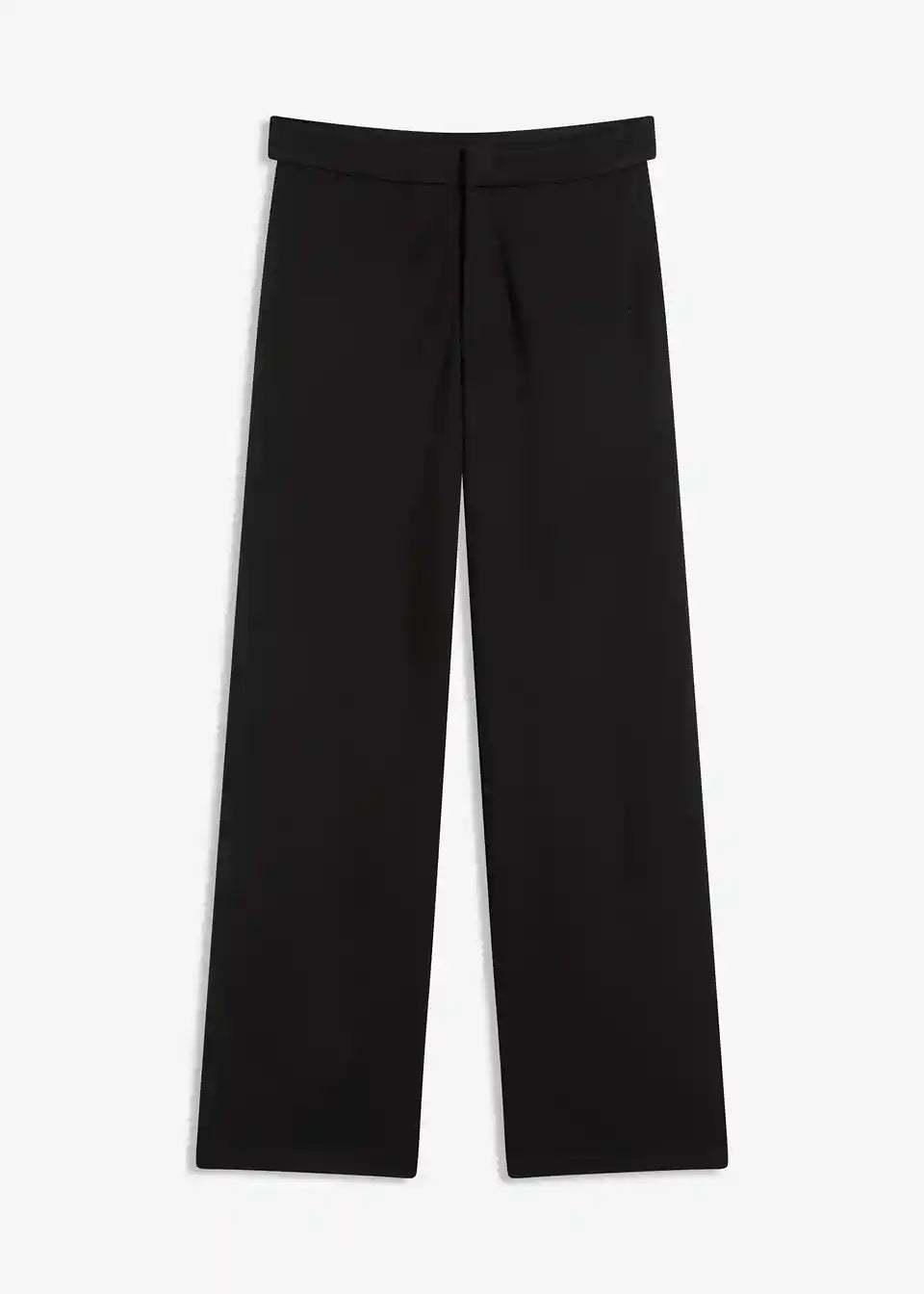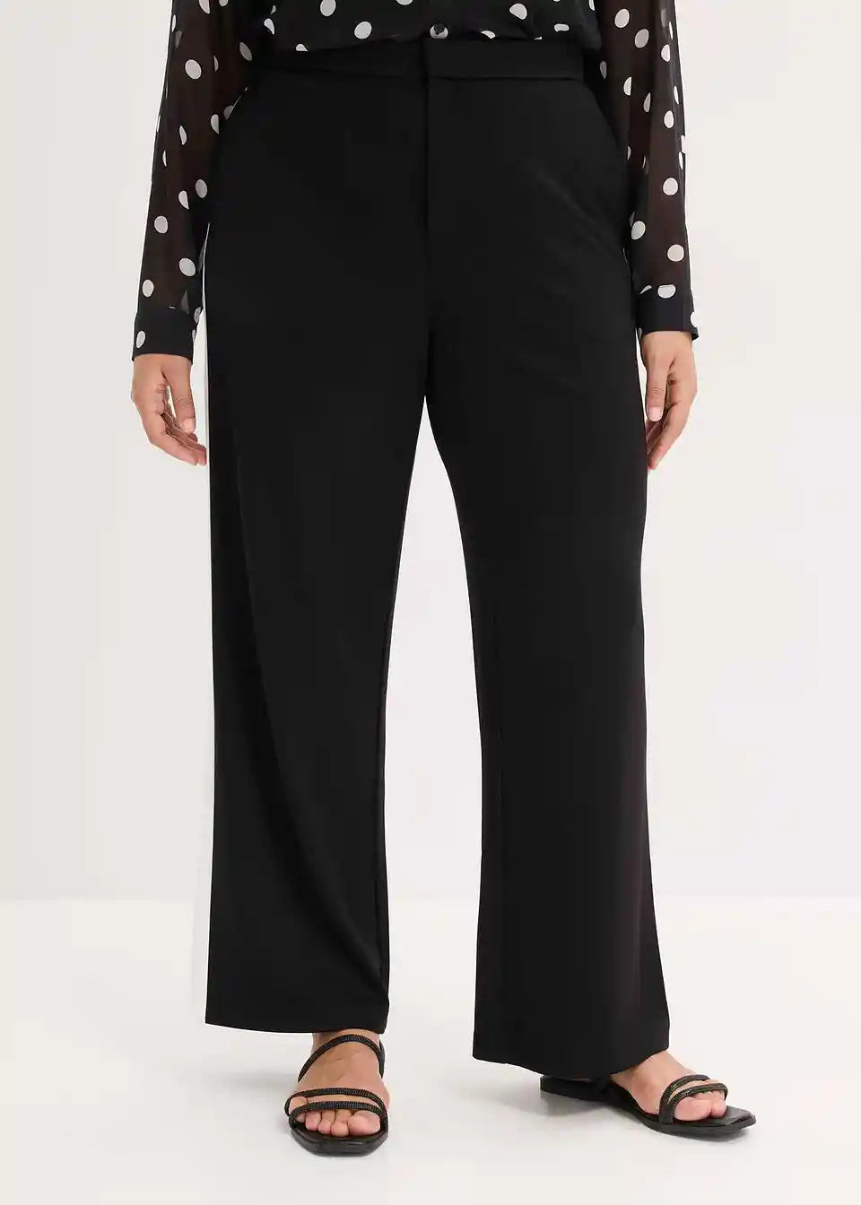 moderne Punto palazzo hlače s kavljičnim in zankastim zapenjanjem spredaj ter dekorativnim trakom ob strani