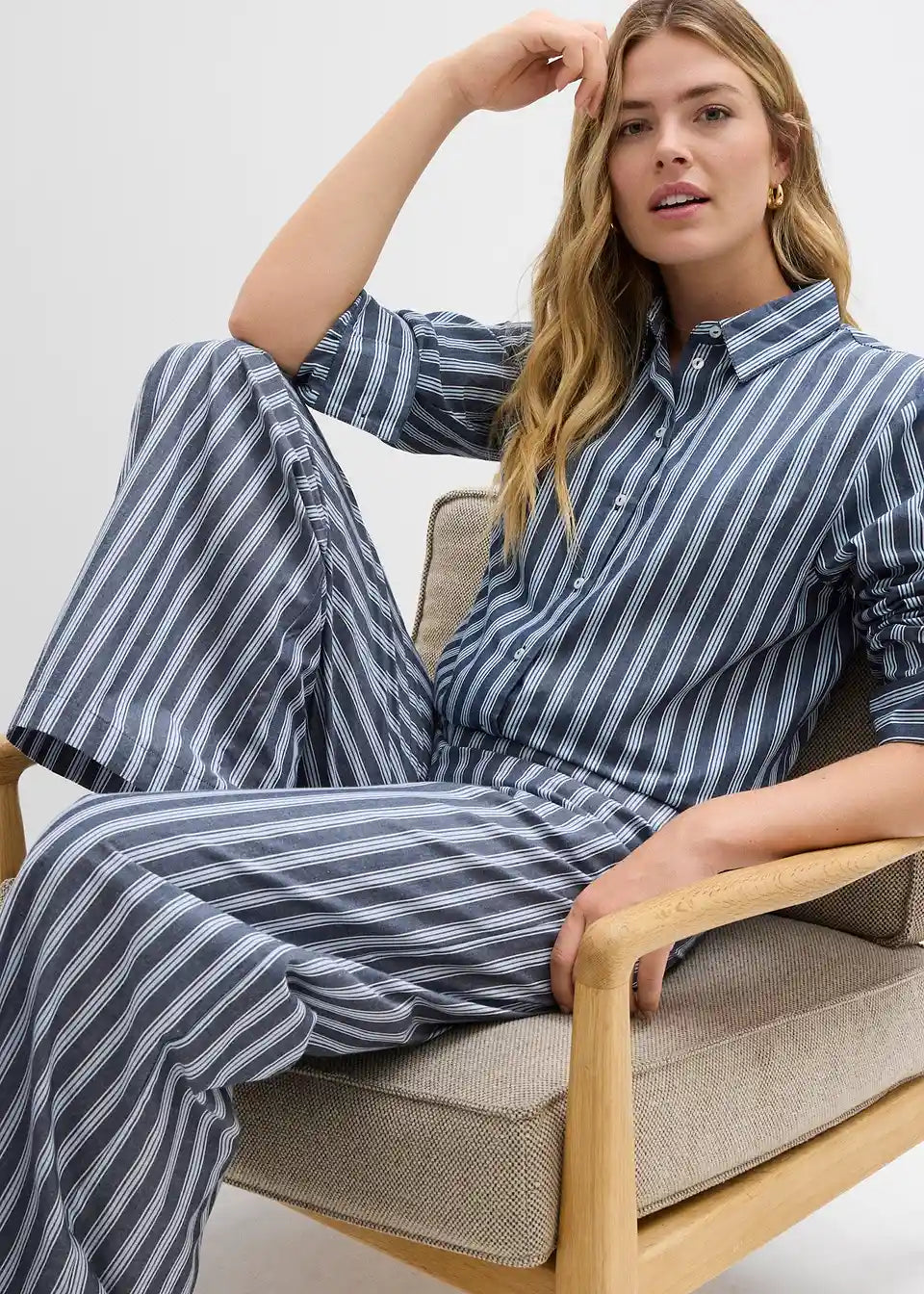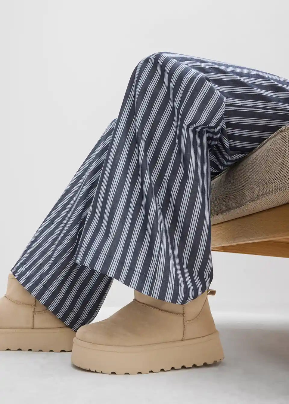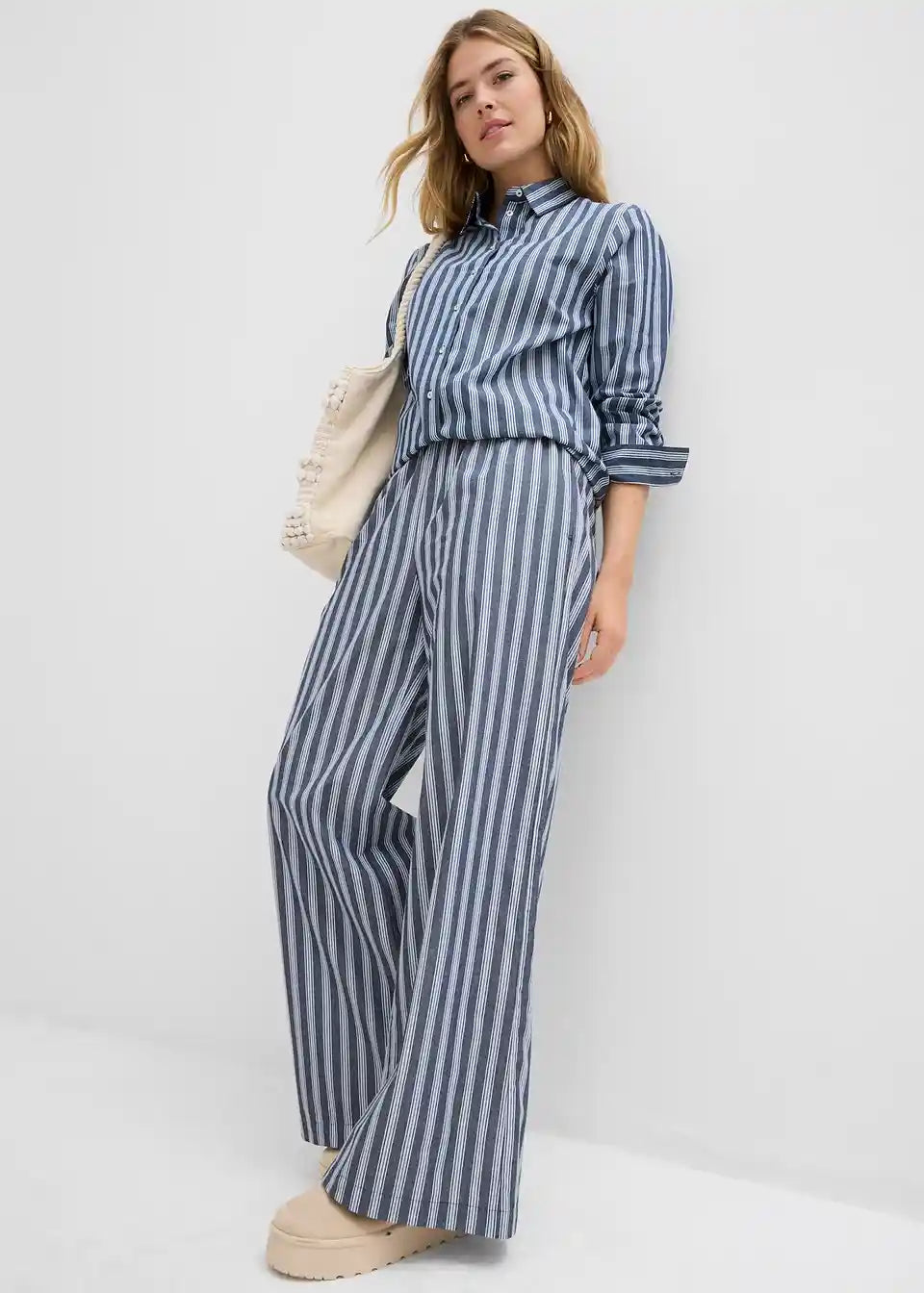 Bombažne hlače z visokim, elastičnim pasom in stranskima žepoma za optimalno udobje.
