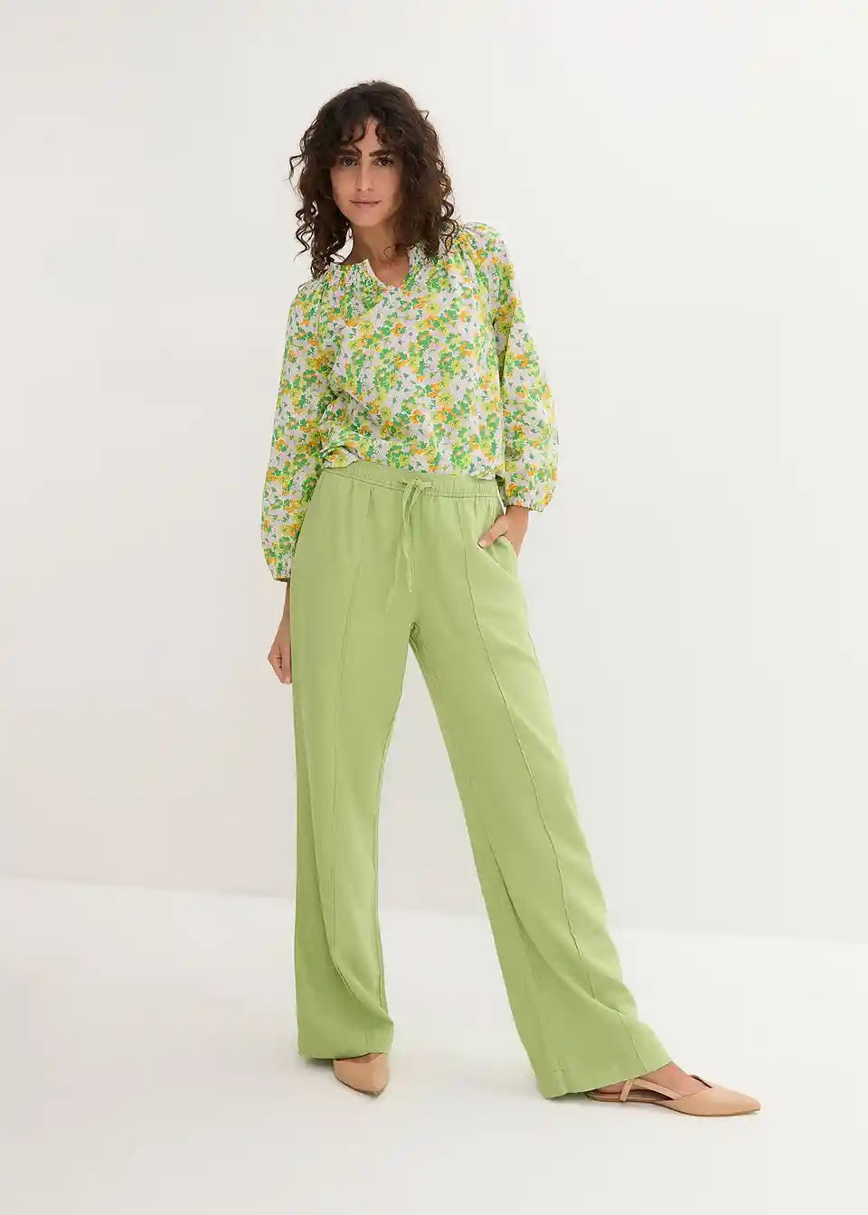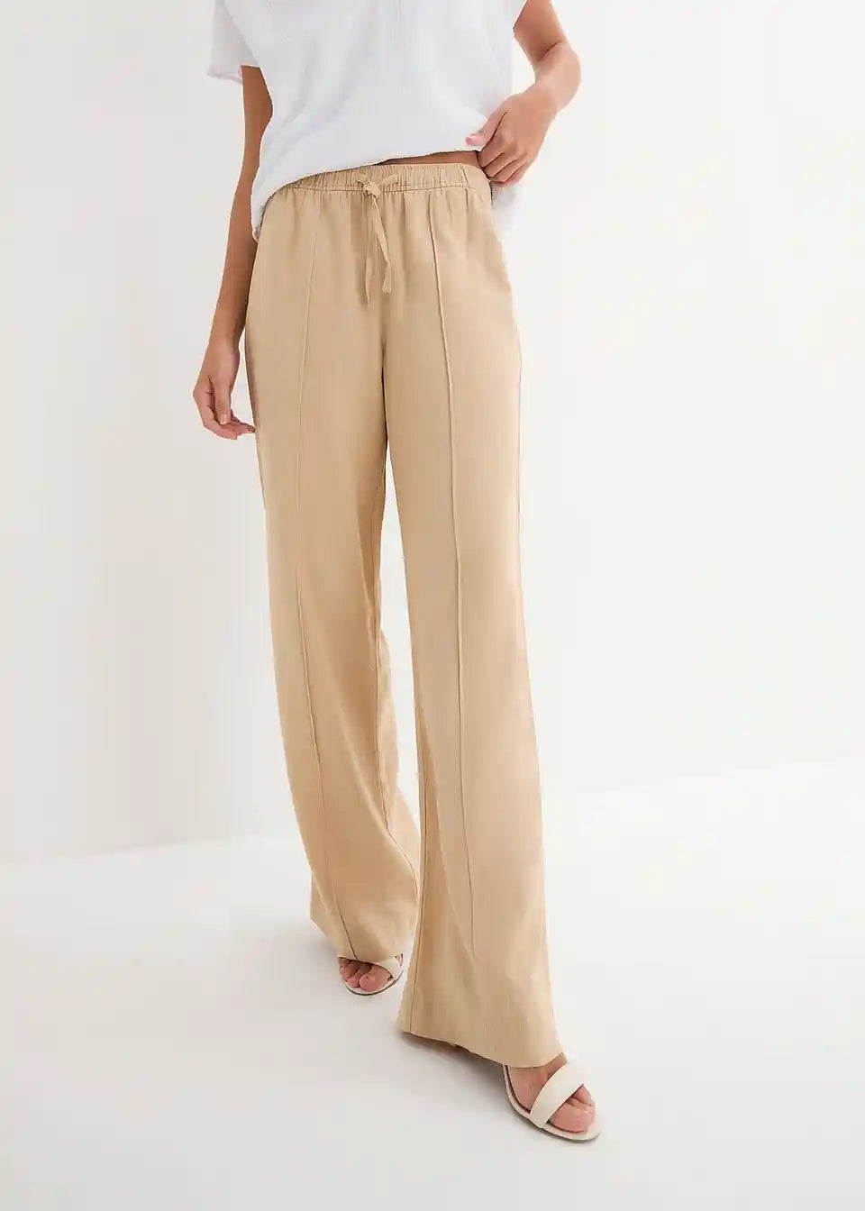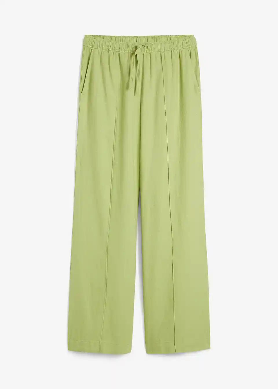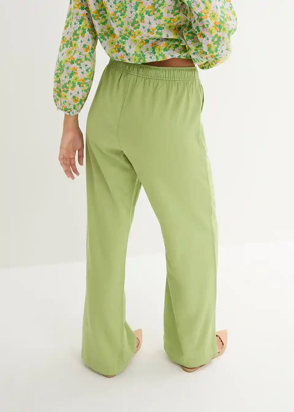 Lanene hlače do gležnjev s širokimi hlačnicami in sproščenim krojem