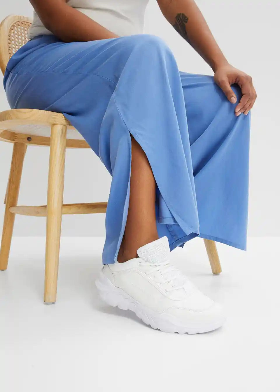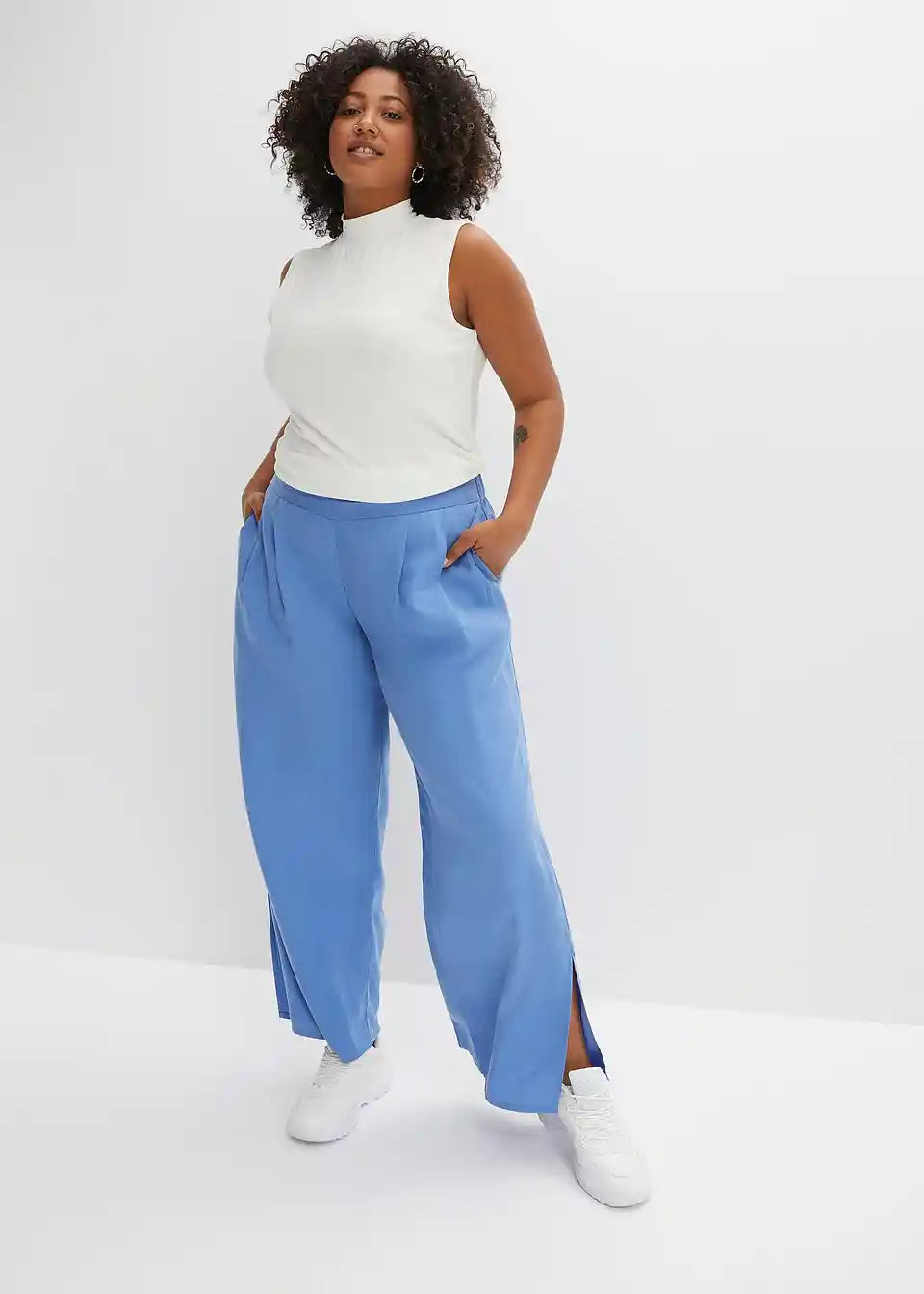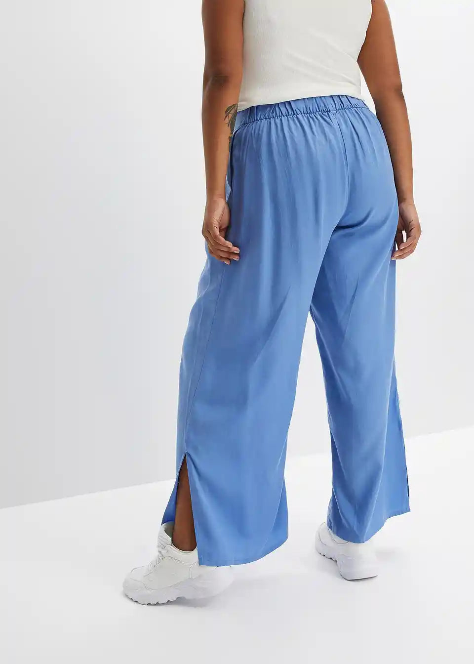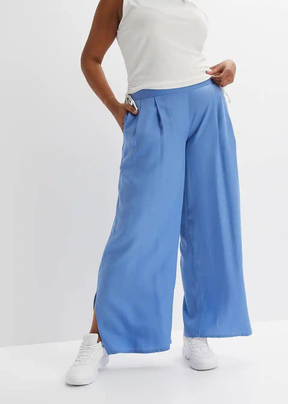Udobne hlače z širokimi hlačnicami in širokim pasom
