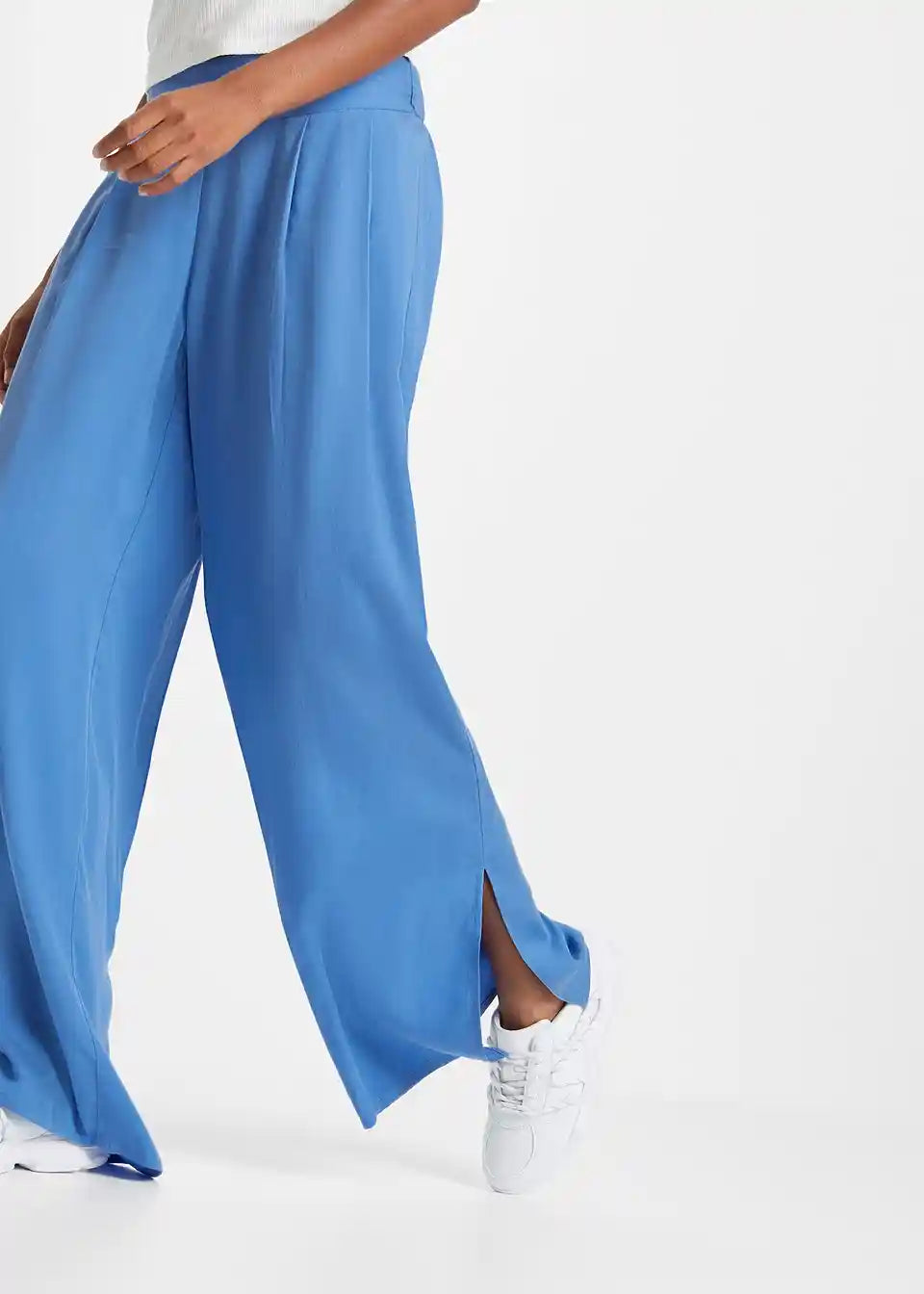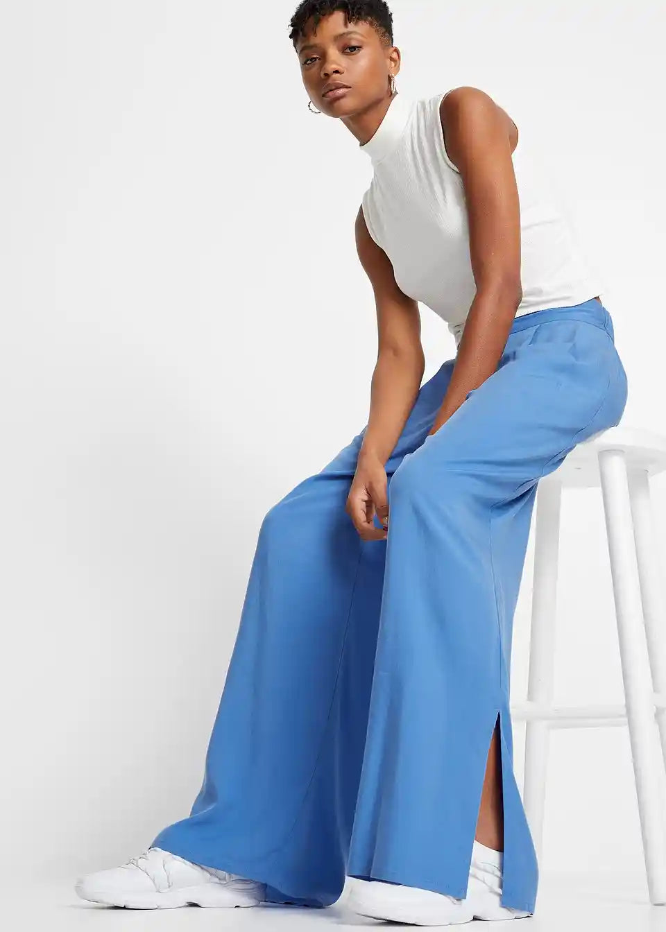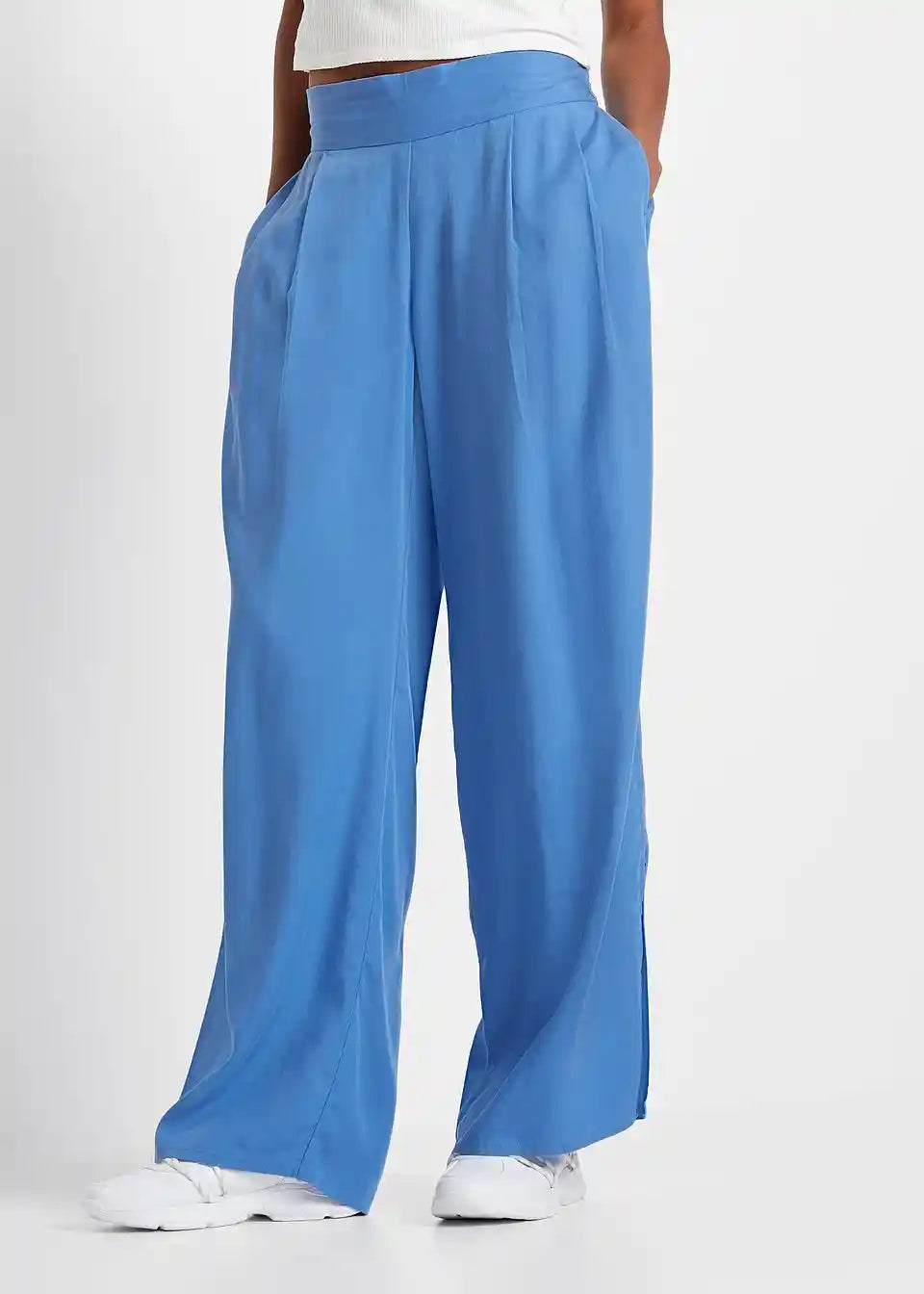 Udobne hlače z širokimi hlačnicami in širokim pasom