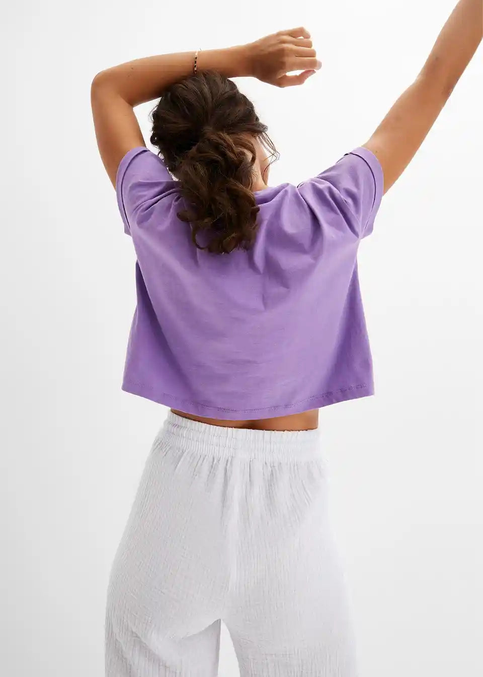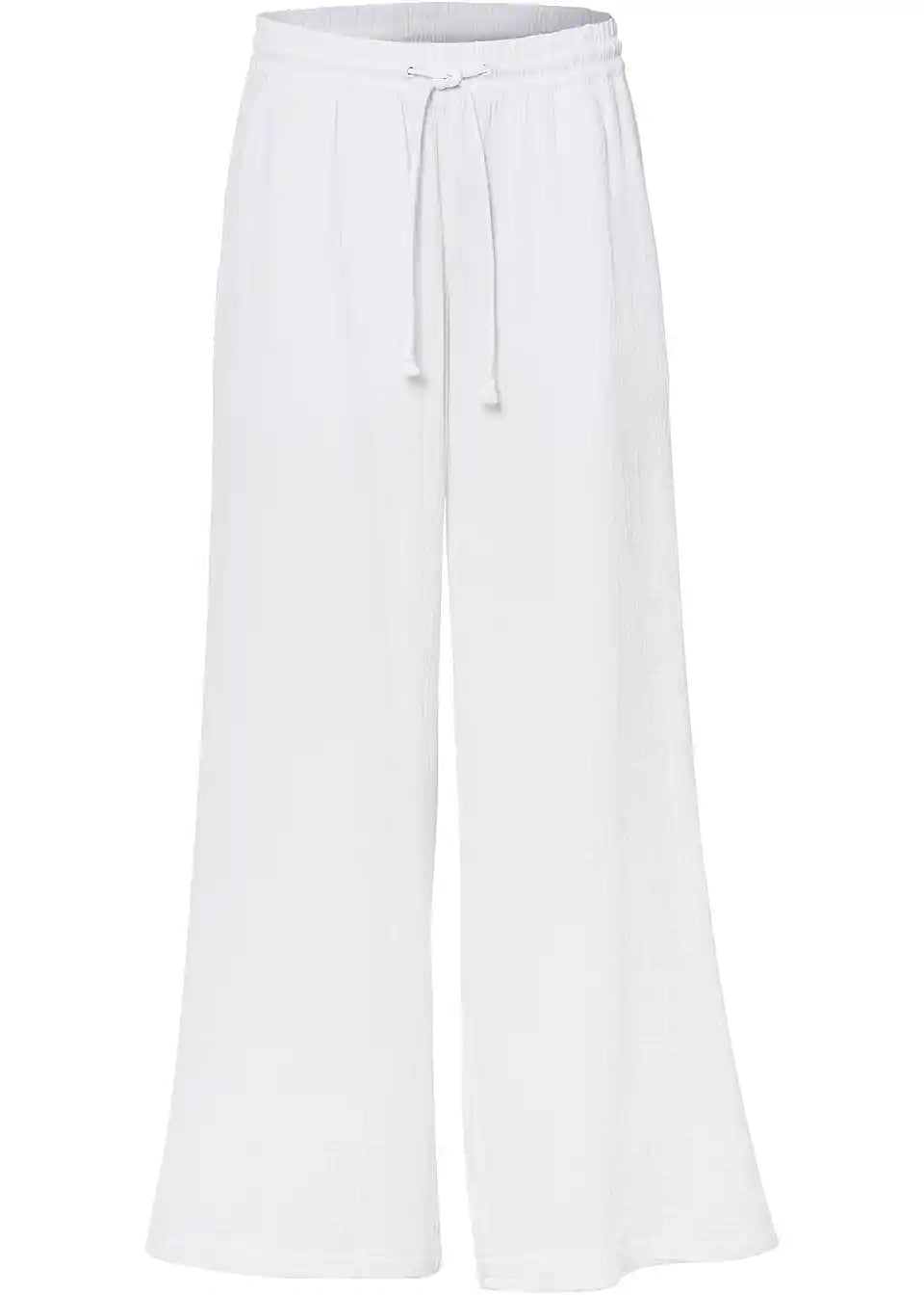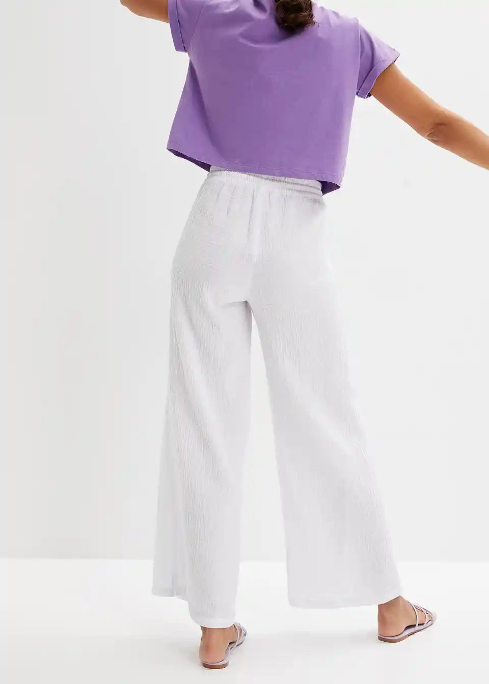 Udobne palazzo hlače z elastičnim pasom iz poletnega muslina, dolžine do gležnjev