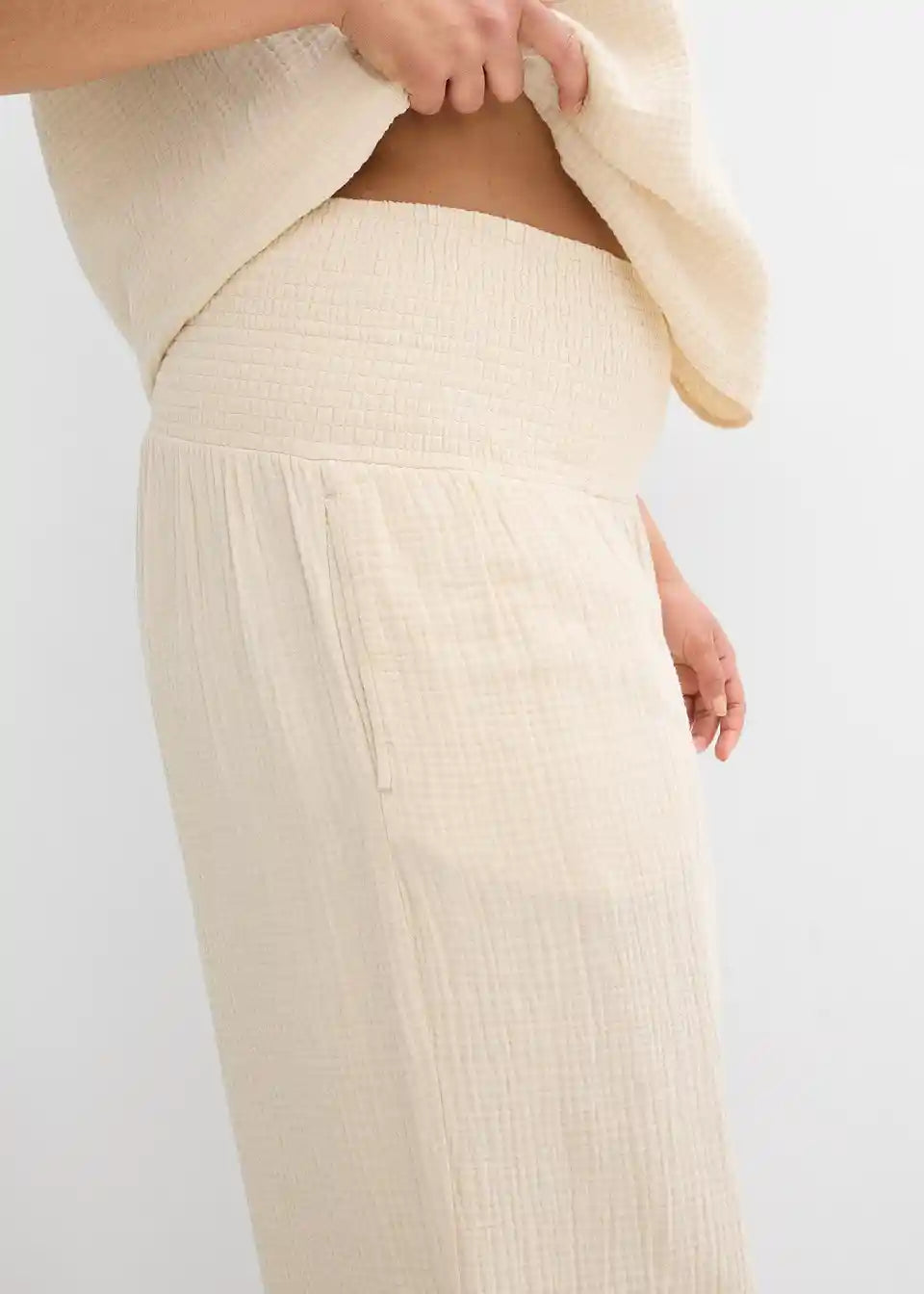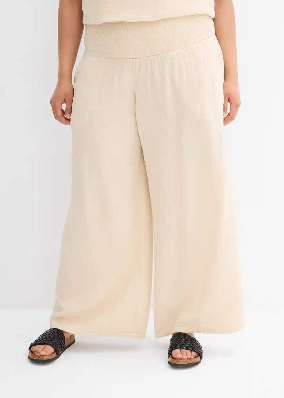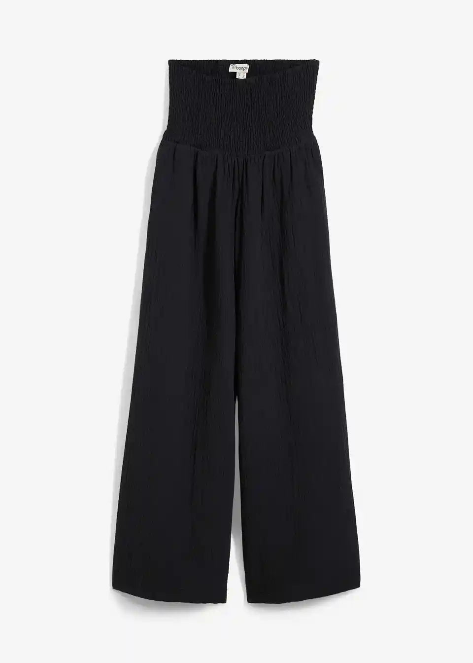 Široke bombažne hlače z elastičnim smock pasom za večje udobje