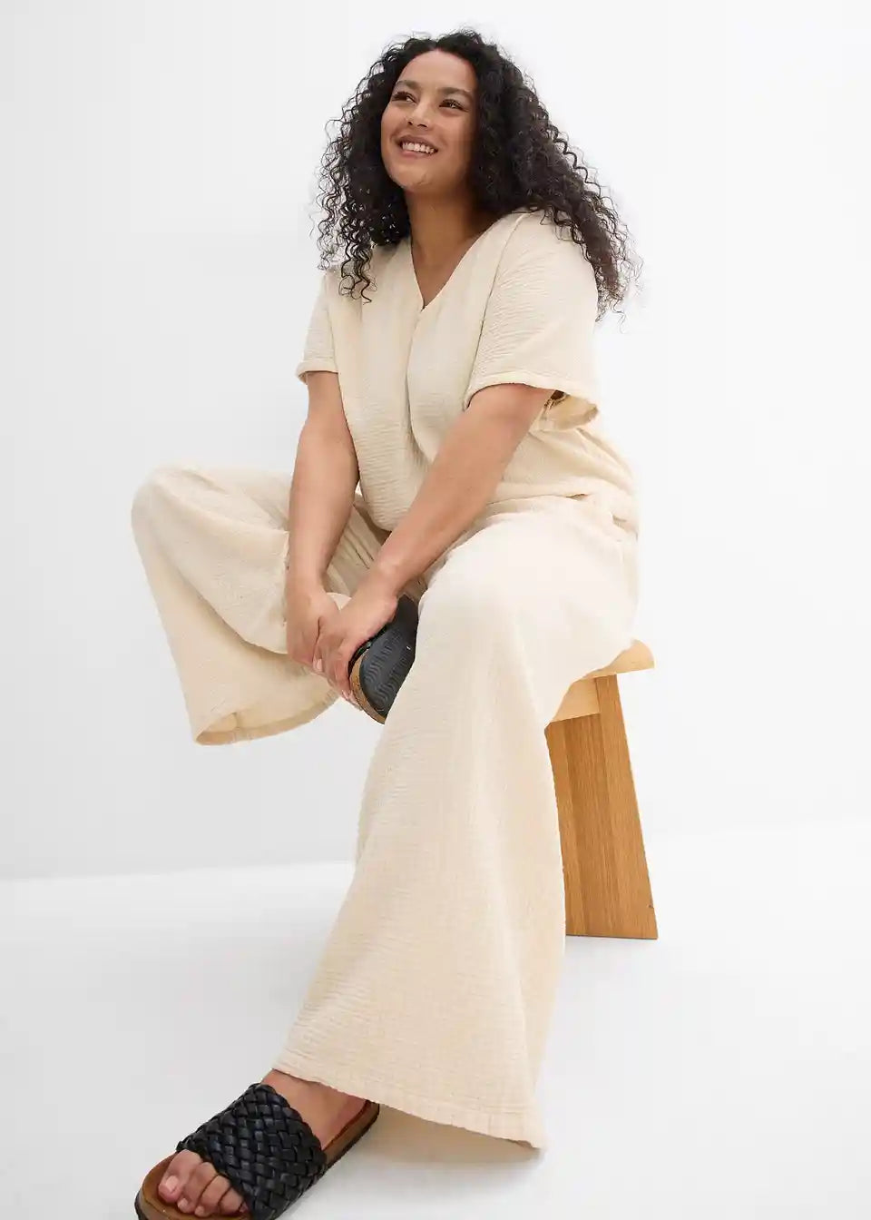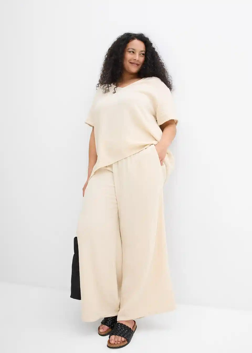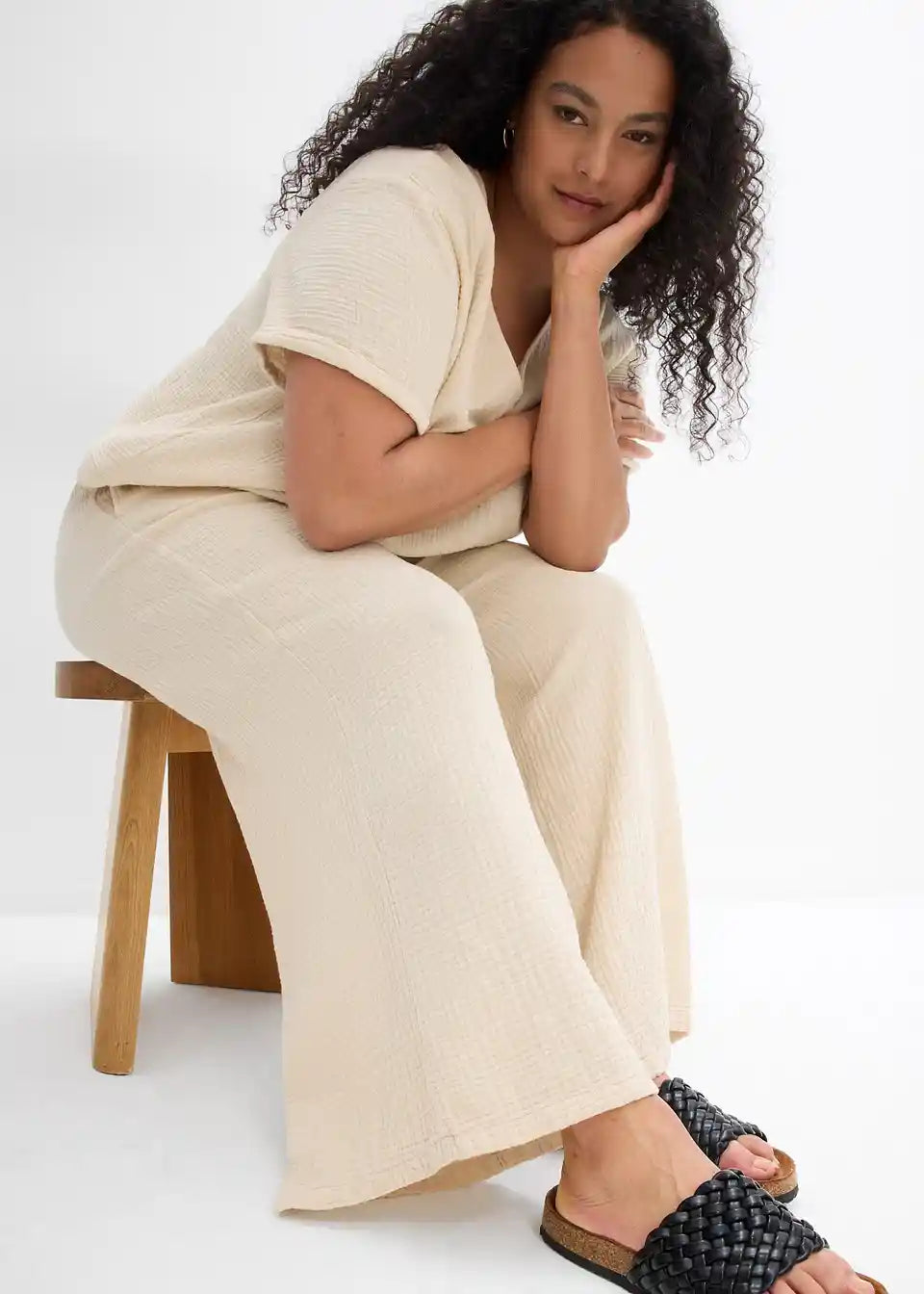 Široke bombažne hlače z elastičnim smock pasom za večje udobje