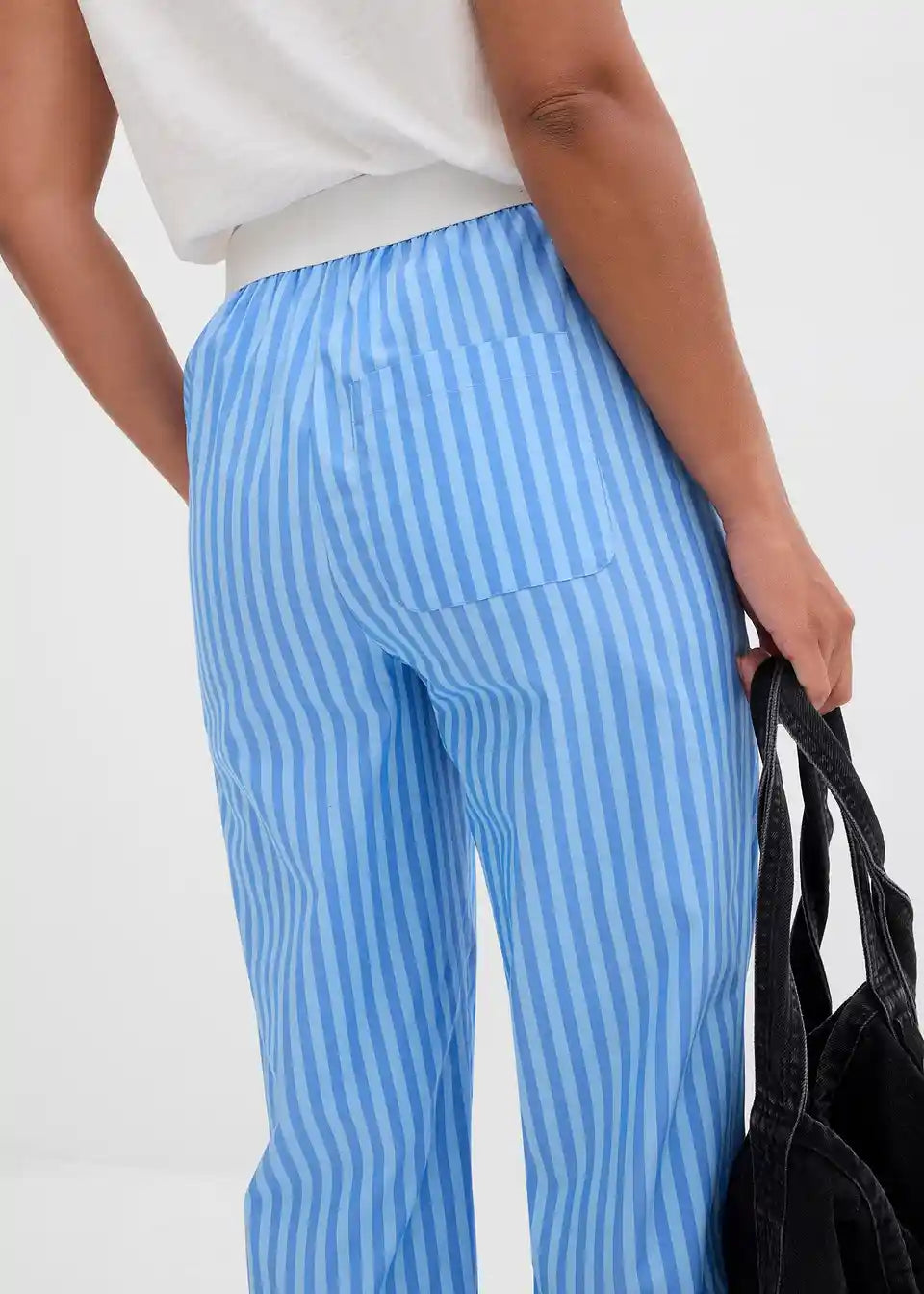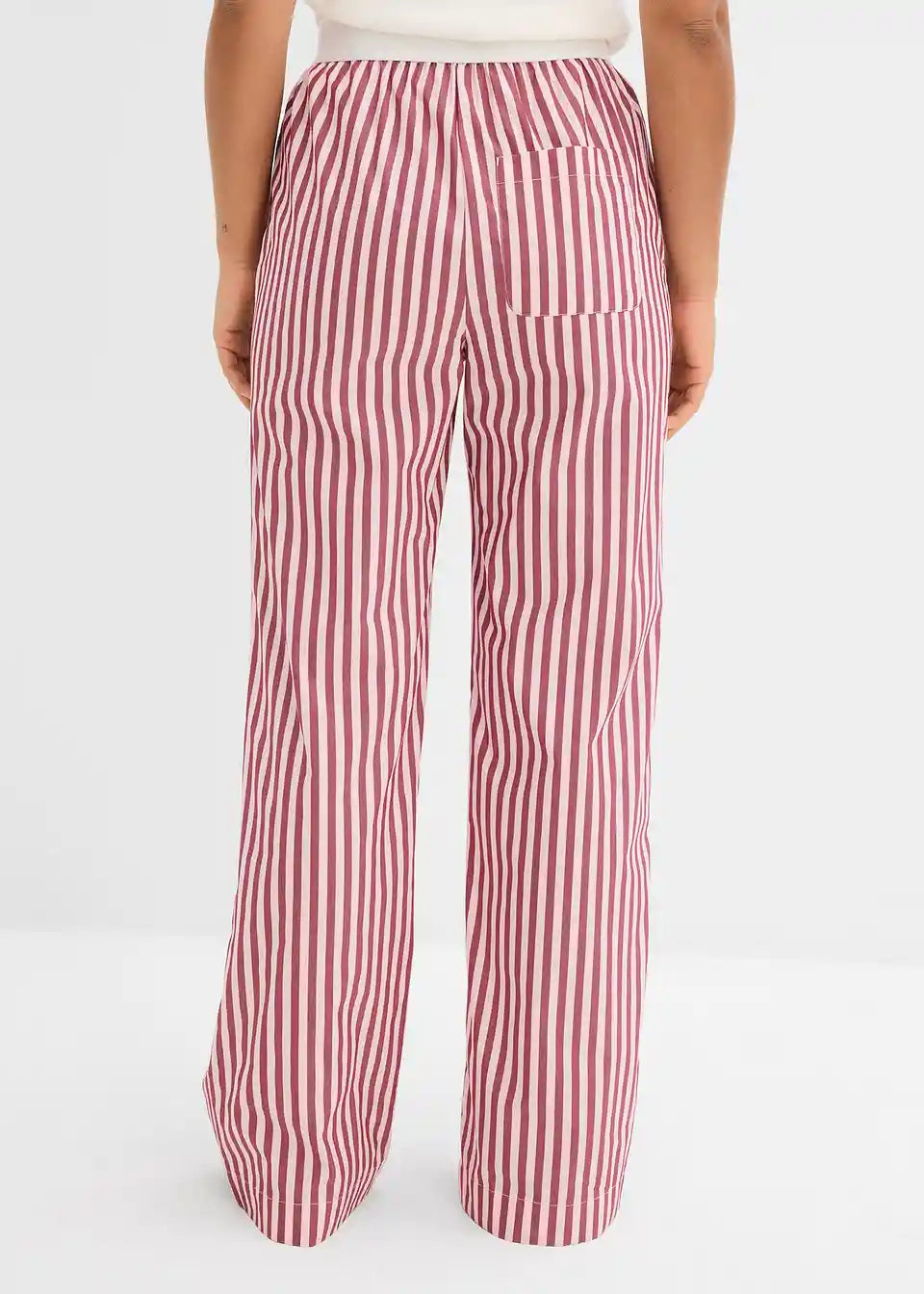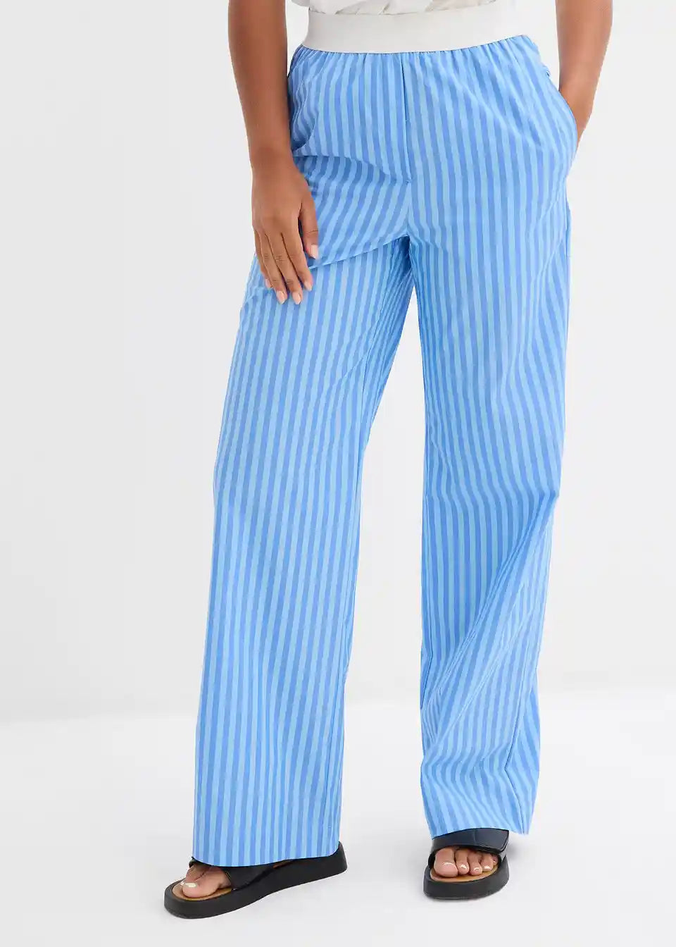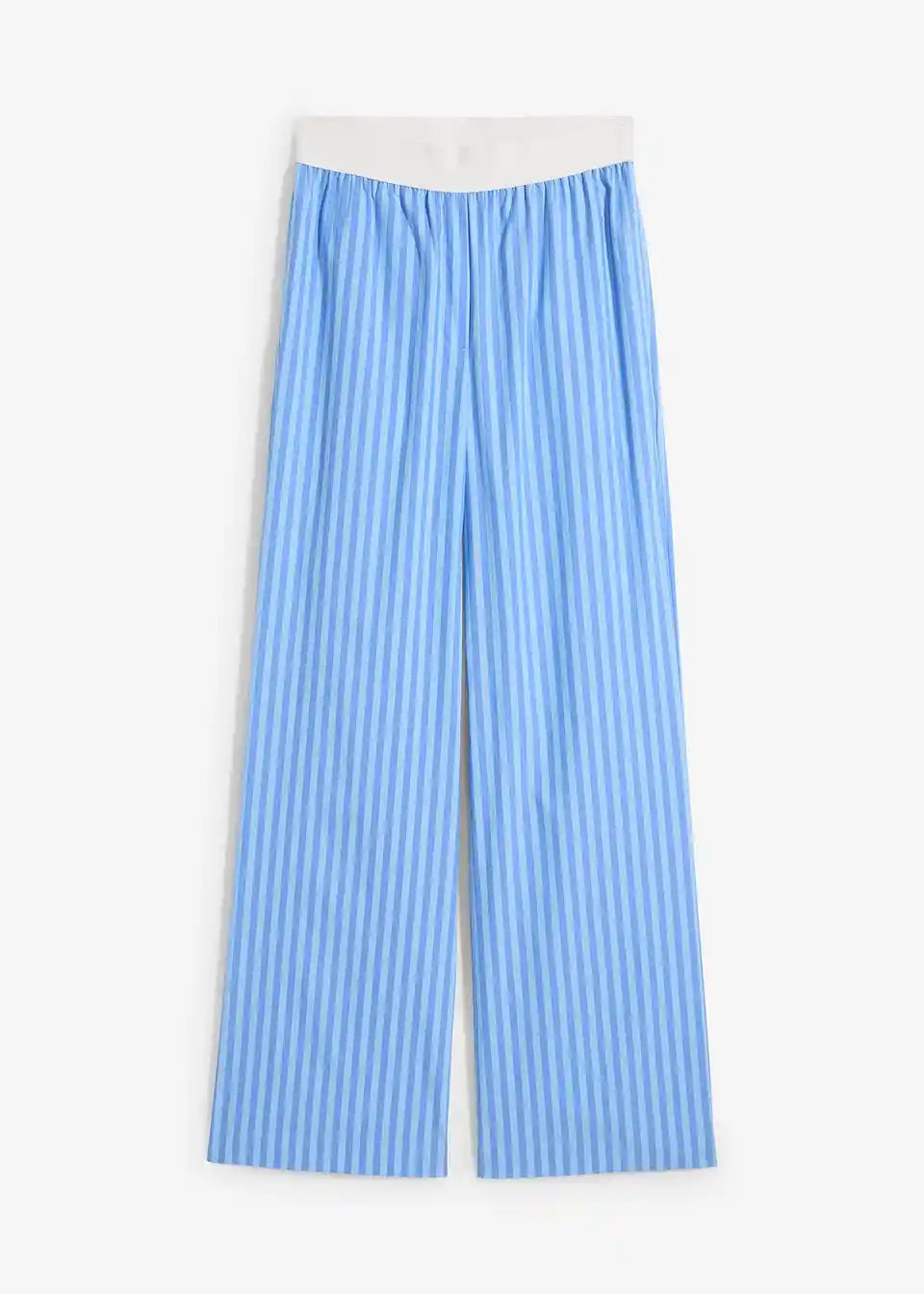 Popelin hlače s širokim krojem. Z visokim, elastičnim udobnim pasom ter poševnimi stranskimi žepi.