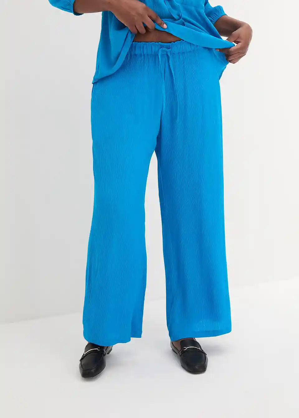 Crinkle hlače ohlapnega kroja iz 100% viskoze za udobje in dobro počutje