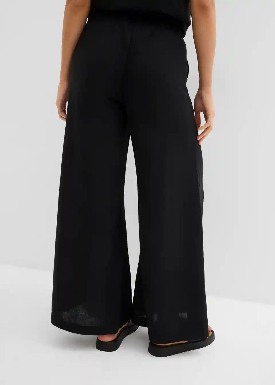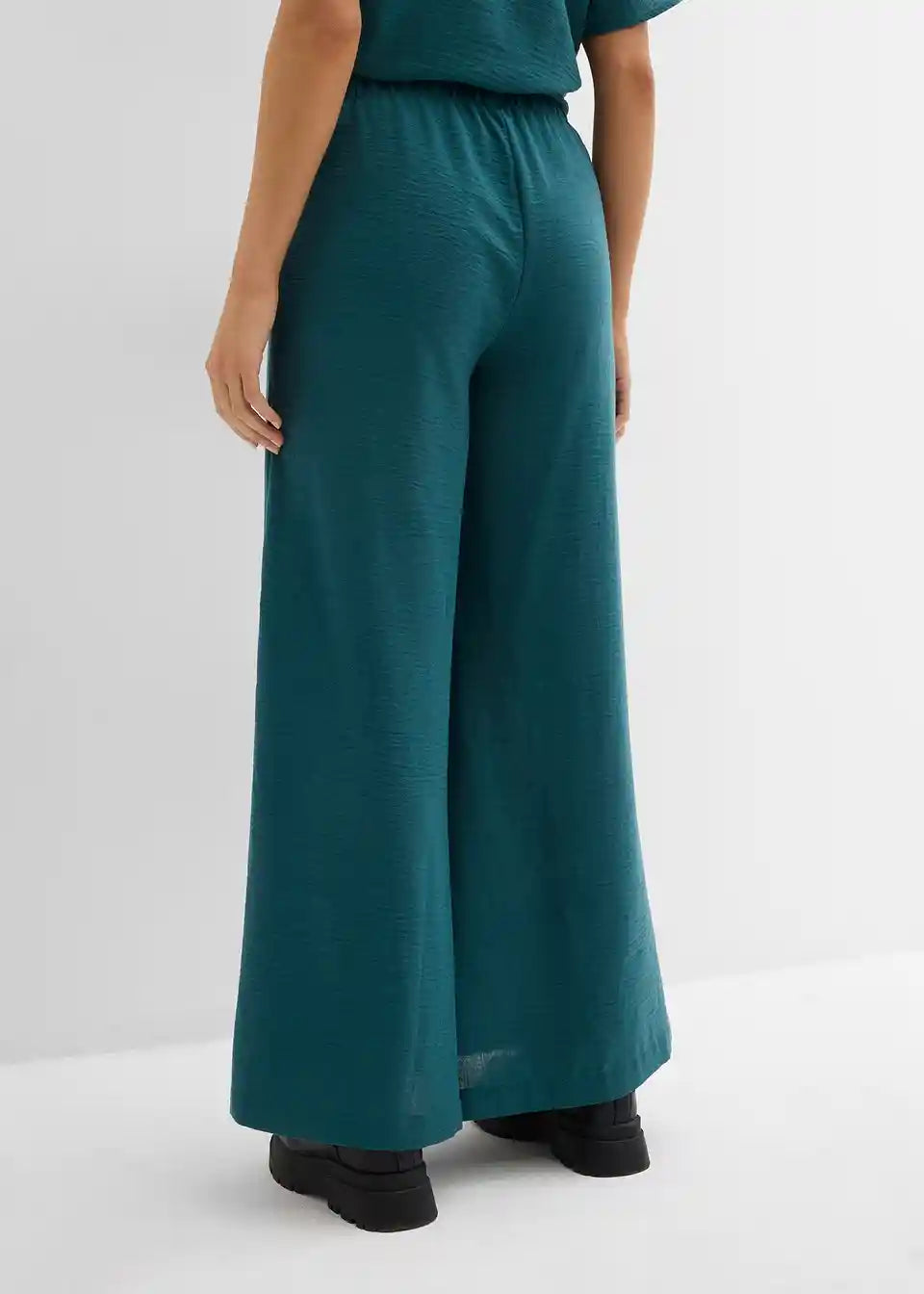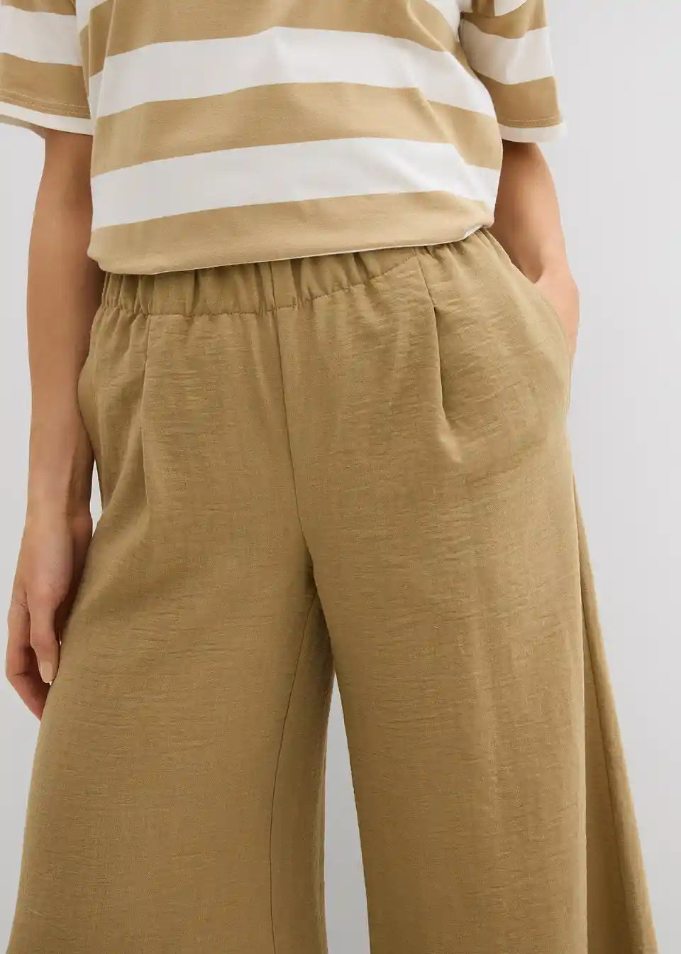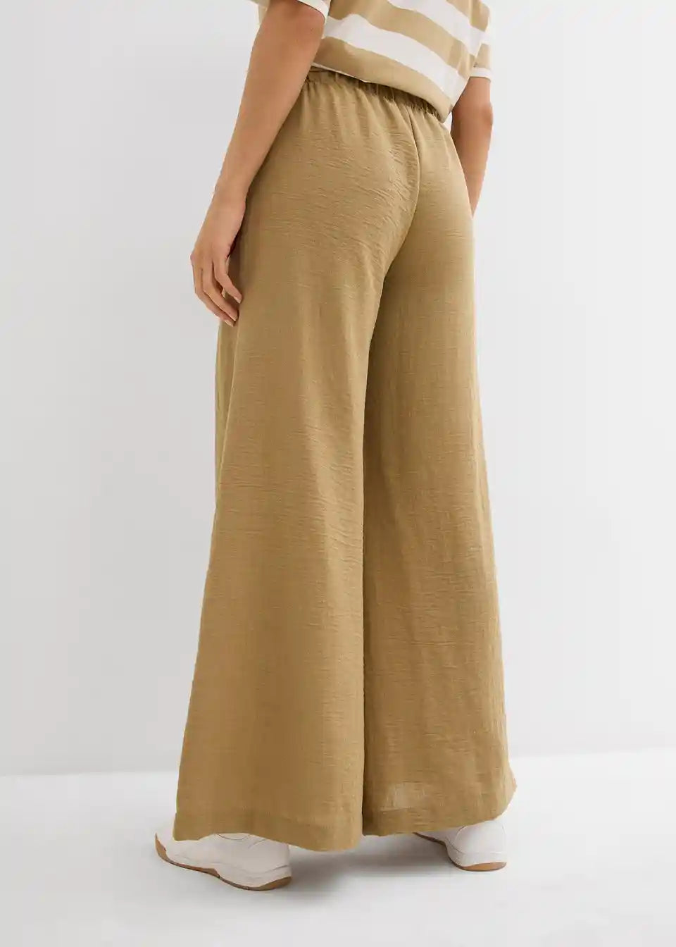 Široke hlače iz lahkega strukturiranega materiala z udobnim pasom