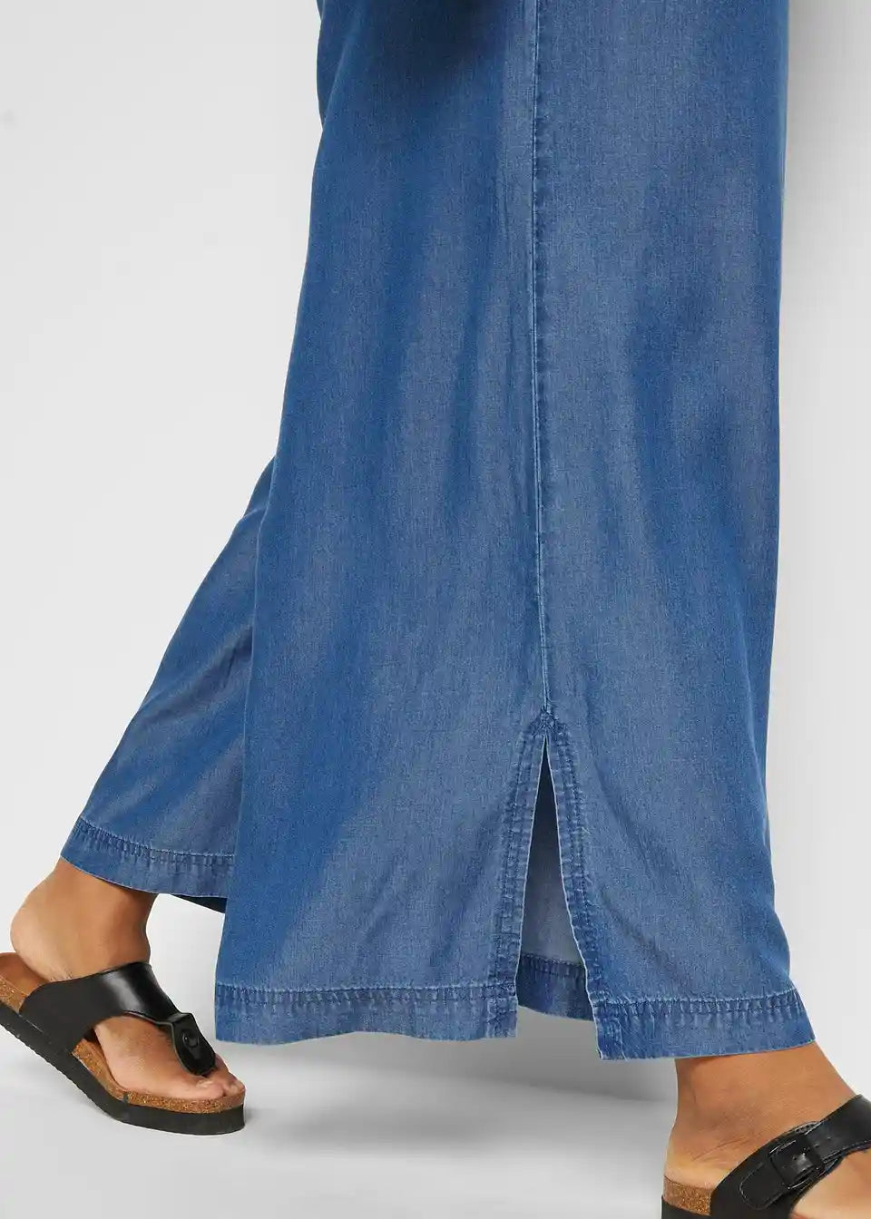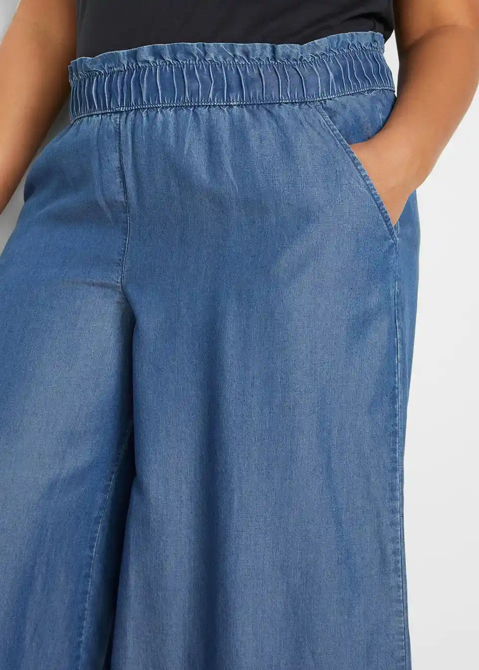 lahke hlače v videzu jeansa iz hladnega lyocella z udobnim pasom