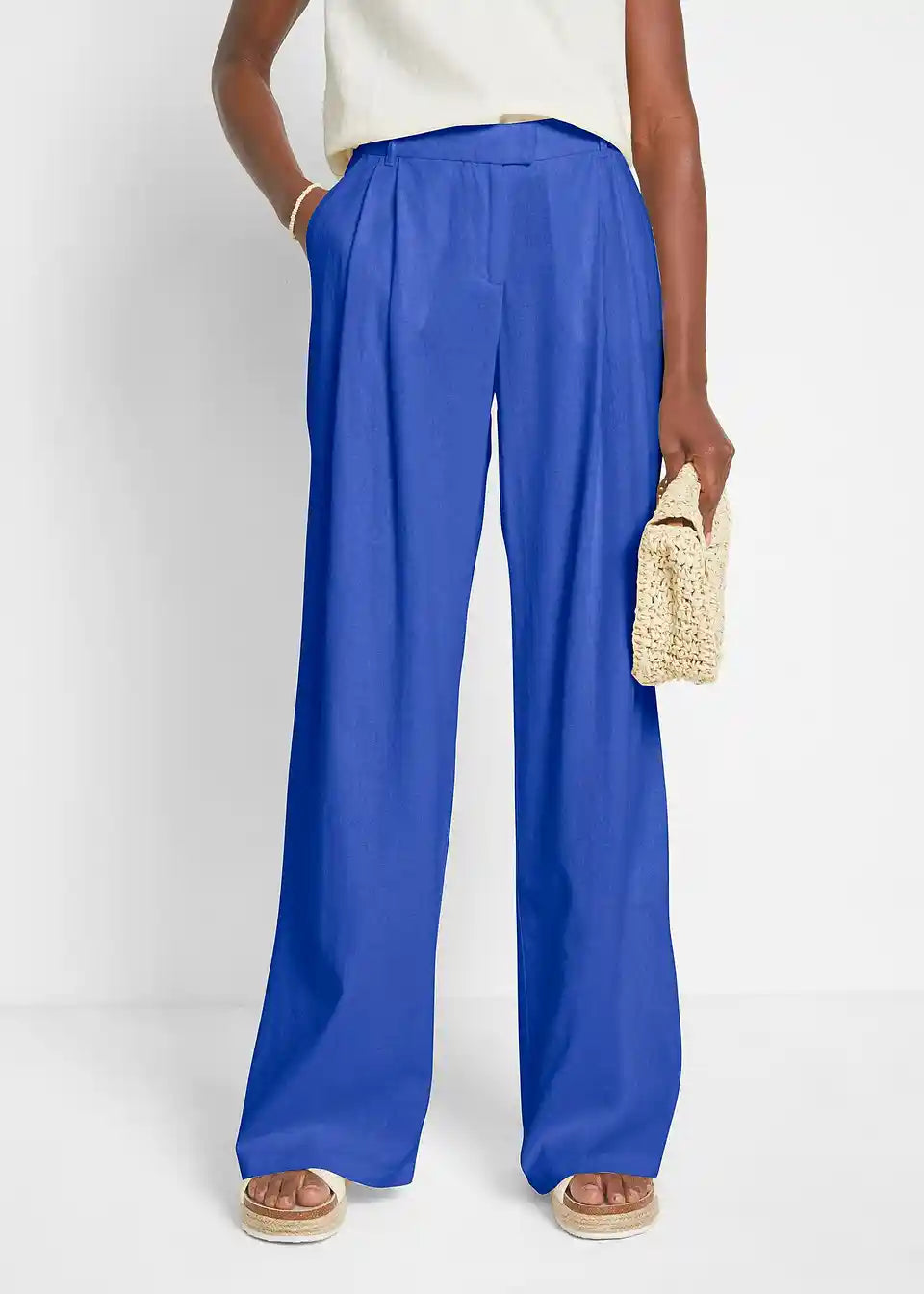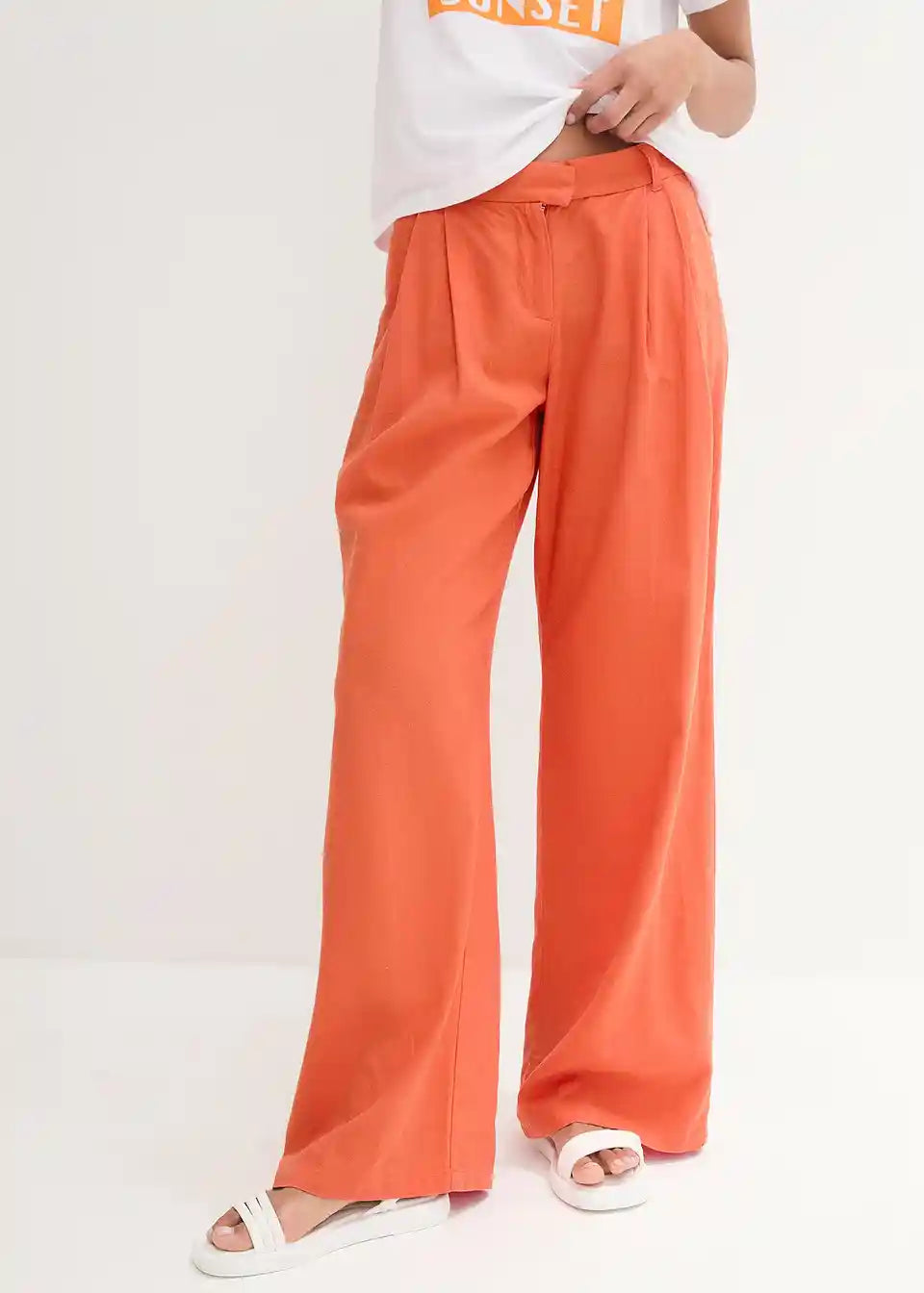 Ležerne Palazzo hlače z lanom, zelo široko krojene hlačnice.