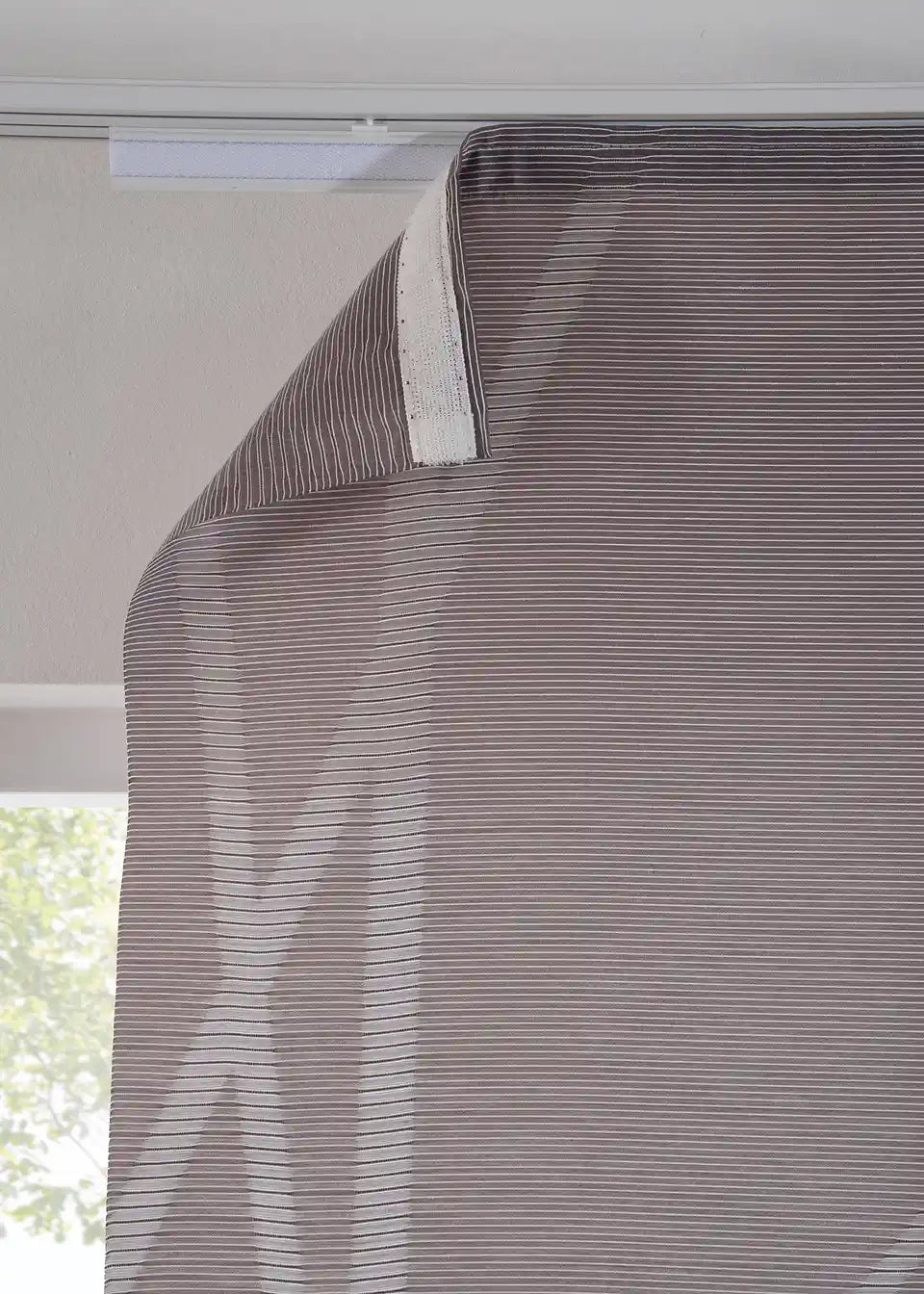 Sodobna dekoracija oken v preprostem videzu. Panelna zavesa je primerna za številne ureditve in se lahko odlično uporablja tudi kot pregrada v prostoru.